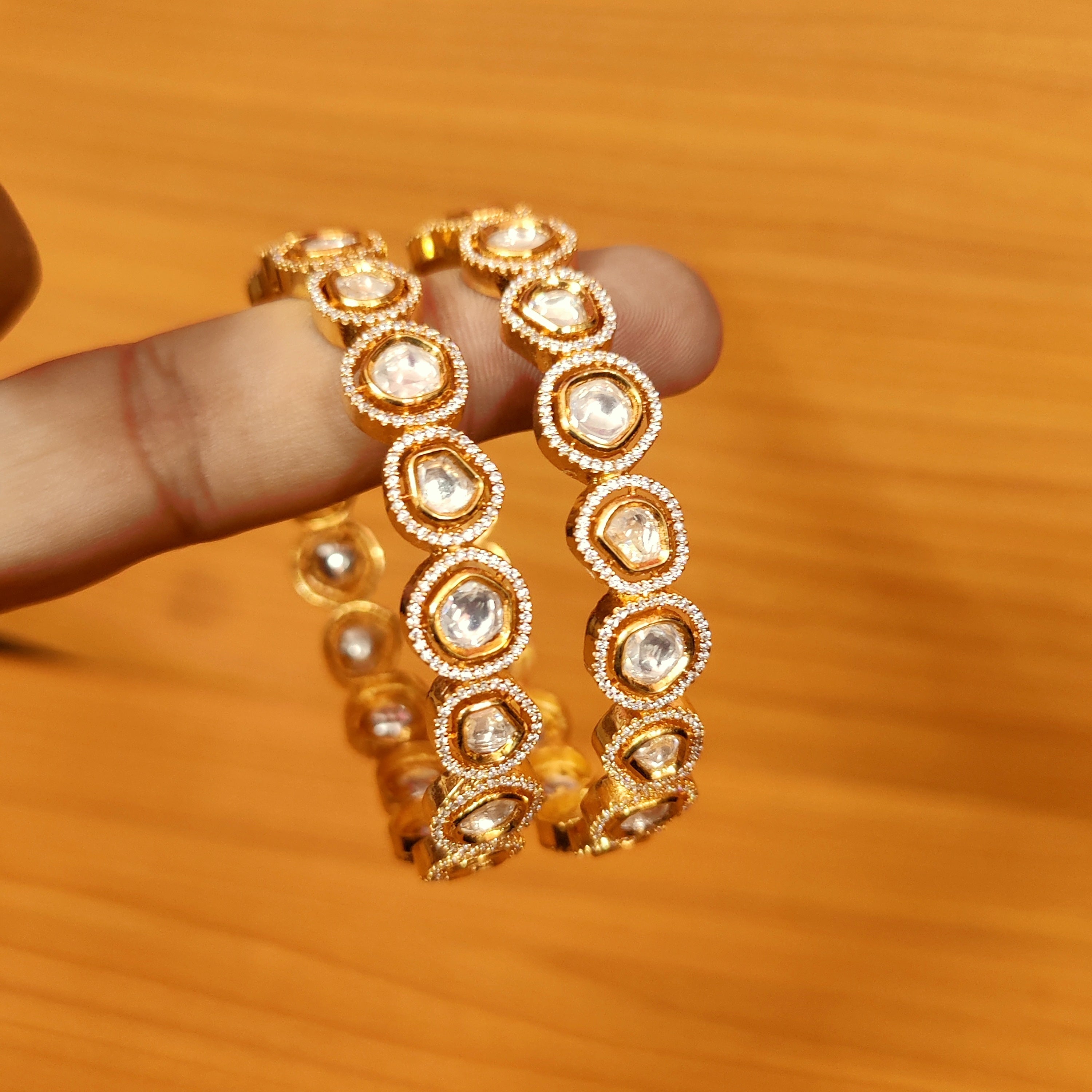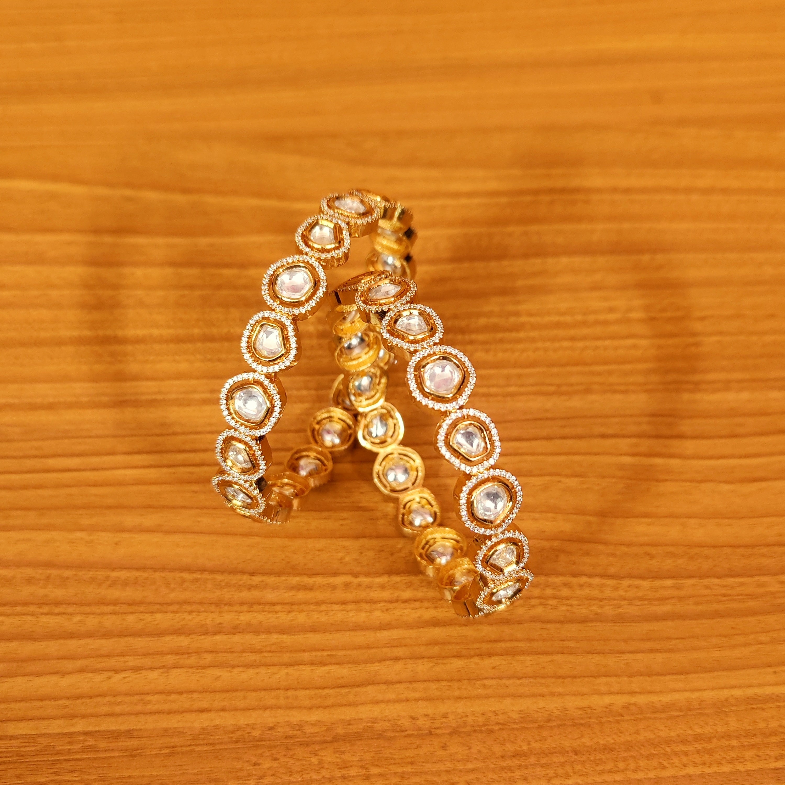KUNDAN POLKI GOLD PLATED CZ STUDDED BANGLES