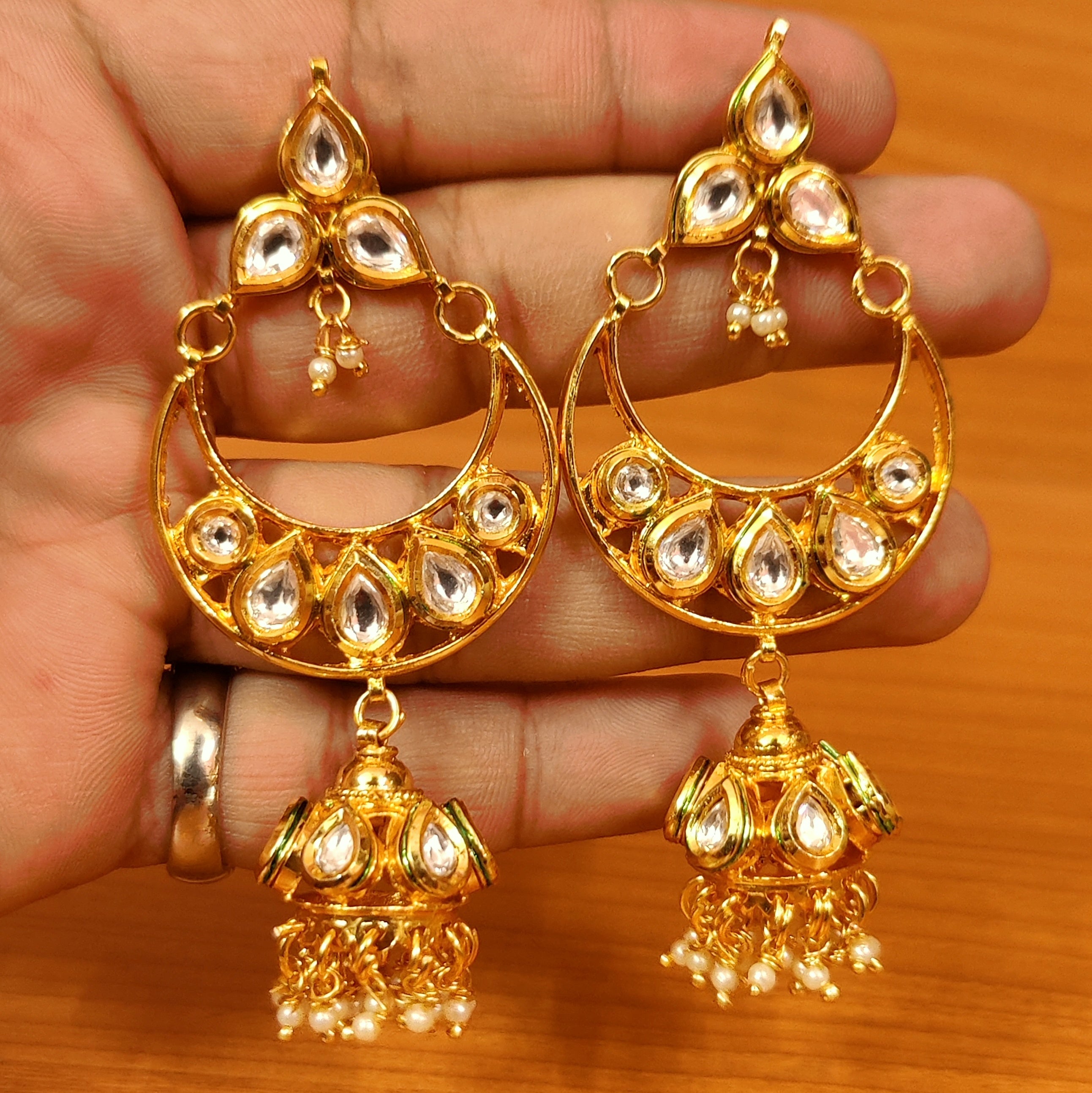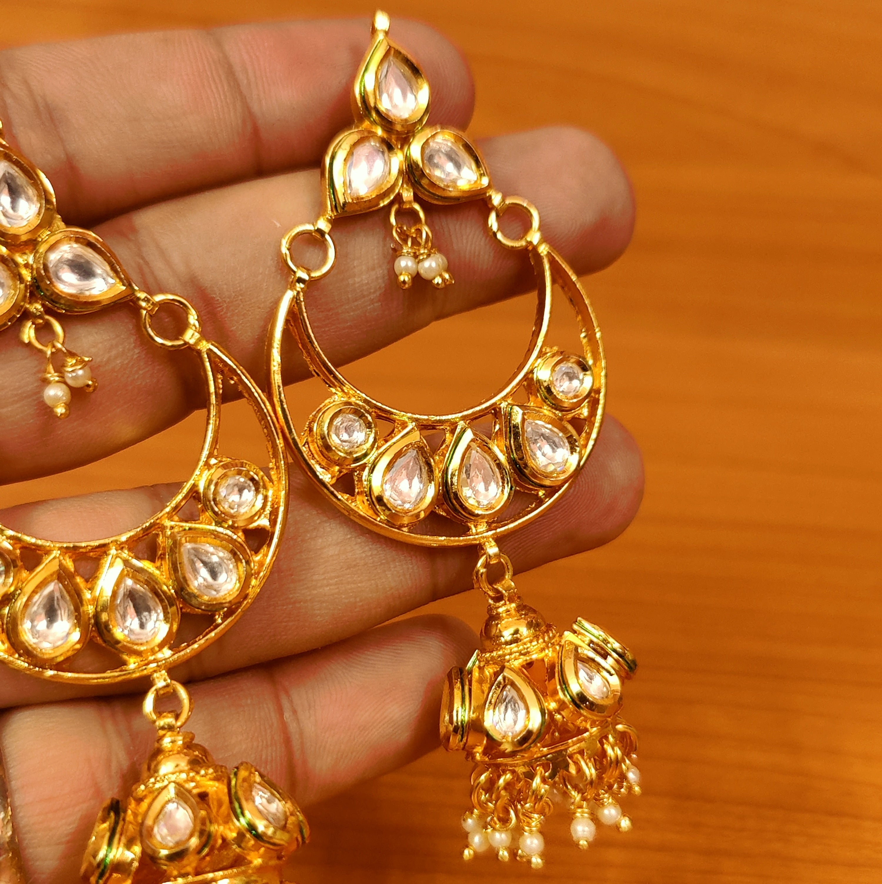 KUNDAN POLKI GOLD PLATED LONG PEARL JHUMKAS