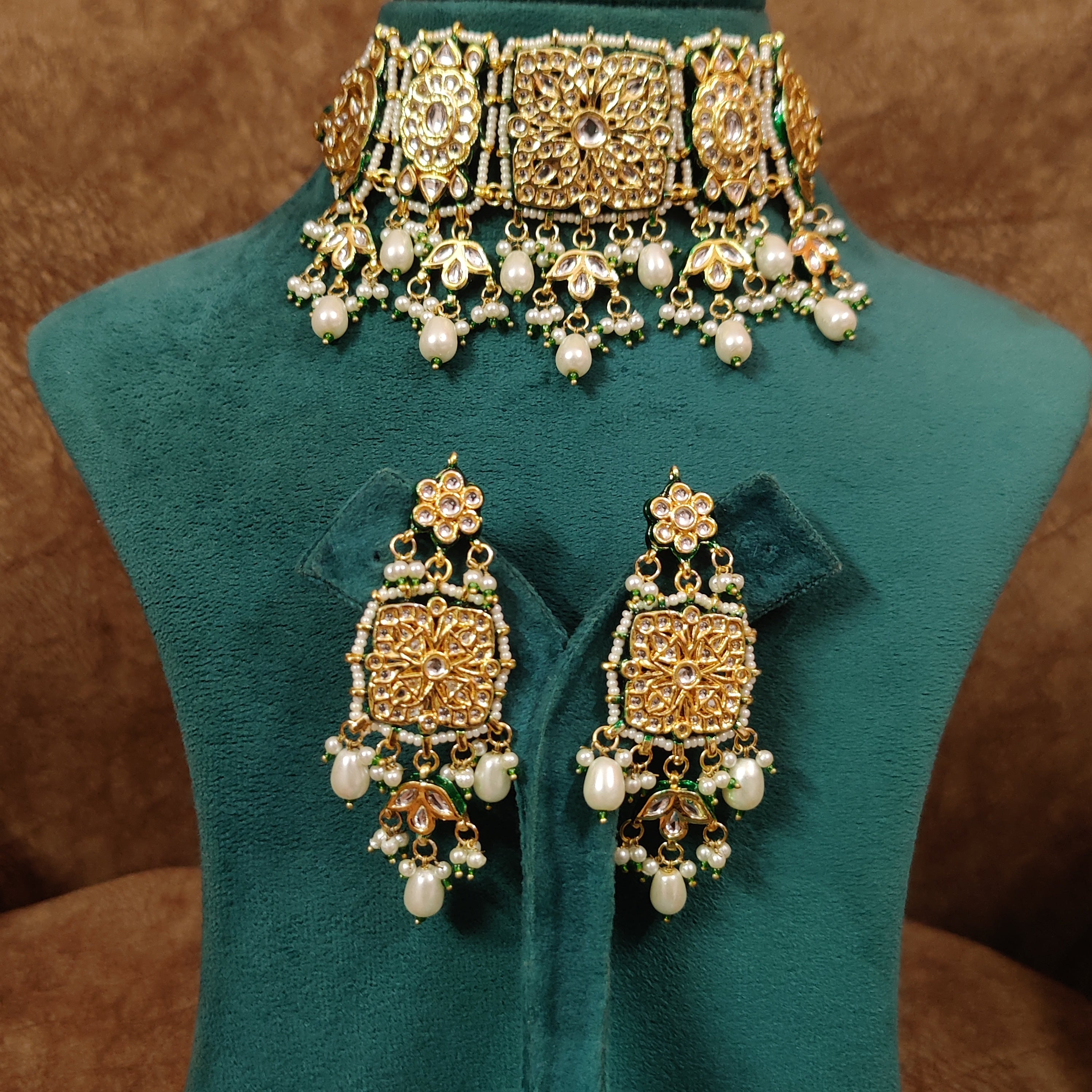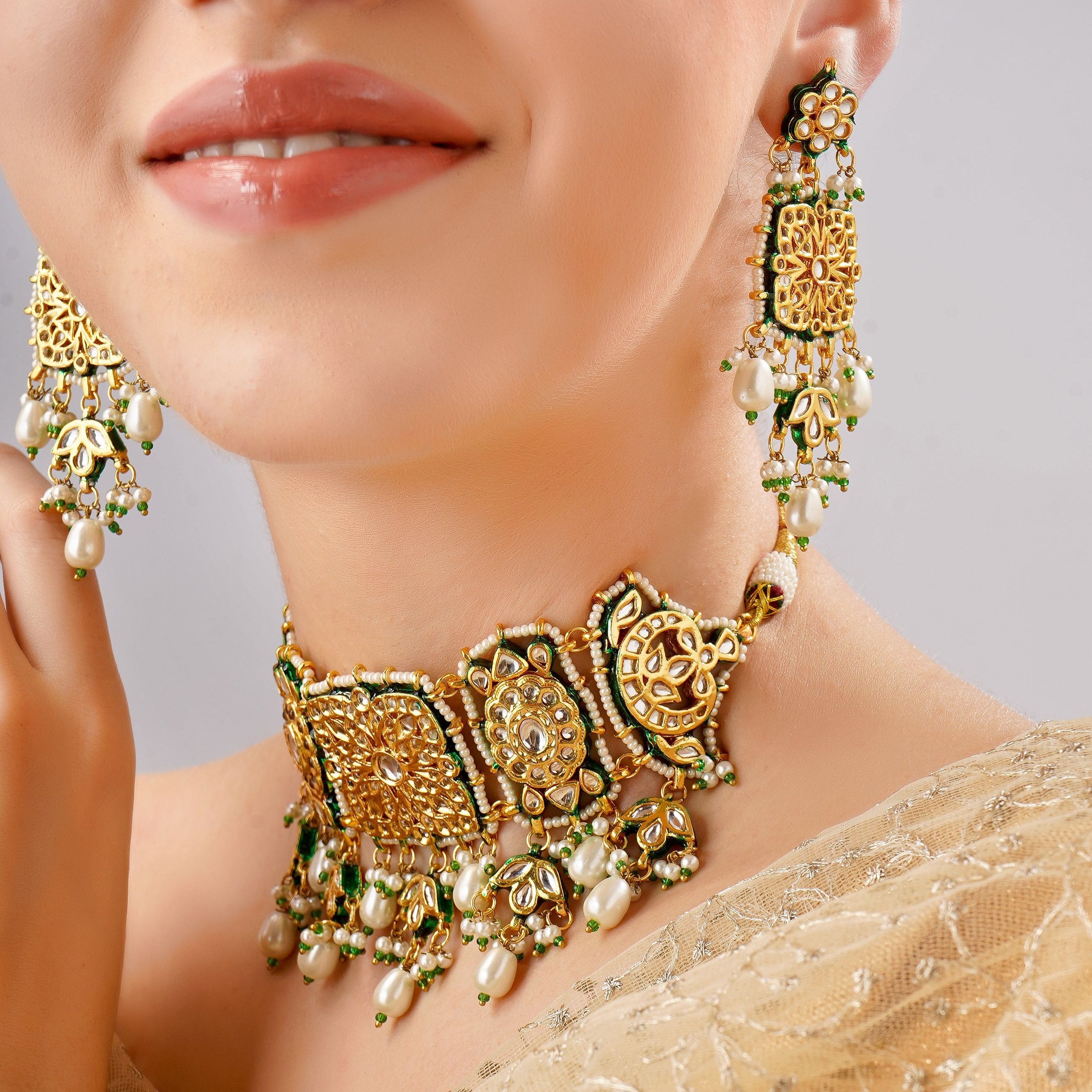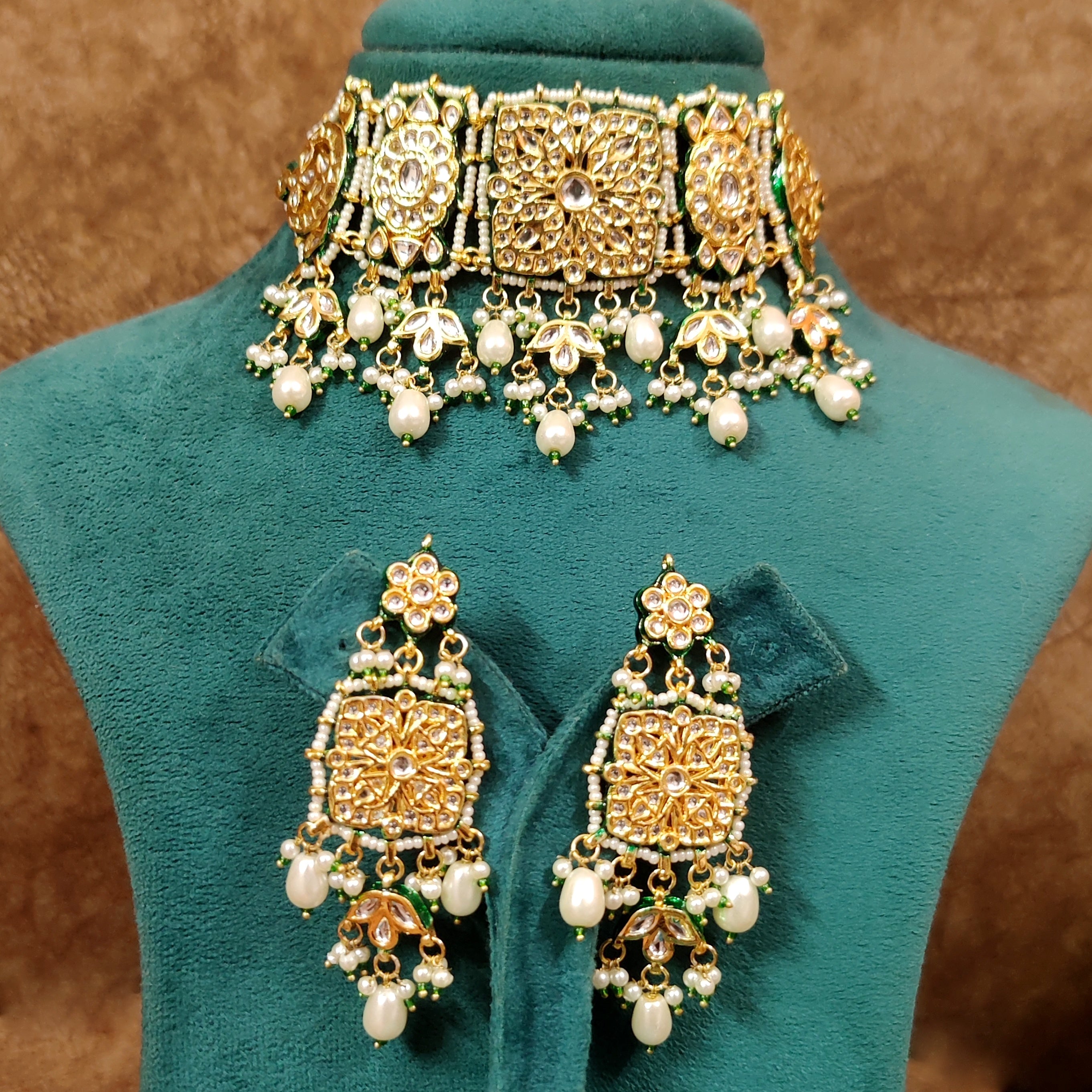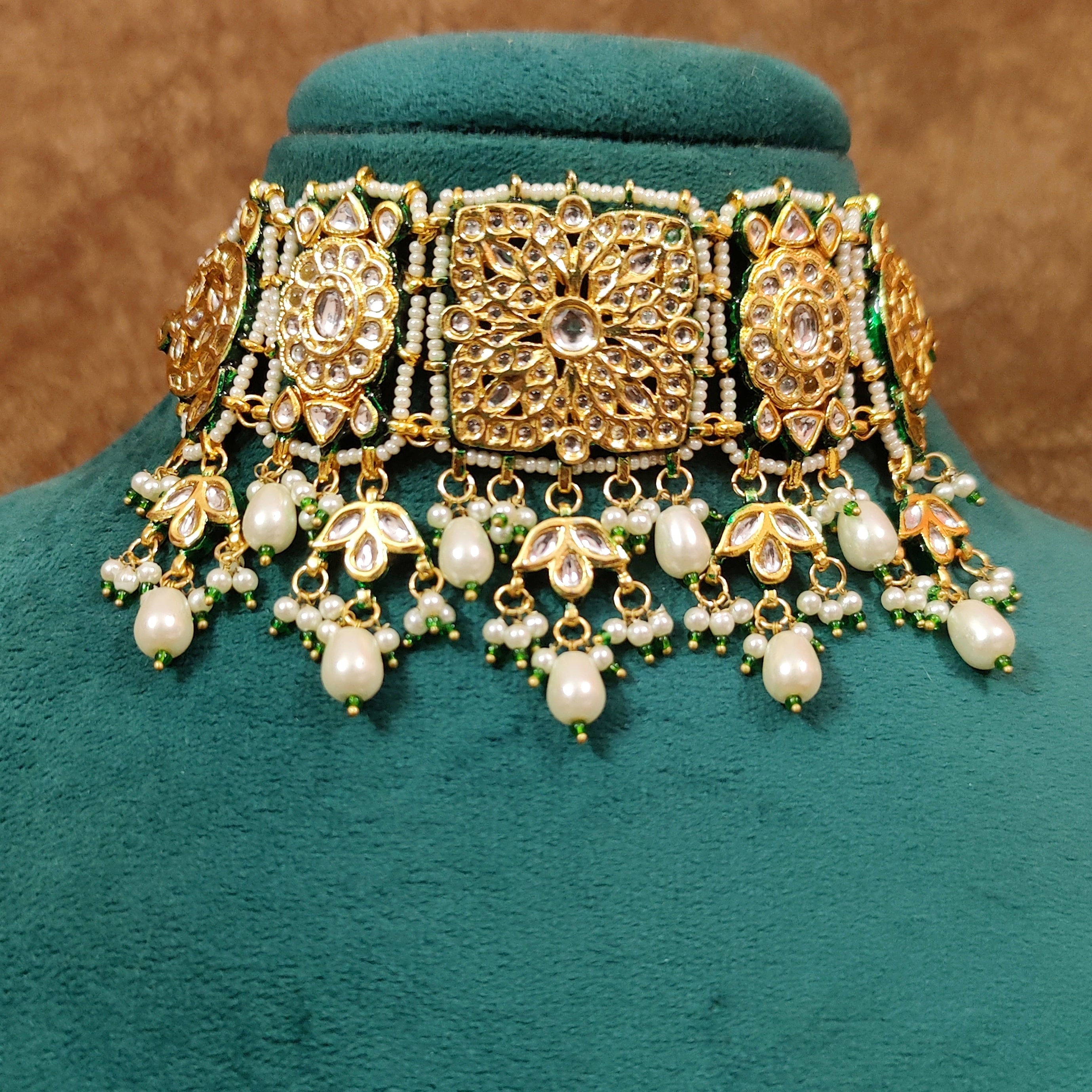 KUNDAN POLKI & MEENAKARI PEARL CHOKER SET