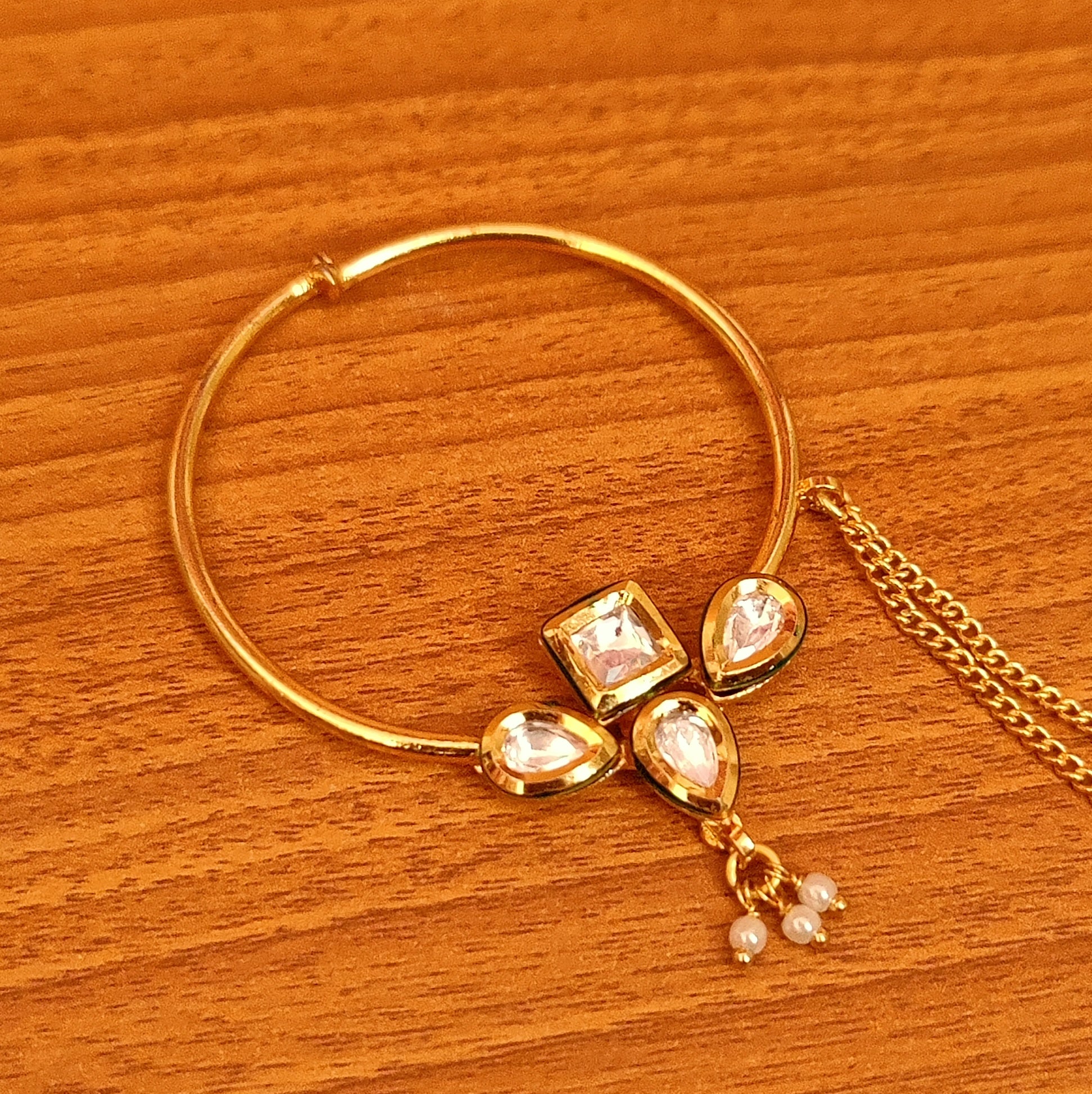 KUNDAN POLKI PEAR SHAPED BRIDAL WEAR NOSE RING