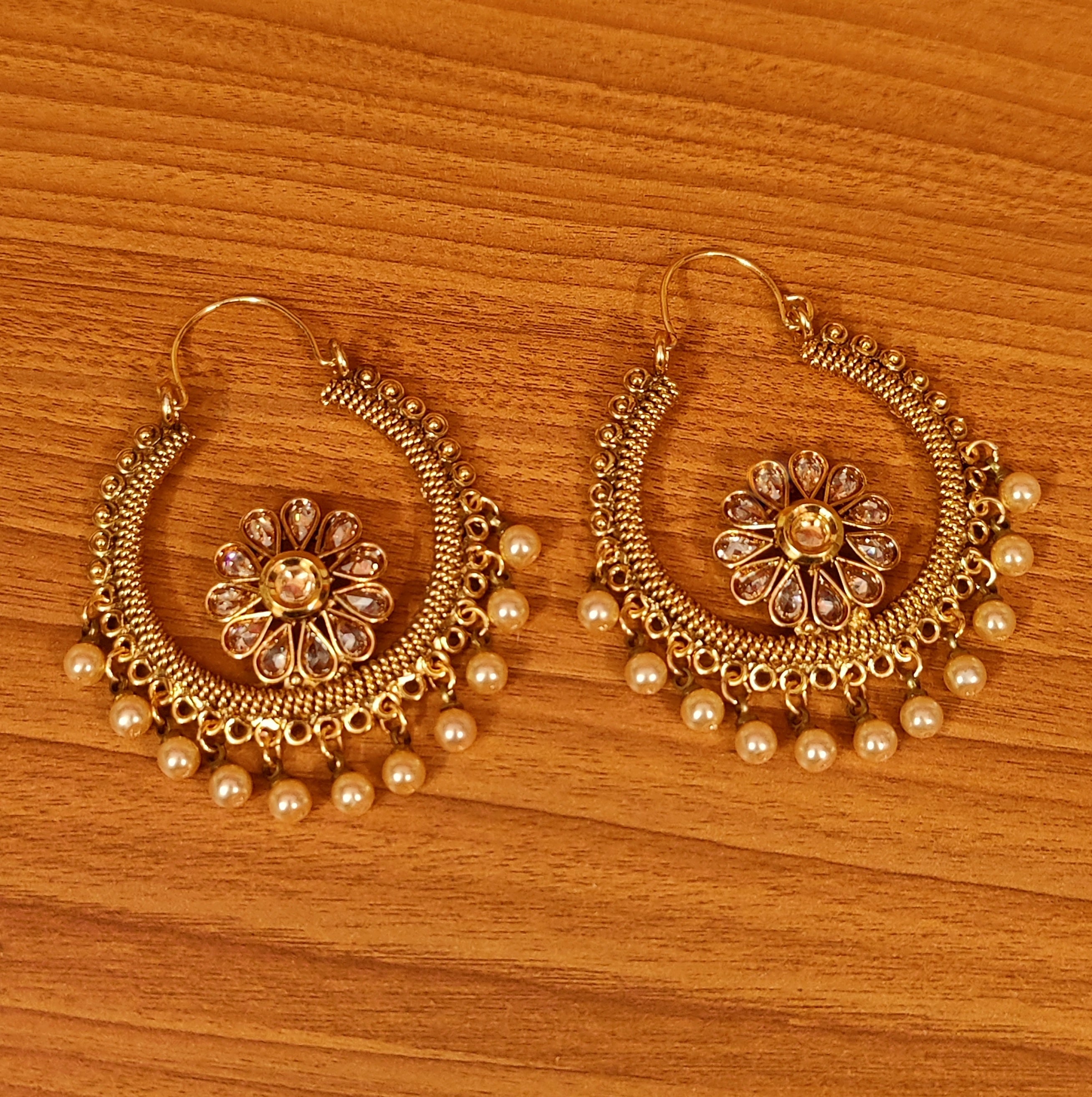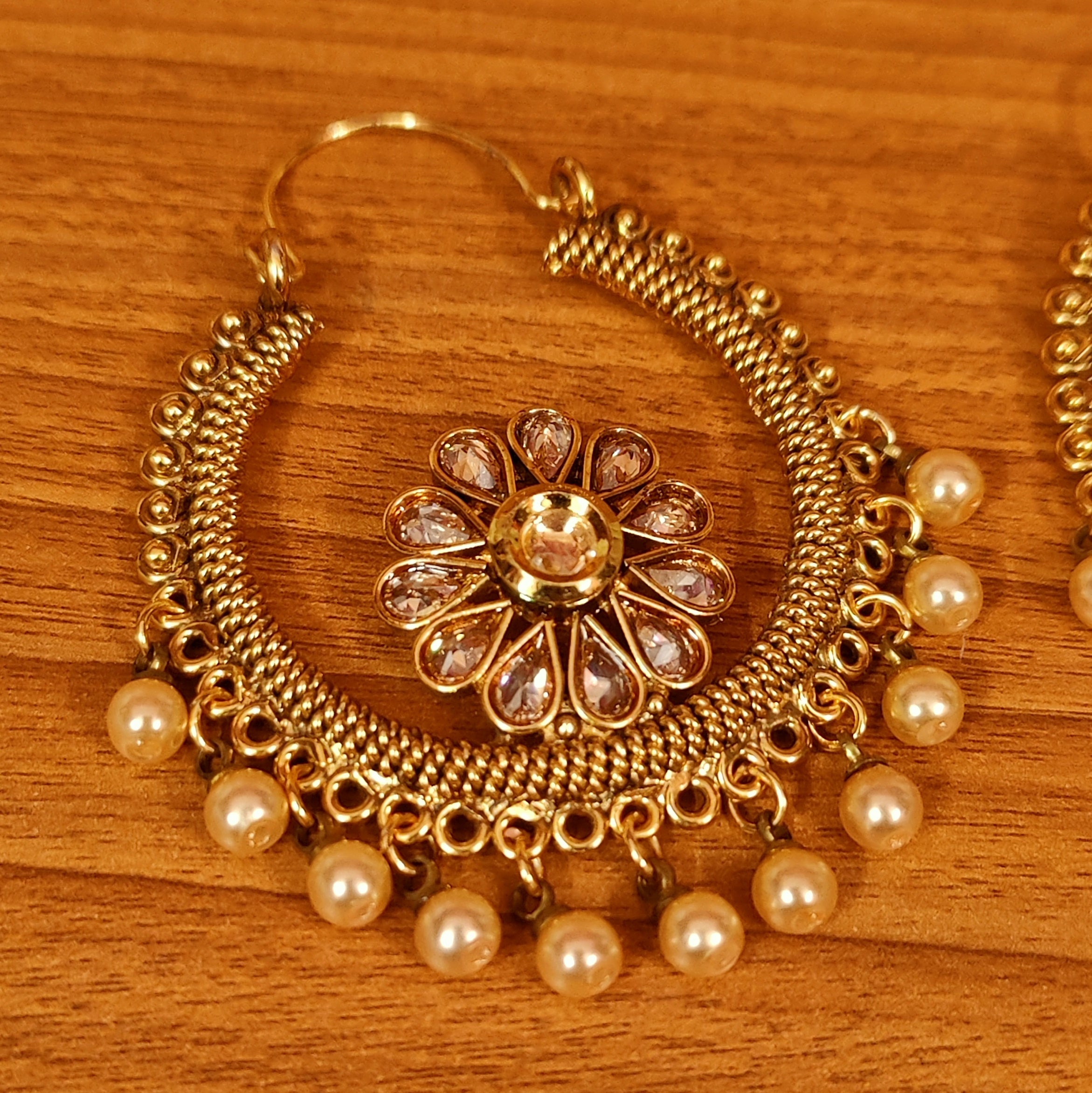 KUNDAN POLKI & PEARL GOLD LOOK HOOPS