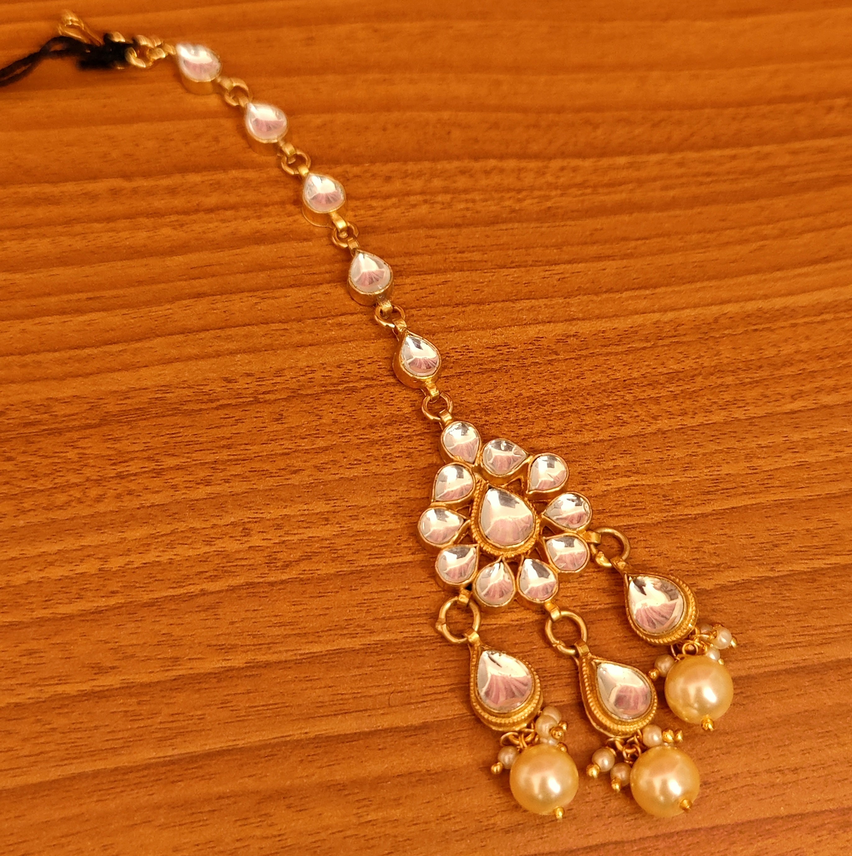 PEAR SHAPED KUNDAN POLKI & PEARL MAANG TIKKA