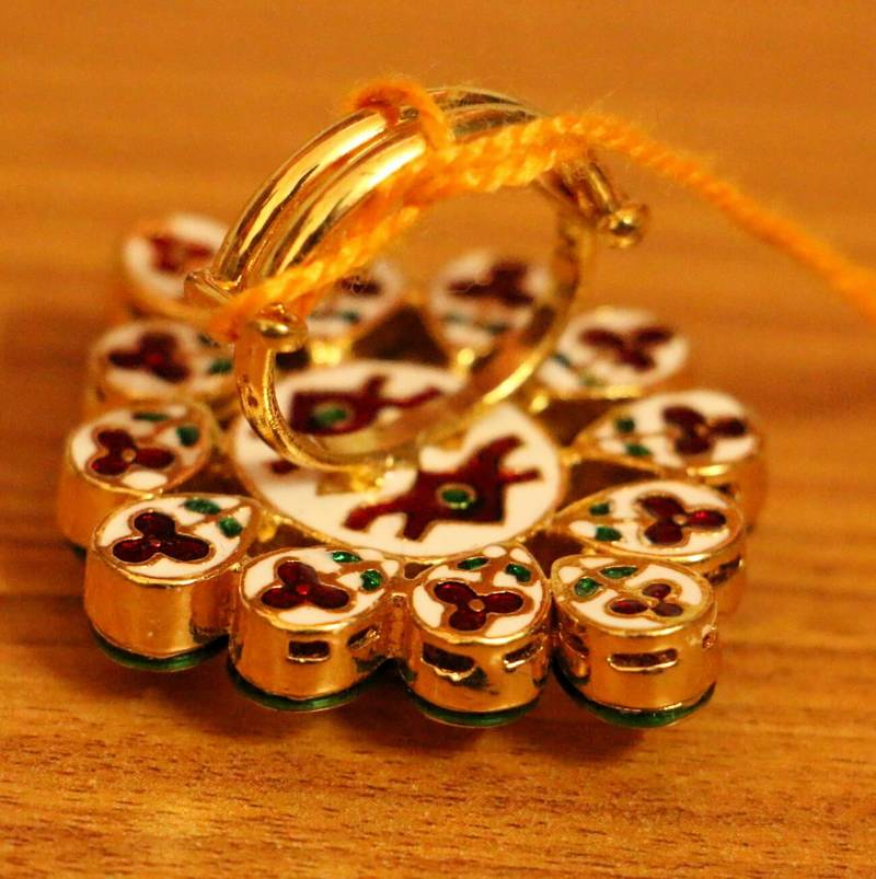 This beautiful ring is handcrafted in brass alloy with imitation rAmethyst Look stone & kundan work of very fine quality . This ring is coated with 18 kt gold polish which give them a unique look . An absolutely stunning piece to own and are very light in weight.