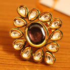 KUNDAN POLKI RHODOLITE STONE ADJUSTABLE COCKTAIL RING
