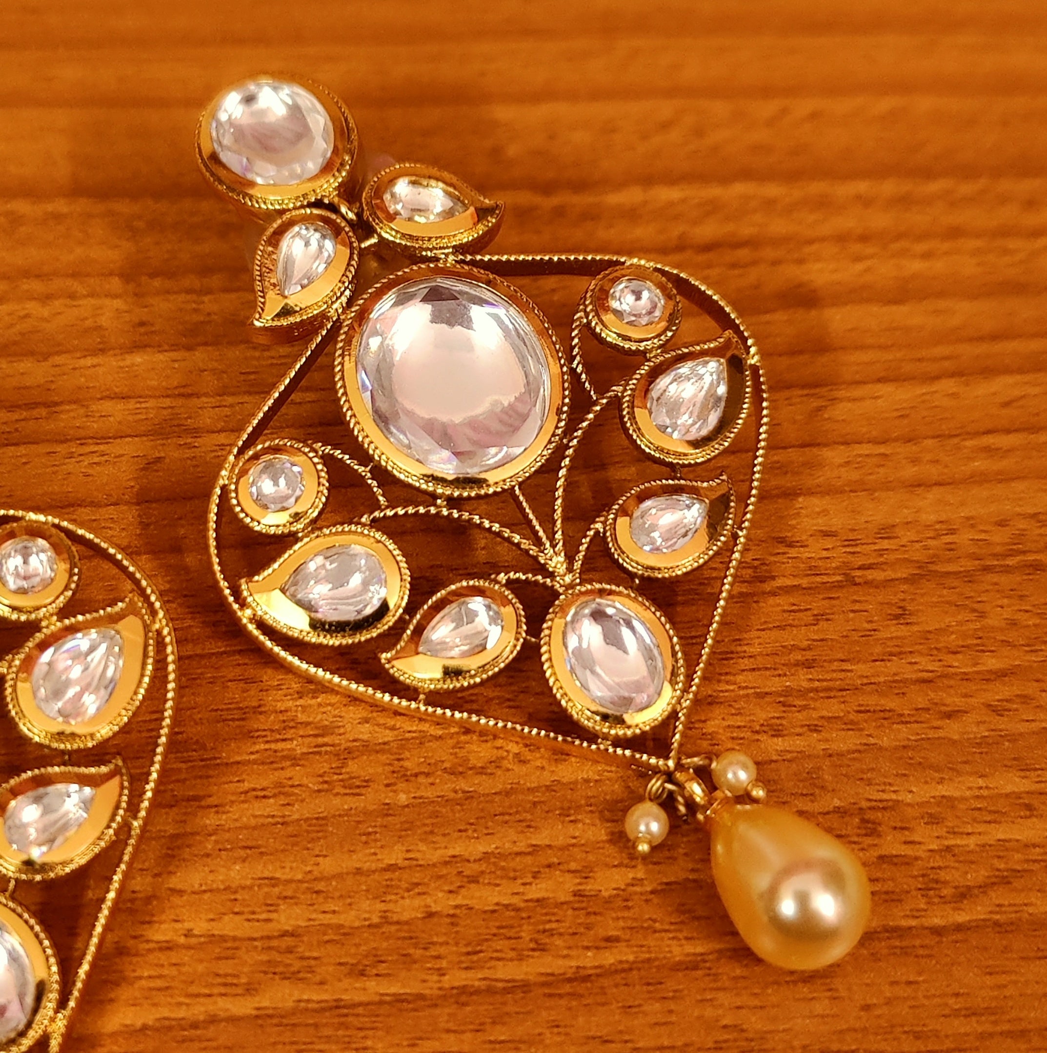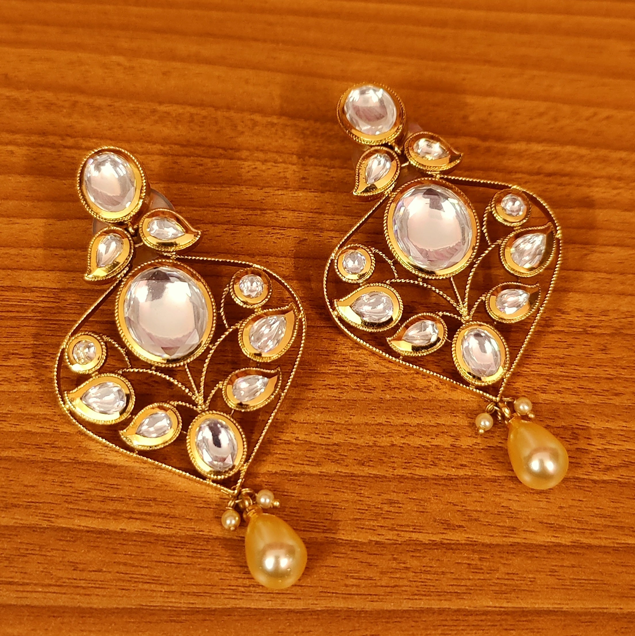 UNCUT KUNDAN POLKI GOLD LOOK DANGLERS