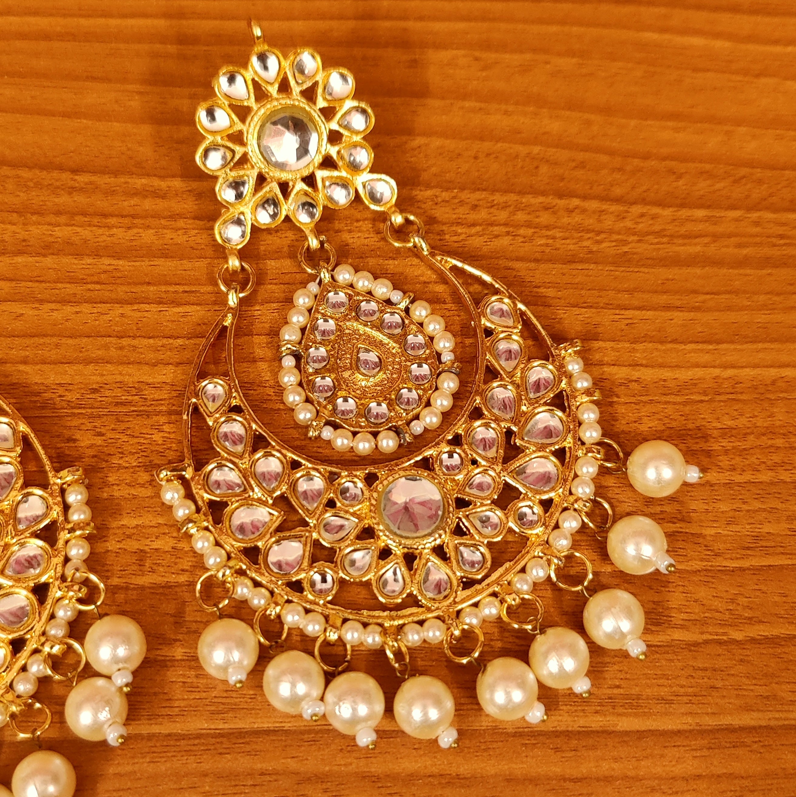 KUNDAN POLKI & PEARL GOLD LOOK CHAANDBALI