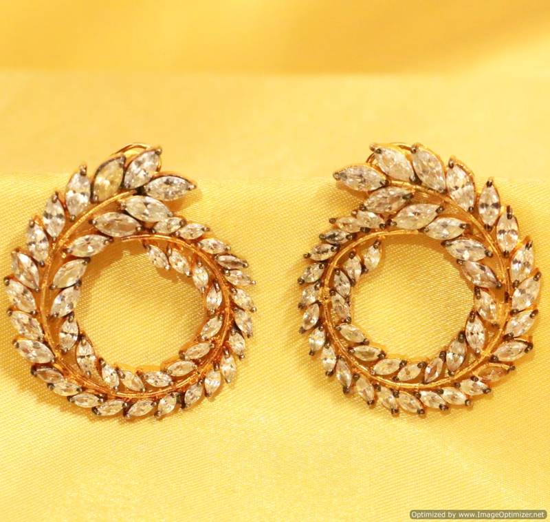 These beautiful Earrings are handcrafted in silver alloy with imitation zircon of very fine quality . These earrings are coated with 18 kt white gold polish which give them a unique look . An absolutely stunning piece to own and are very light in weight.