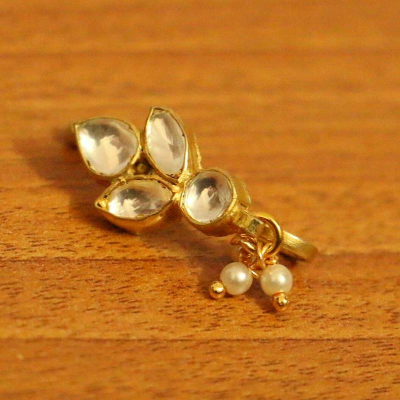 Leaf Pattern Uncut Kundan polki Marathi Nose Ring