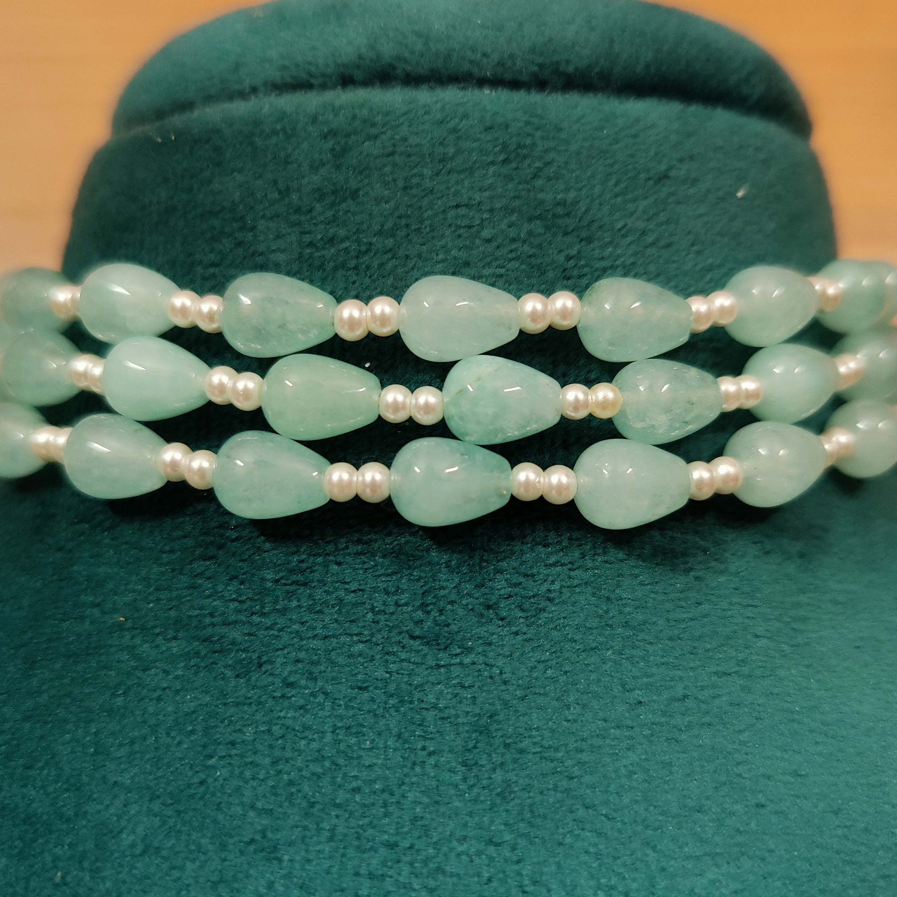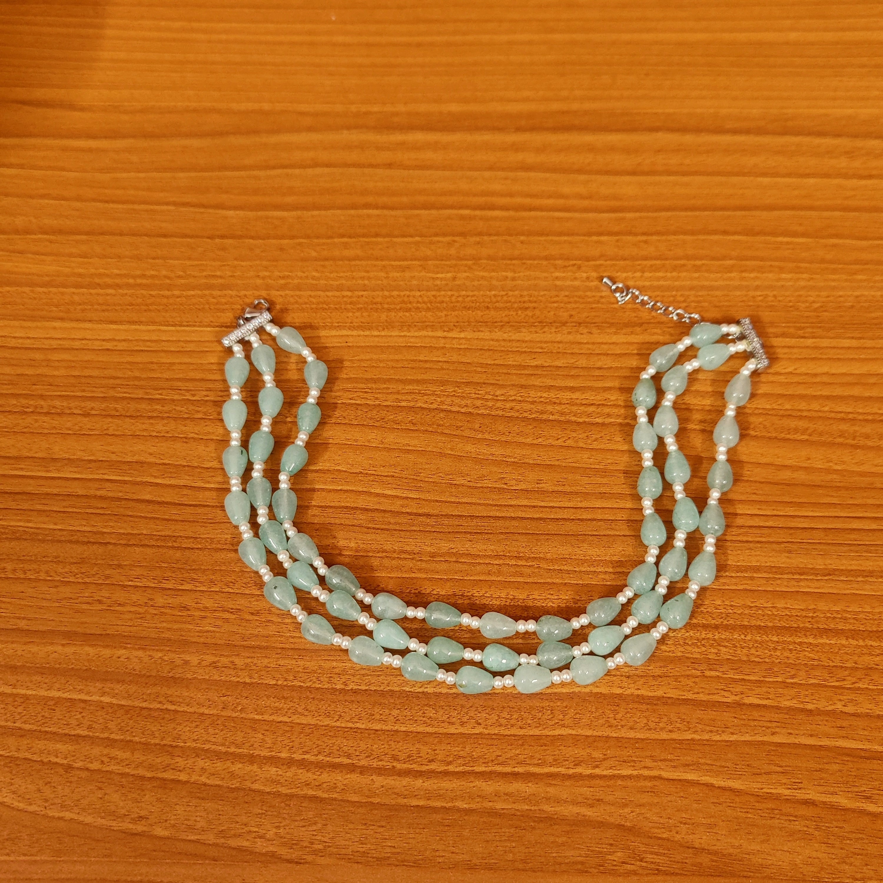 LIGHT TURQUOISE MONALISA BEADS 3 LAYERED CHOKER NECKLACE