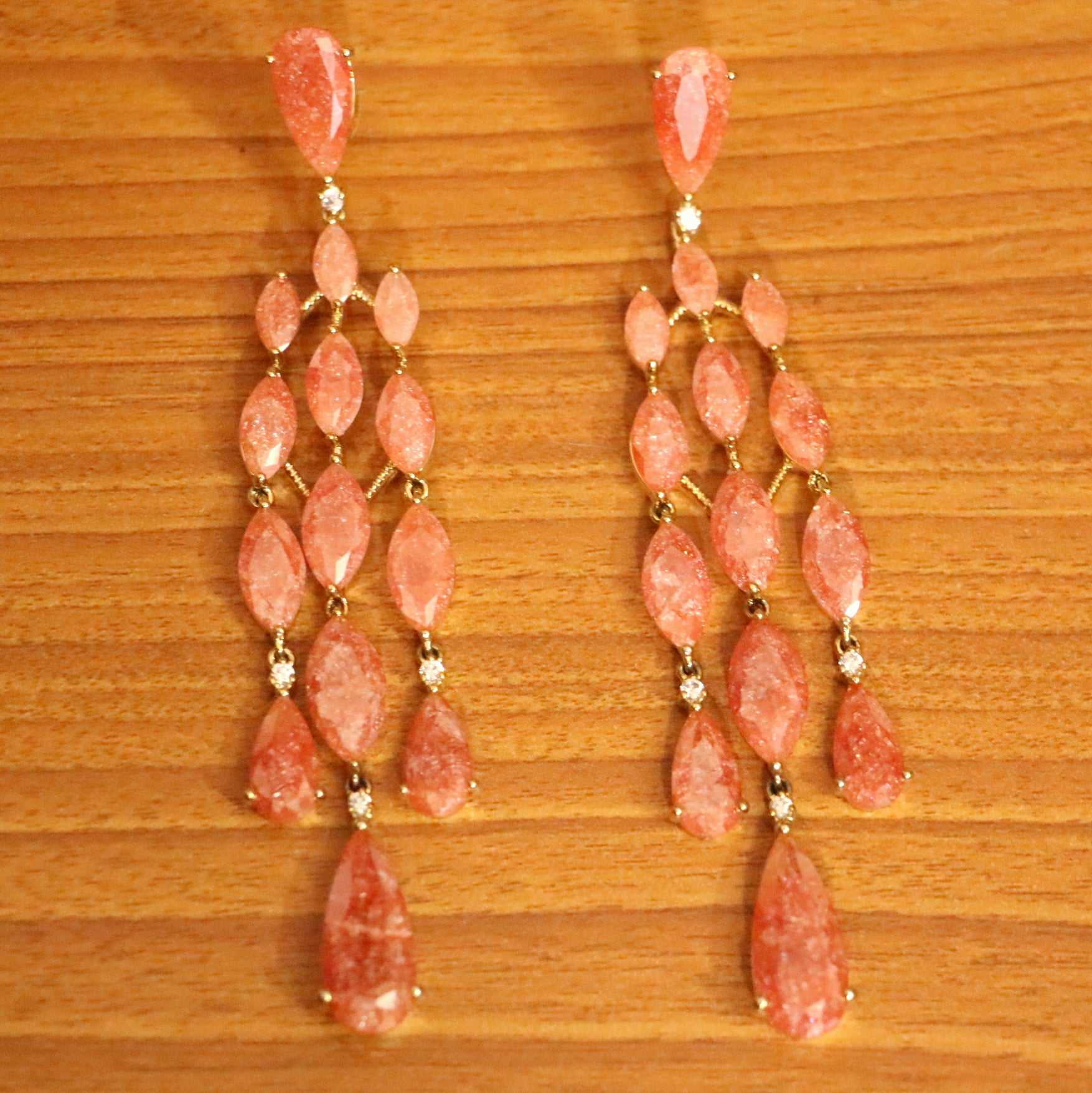 These earrings are handcrafted in silver alloy with imitation quartz gemstone of very fine quality. These artistic yet modern earrings are plated with high quality white gold rhodium. The earrings are very light in weight.