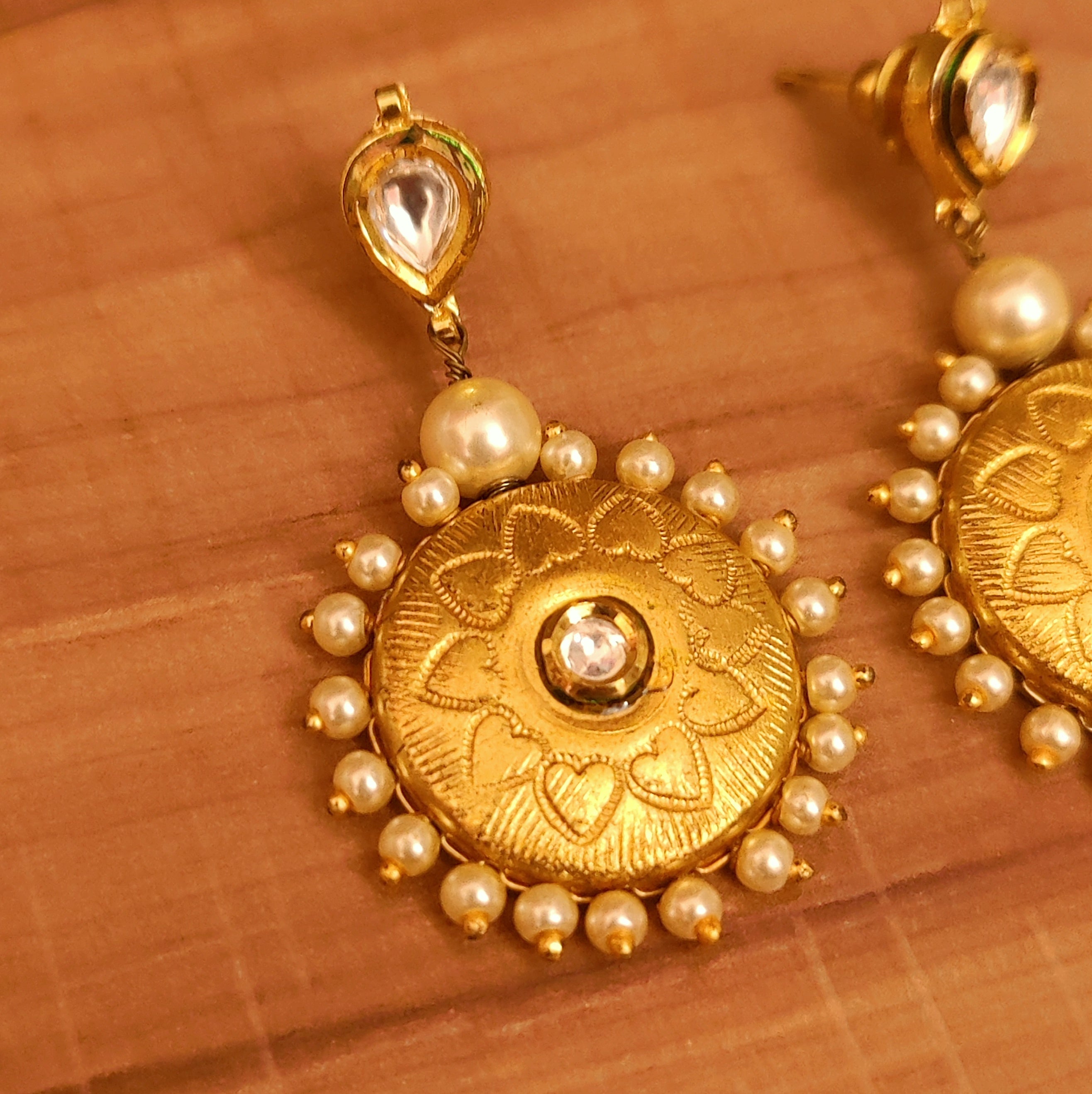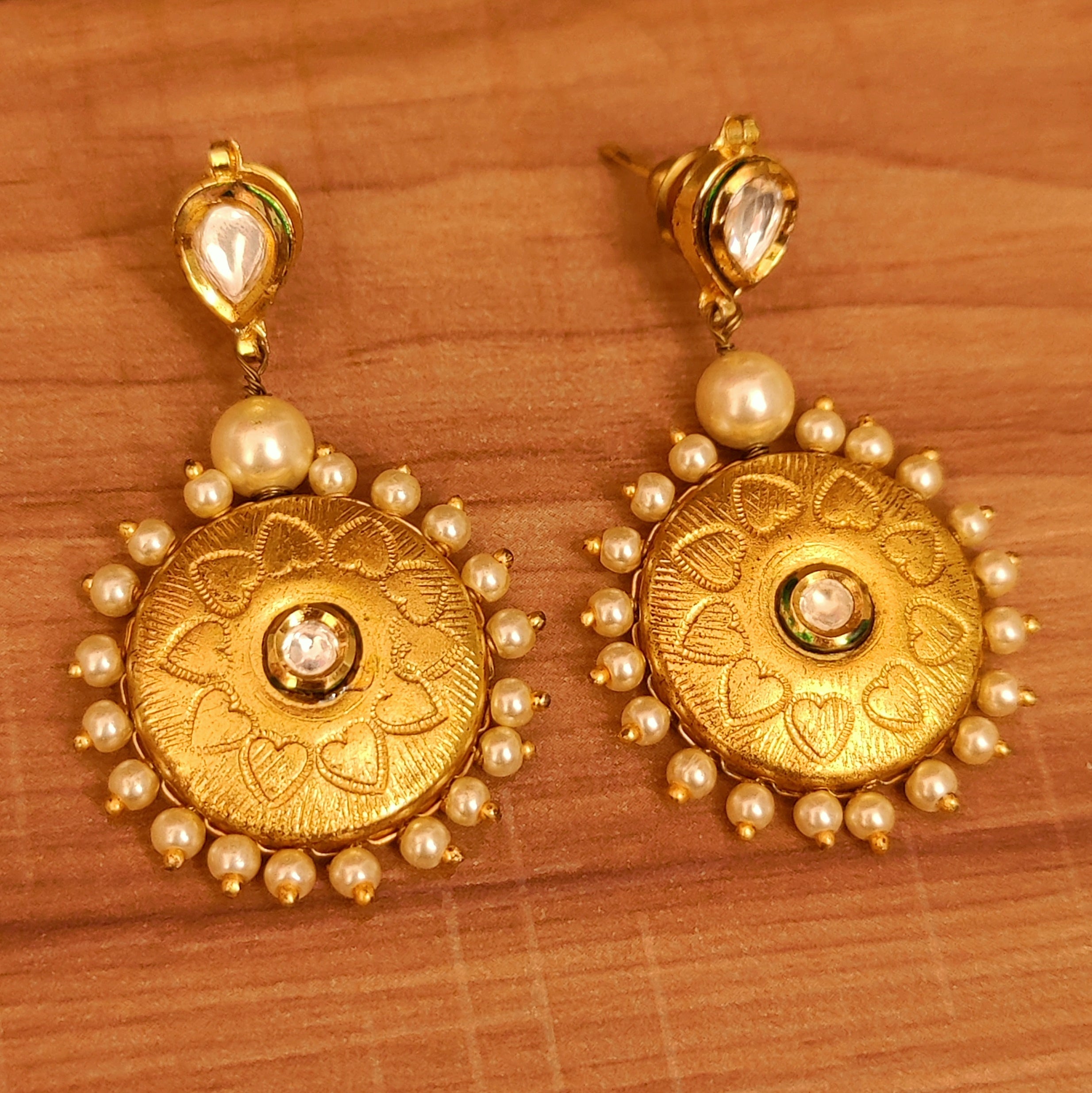 MATT GOLD LOOK KUNDAN POLKI & PEARL STUDS