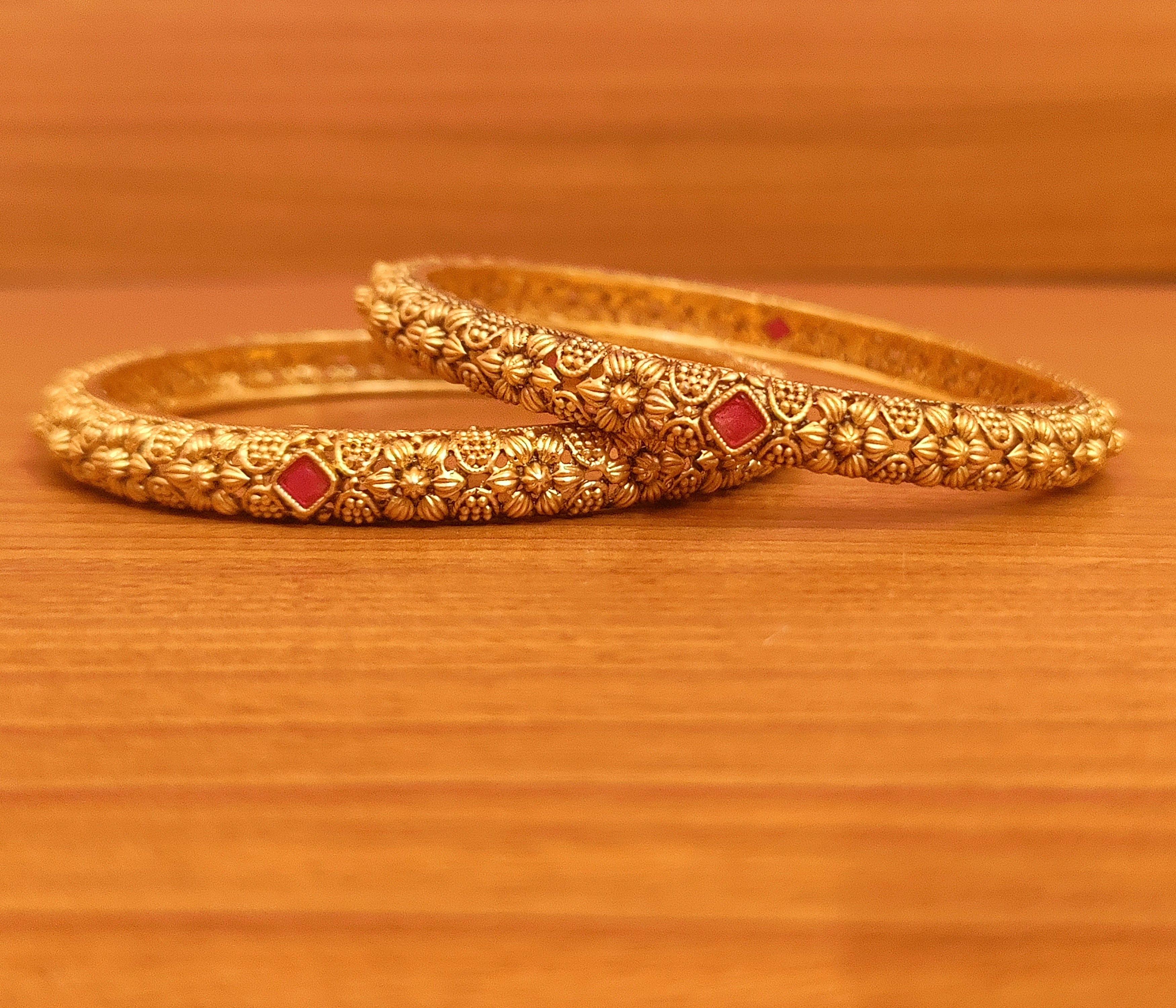 MATT GOLD LOOK RUBY FLOWER BANGLES