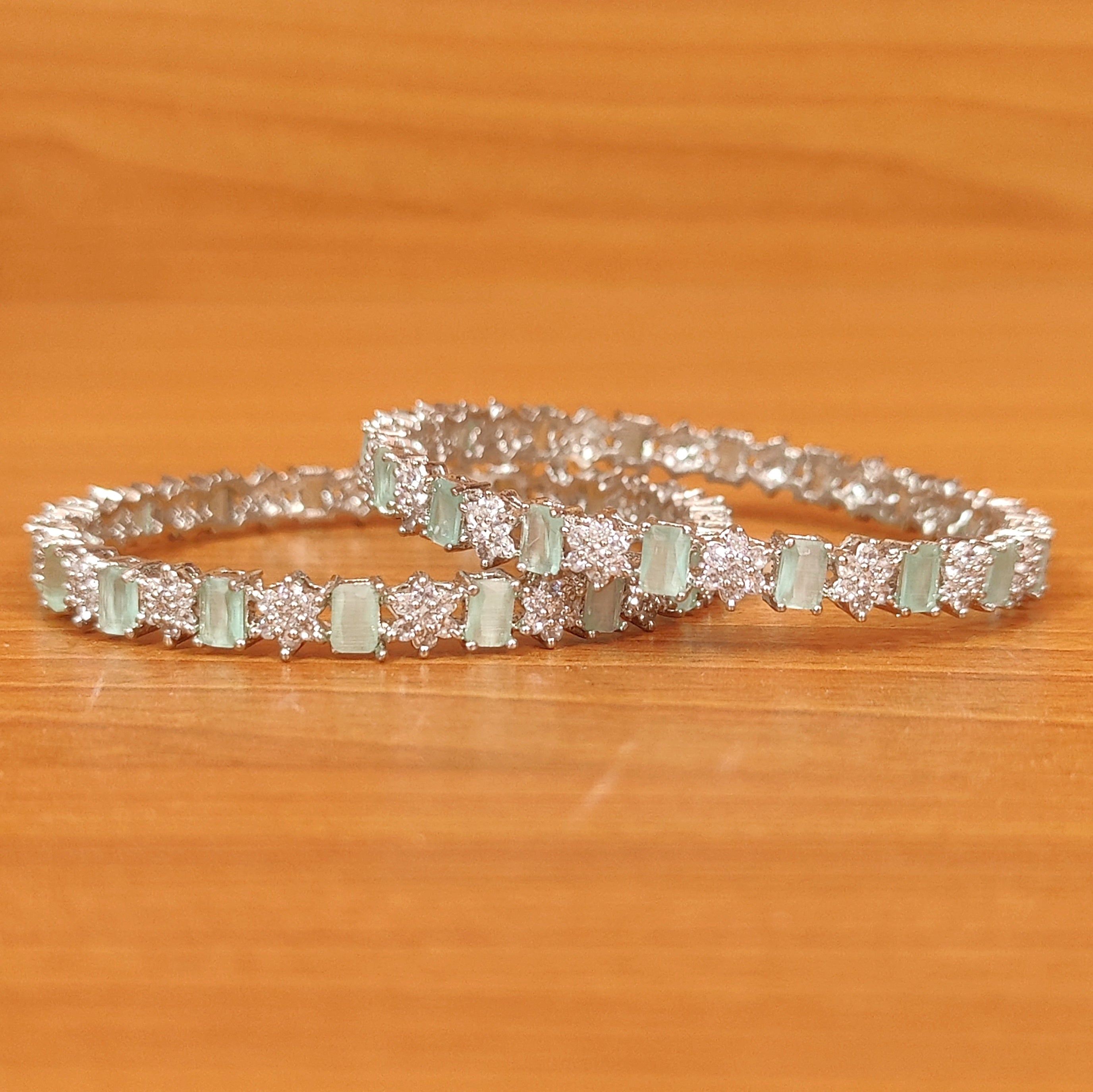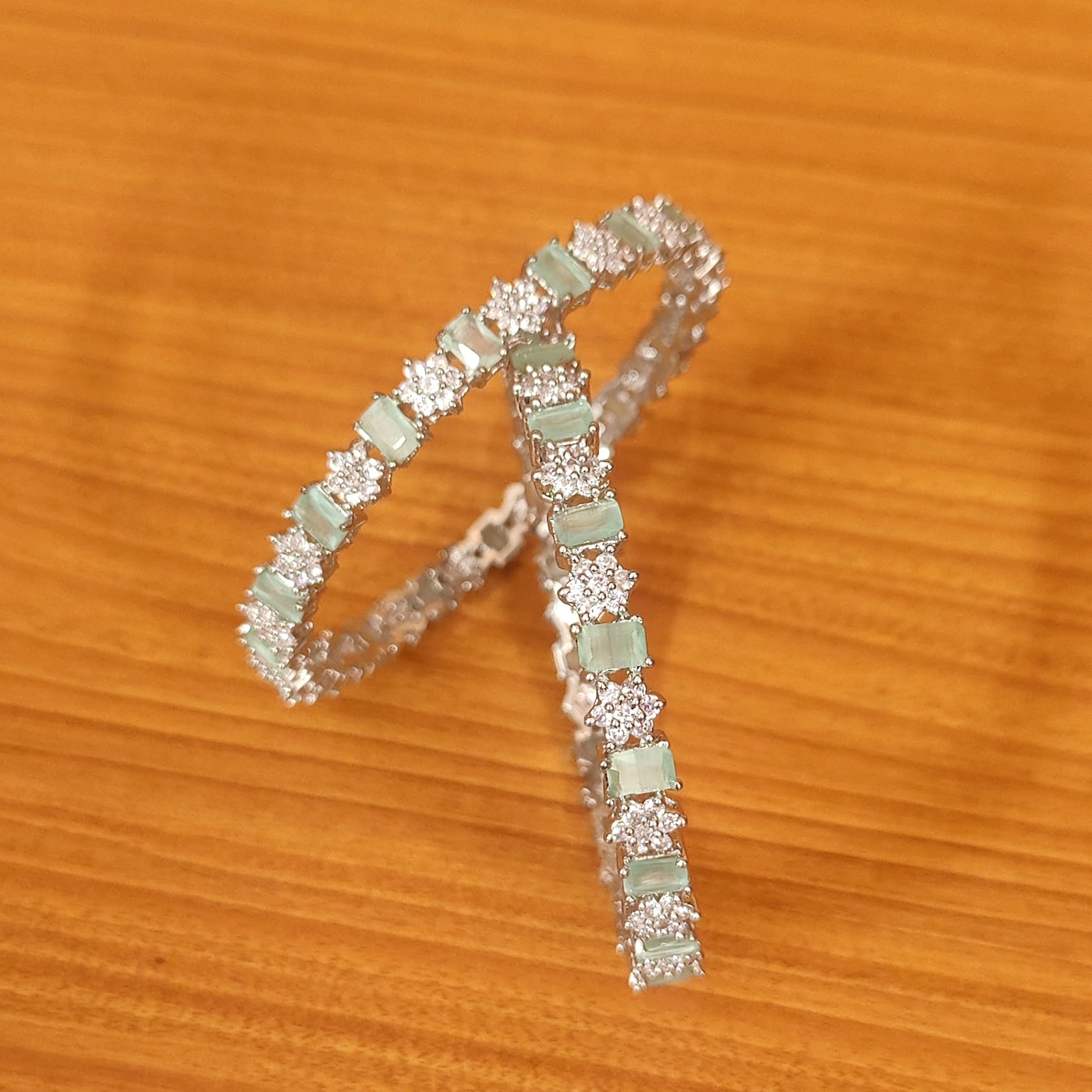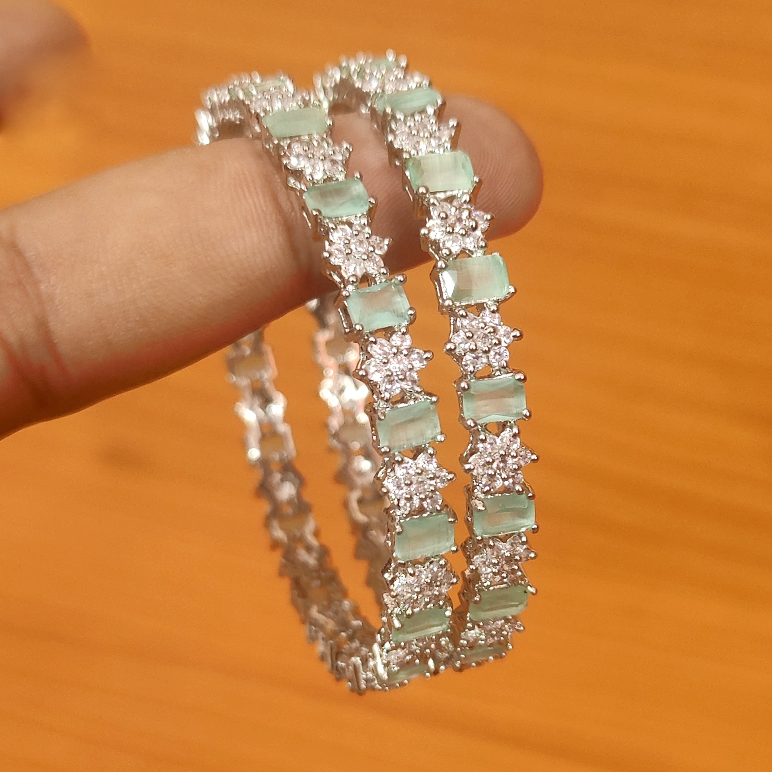 MINT GREEN CZ & AMERCIAN DIAMOND SILVER PLATED BANGLES