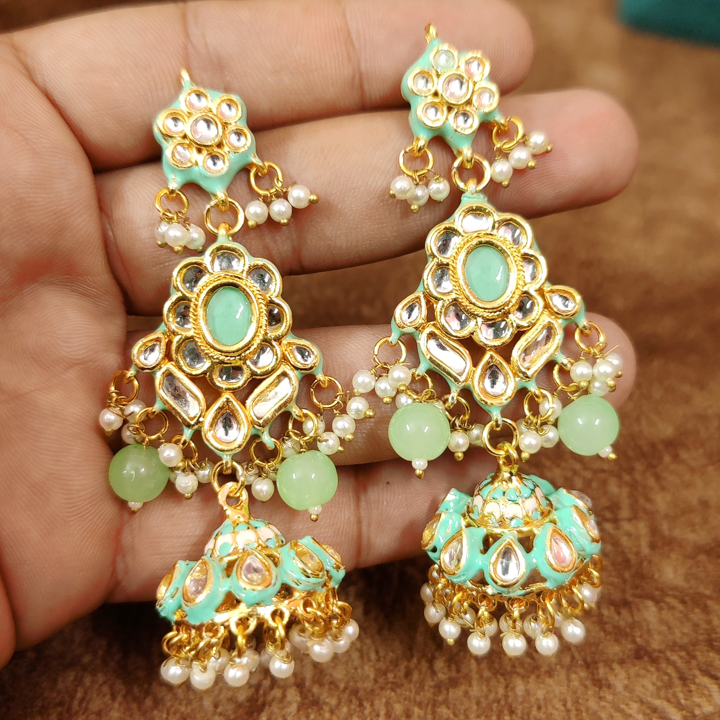 Add a fresh and elegant touch to your bridal look with the Mint Green Kundan Polki Wedding Necklace Set from Sanvi Jewels. This stunning set features mint green stones, exquisite Kundan Polki craftsmanship, and a sophisticated design, making it perfect for weddings and grand celebrations. With its luxurious charm and timeless appeal, this set will make you shine on your special day.
