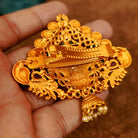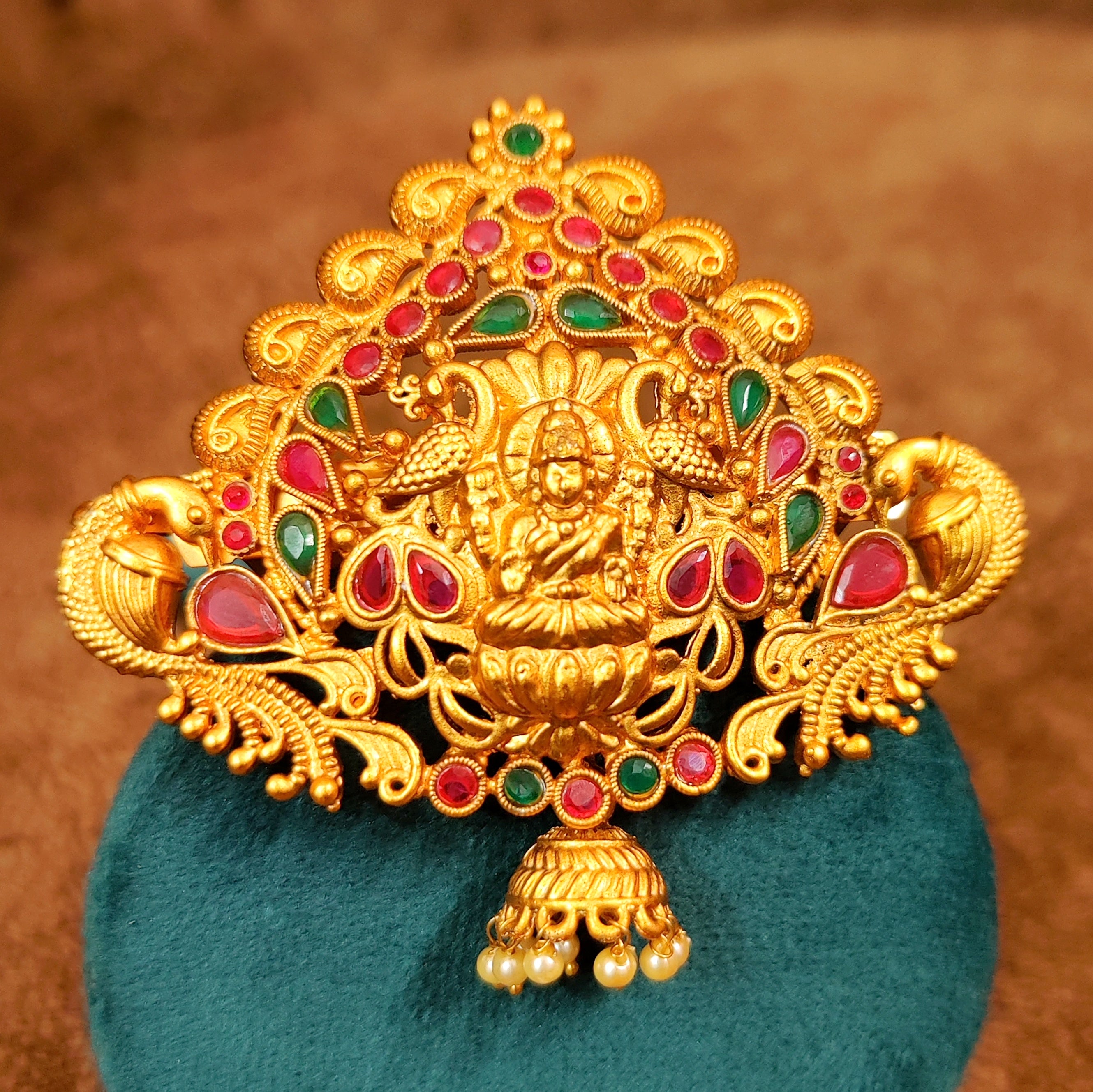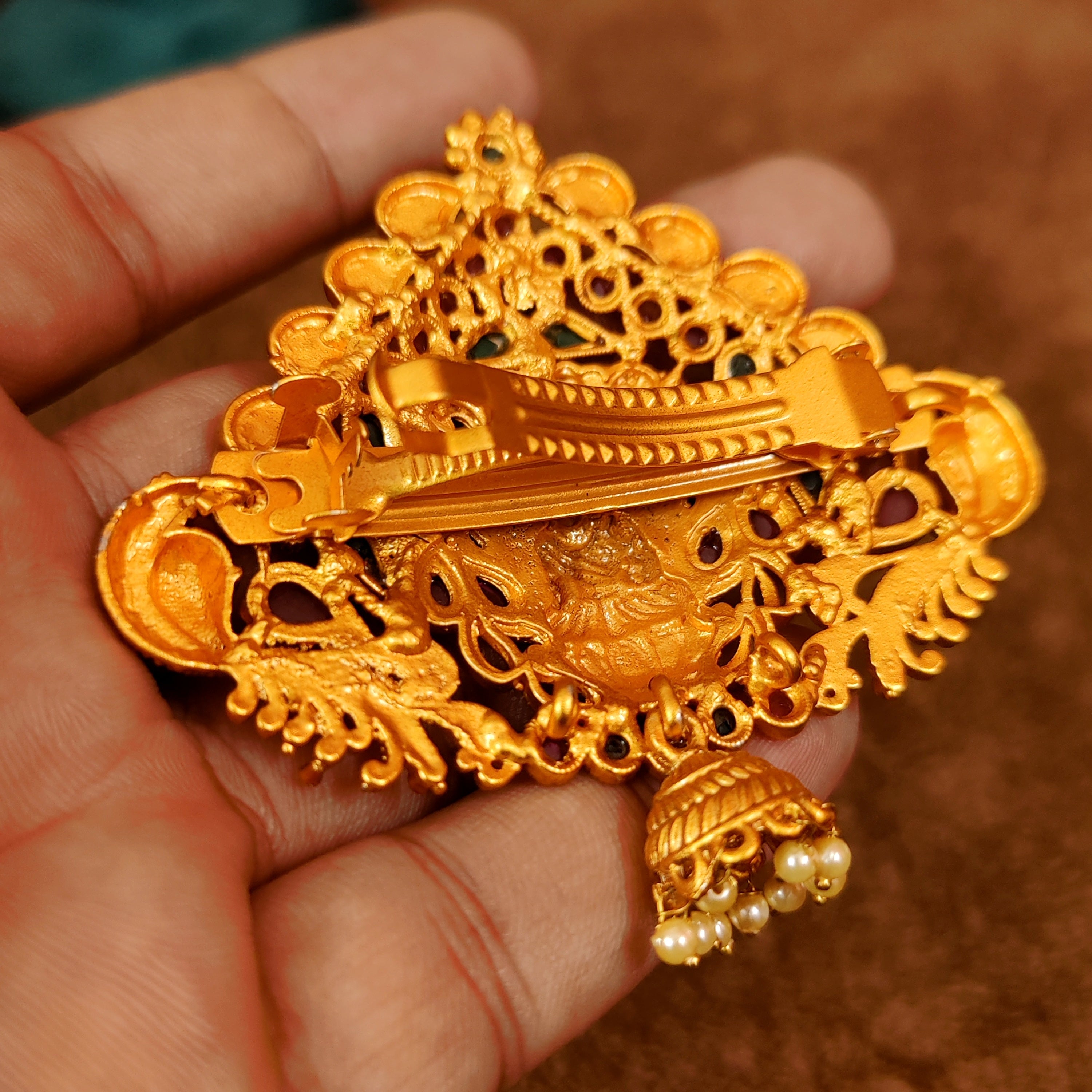 This Goddess Laxmi Polki Hairclip Is Handcarfted In Copper Alloy With Imitation Red Green Stone & Semi Precious Pearl Of Very Fine Quality , The Hairclip Is Light In Weight And Plated With 18kt Matt Gold Rhodium To Give It A Real Gold Look.