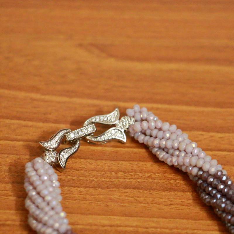 This Crystal Look Necklace Is Handcrafted With Imitation Swarowski Crystal Of Very Fine Quality Twisted Together To Make A Fine Pattern. The Necklace Looks Very Classy And Has A Silver Plated American Diamond Studded Lock .
