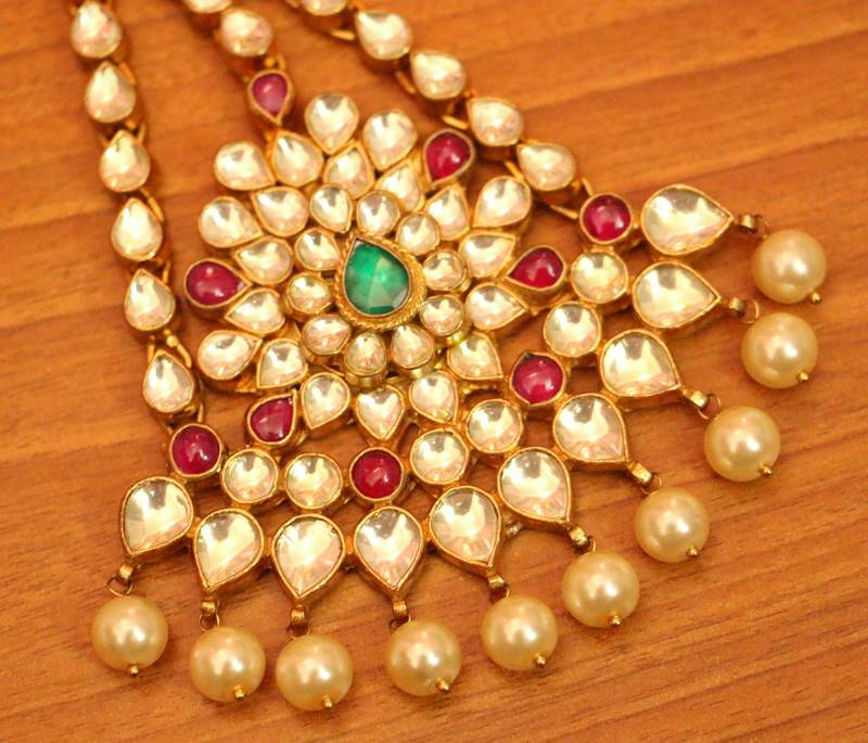 - Material: Brass Alloy, Kundan, Pearls, Yellow Gold