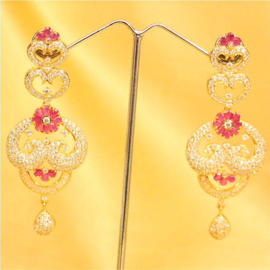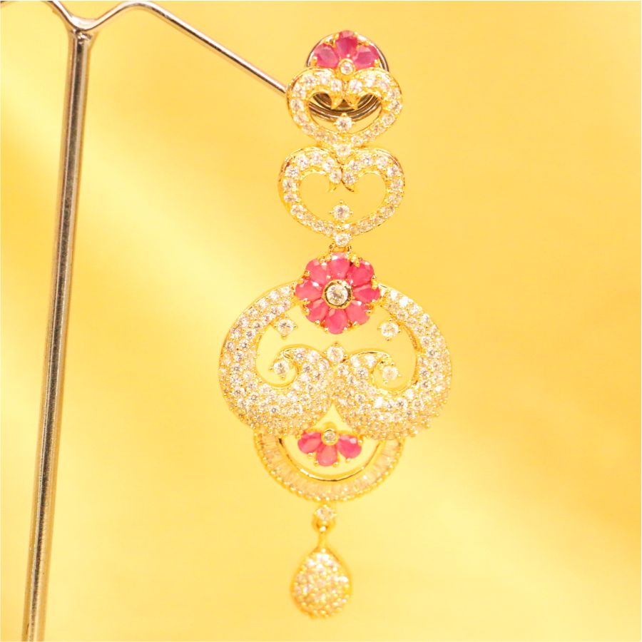 This beautiful Earring is handcrafted silver alloy of very fine quality with imitation American diamond,pearl and semi precious stone of very fine quality. This necklace set is coated with 18 kt gold polish which give them a unique look . An absolutely stunning piece to own and are very light in weight.