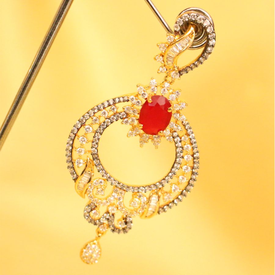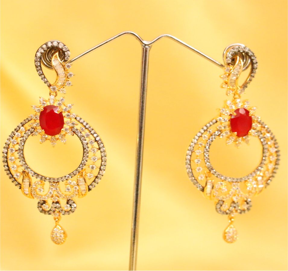 This beautiful Earring is handcrafted silver alloy of very fine quality with imitation American diamond and semi precious stone of very fine quality. This necklace set is coated with 18 kt gold polish which give them a unique look . An absolutely stunning piece to own and are very light in weight.