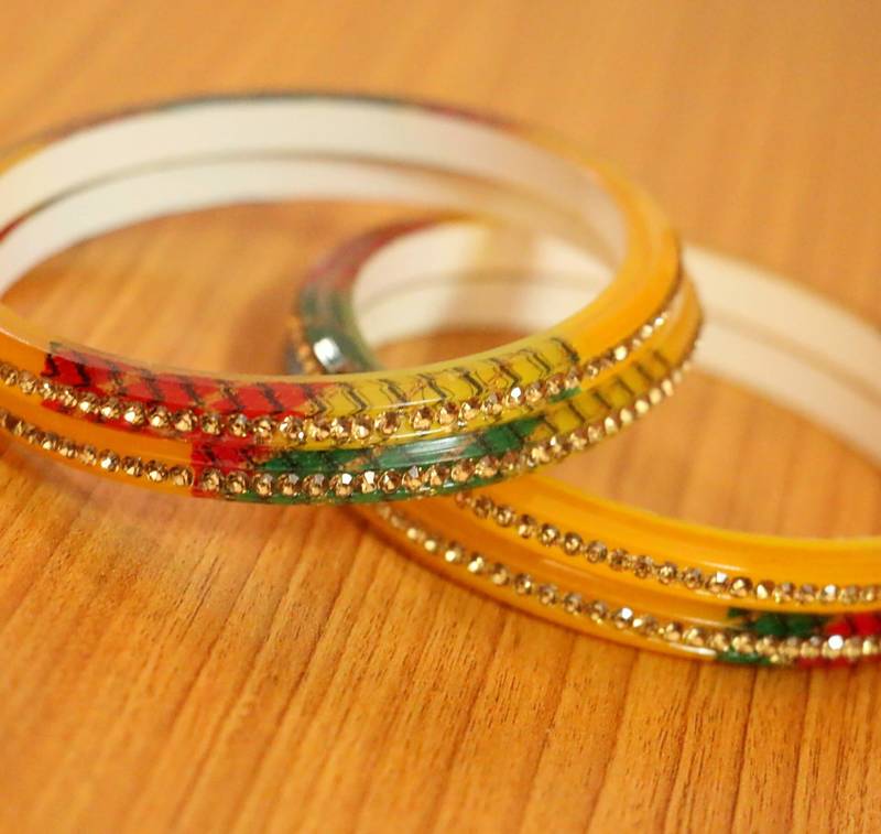 These bangles are handcrafted in acrylic materal with imitation zircon stone of very fine quality. An absolutely stunning piece and are very light in weight.