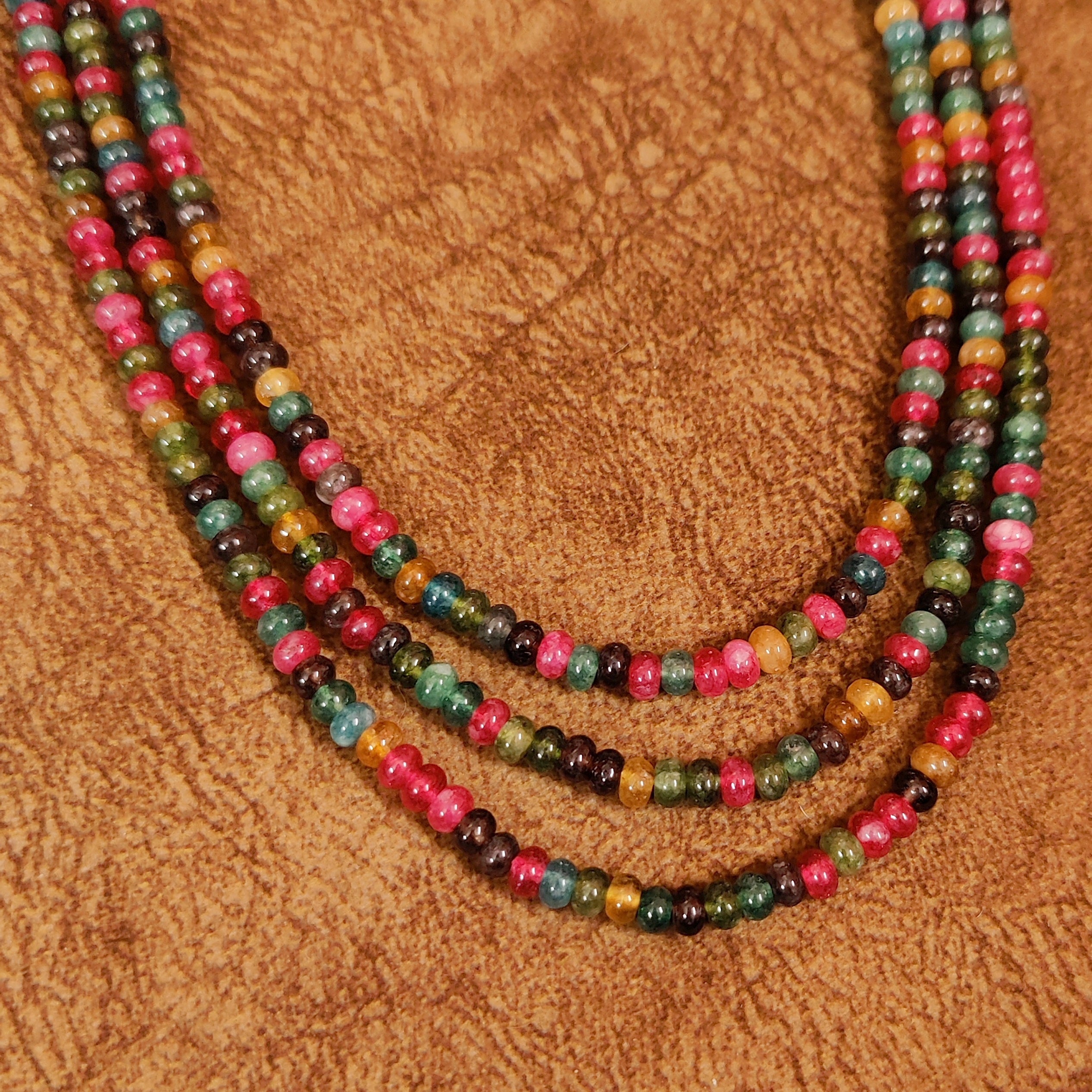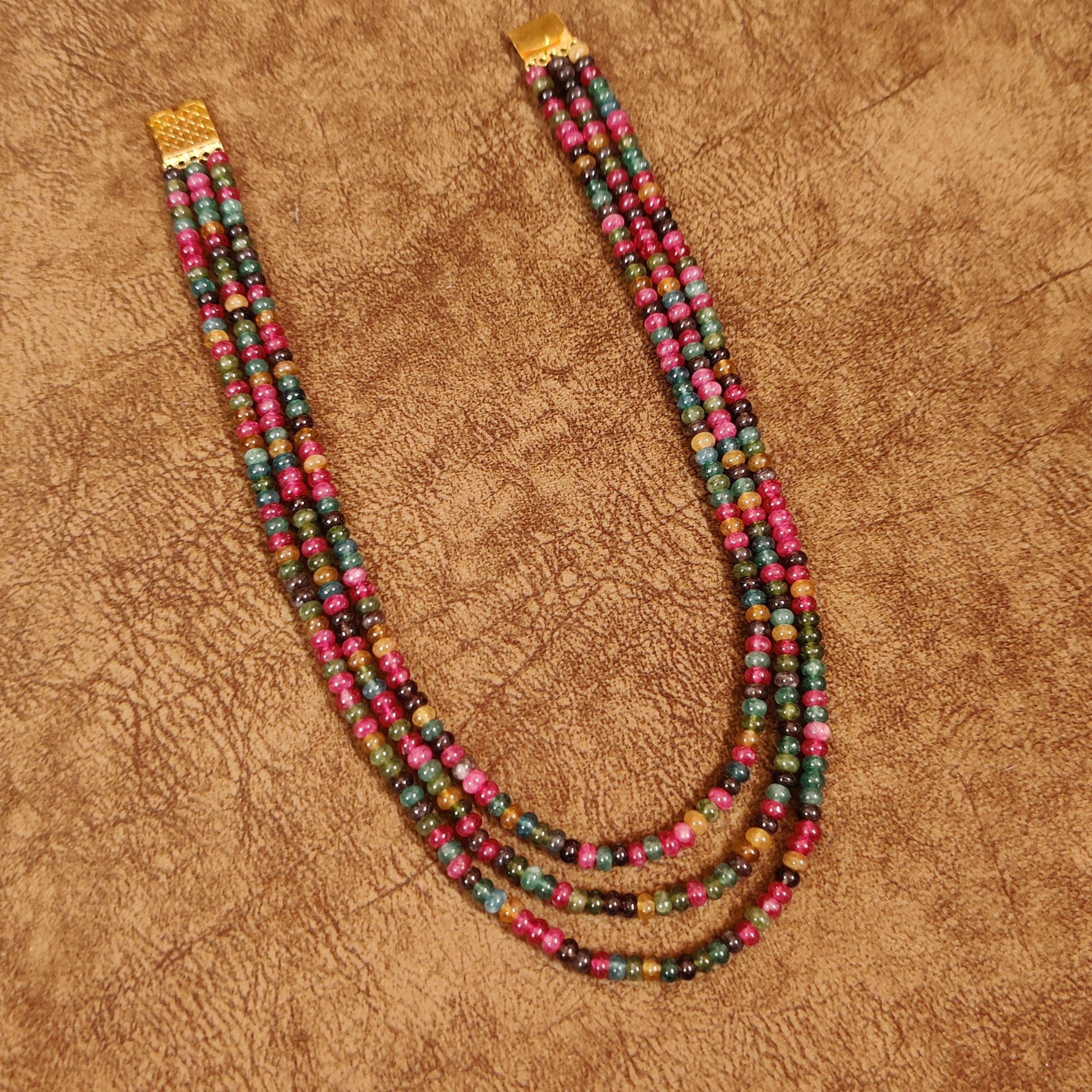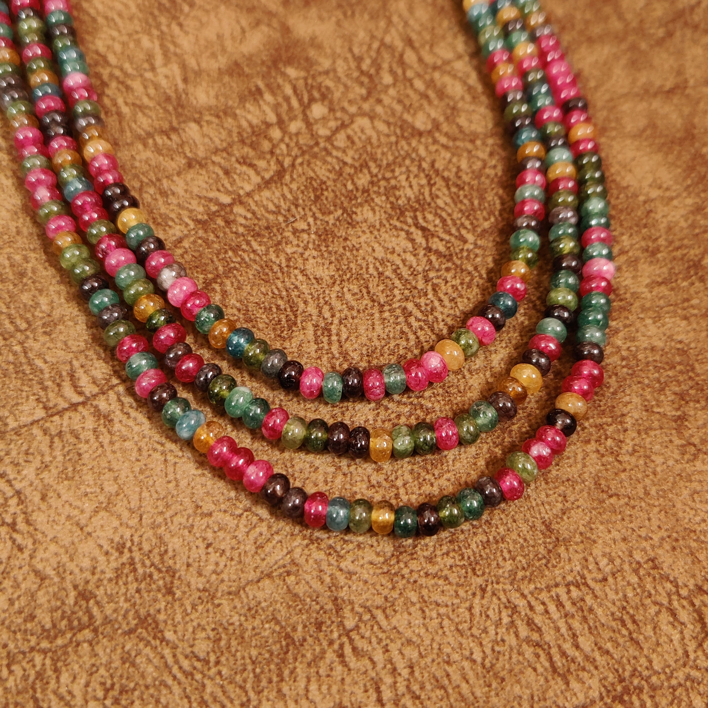 MULTICOLOUR 3 LINE QUARTZ SEMI-PRECIOUS NECKLACE