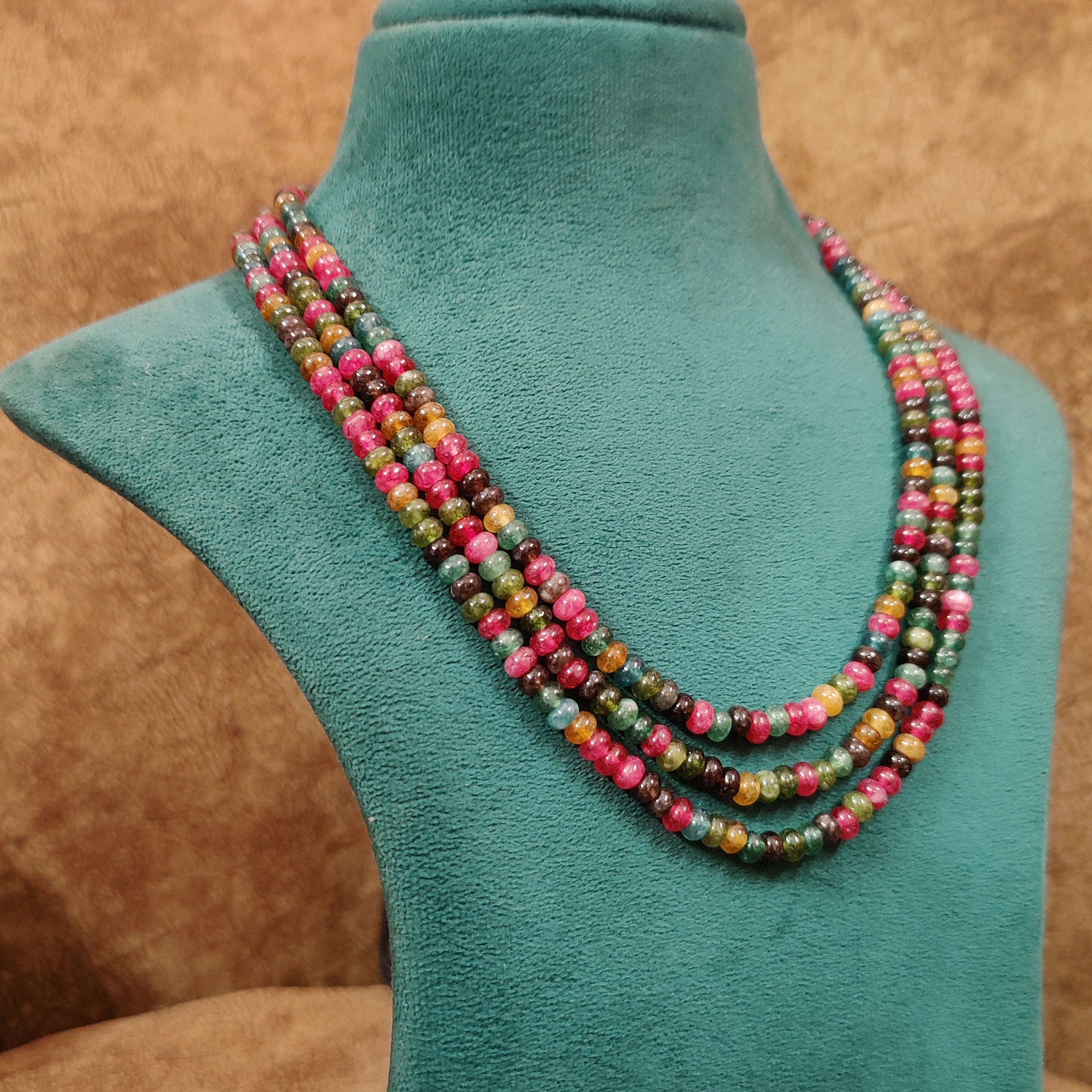 Treat yourself to a timeless treasure with our Multi Colour Tourmaline 8mm 2 Layered Necklace. Crafted with multicolour tourmaline beads, this sophisticated necklace exudes luxury and elegance with an intricate layering that makes it a stand out piece. Wear it and make an indelible impression wherever you go.