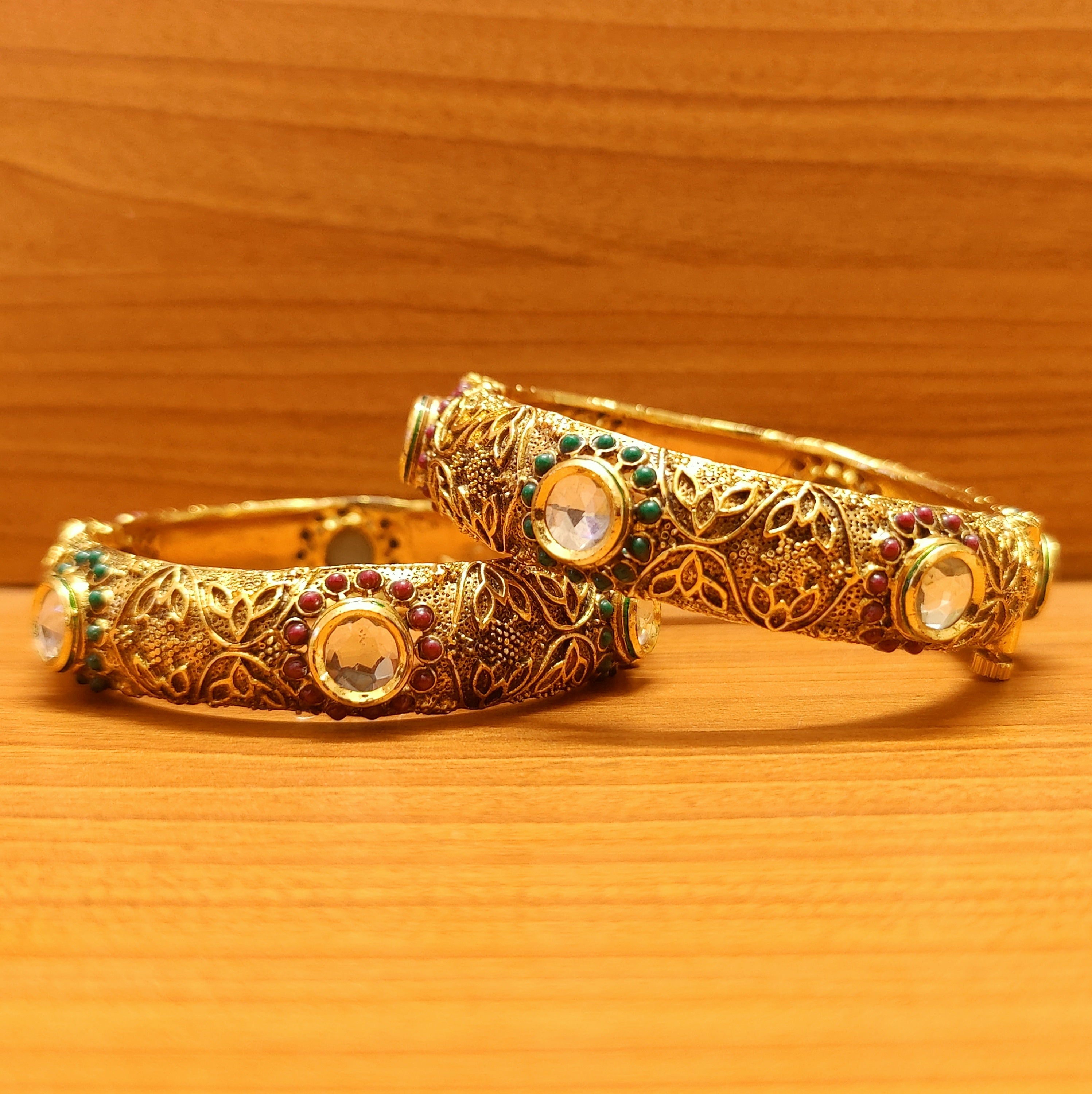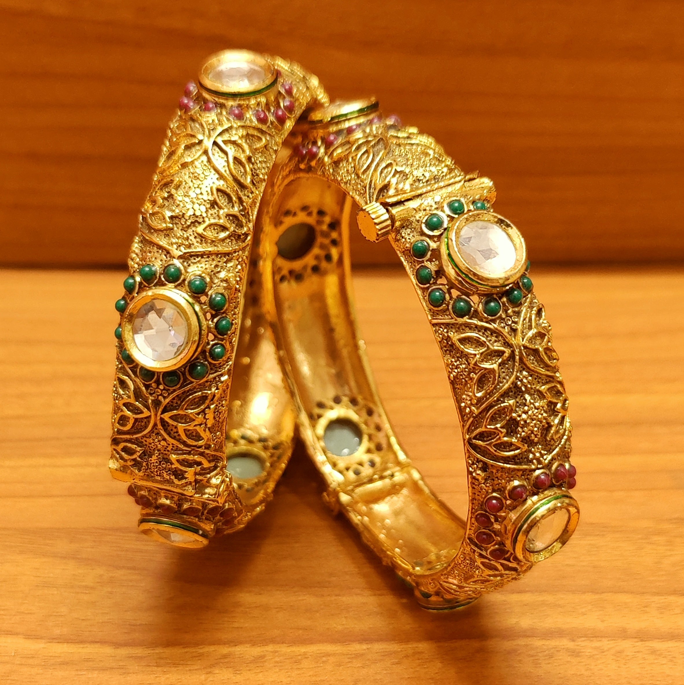 MULTICOLOUR ANTIQUE LOOK KUNDAN OPENABLE BANGLES