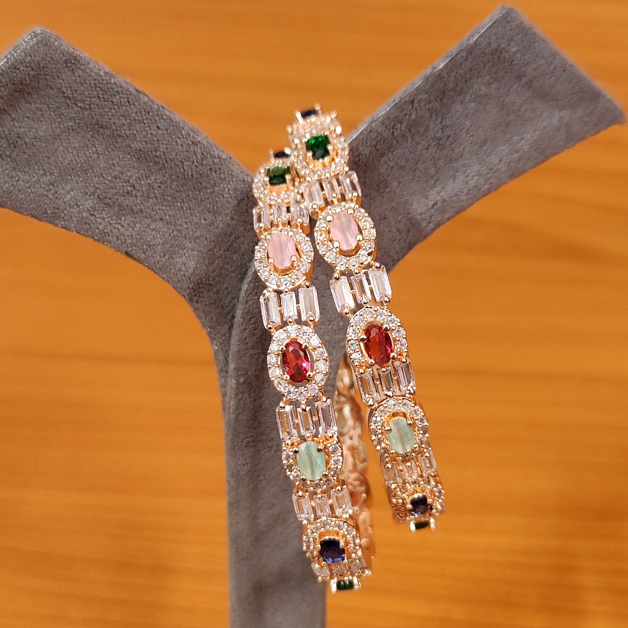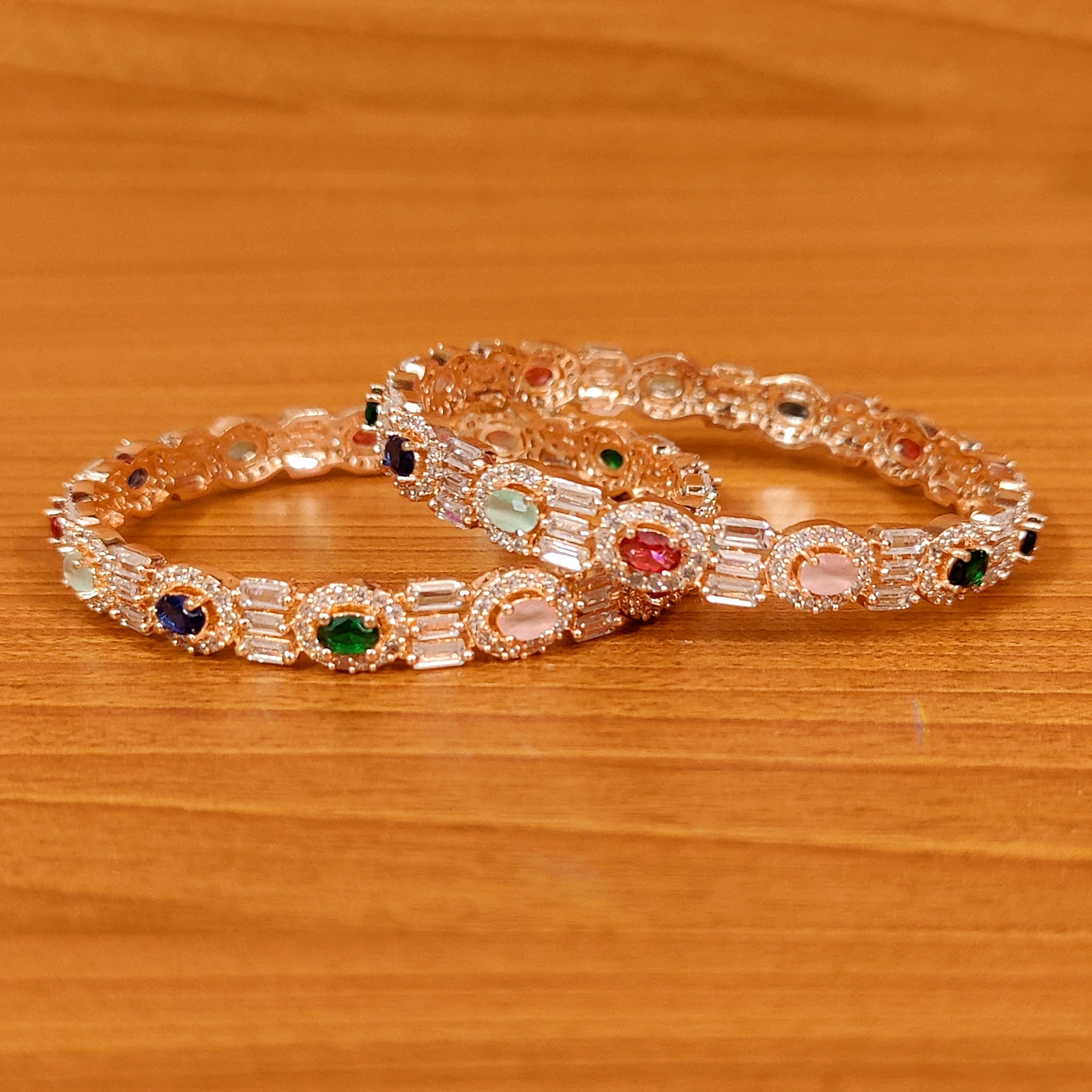 MULTICOLOUR CZ & AMERICAN DIAMOND ROSE GOLD BANGLES