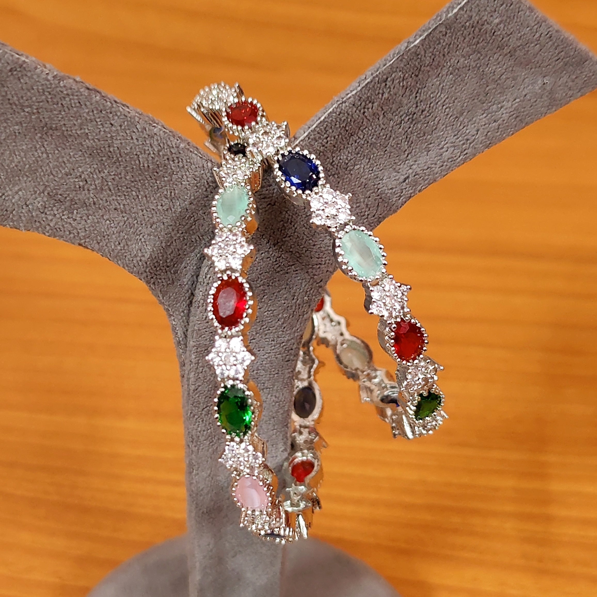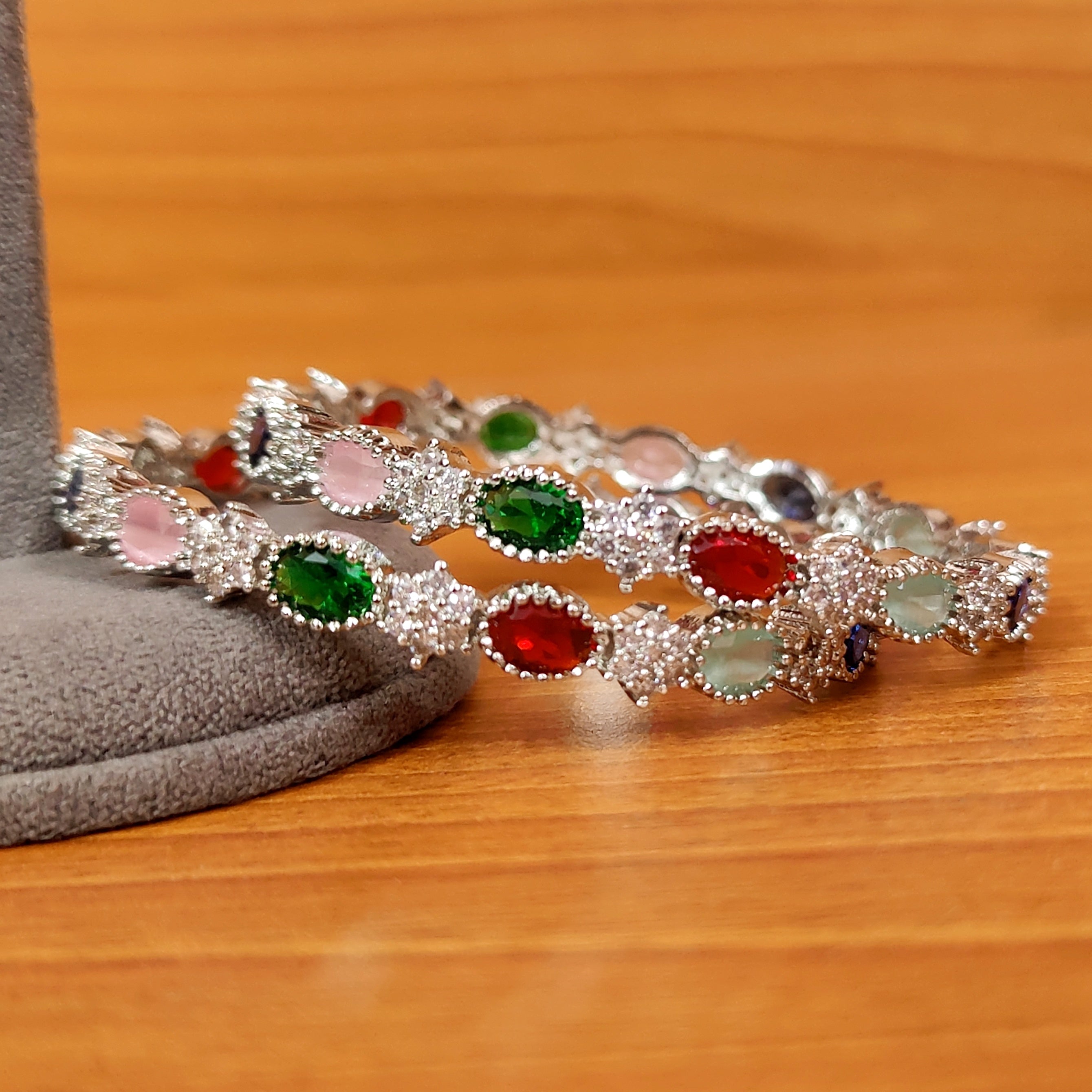 MULTICOLOUR CZ & AMERICAN DIAMOND SILVER PLATED BANGLES
