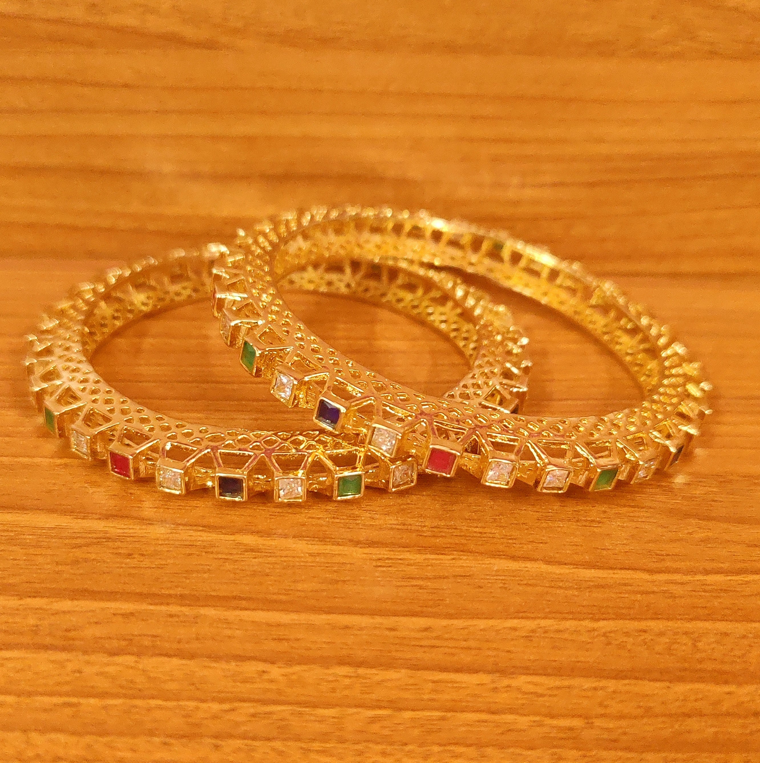 MULTICOLOUR CZ GOLD PLATED PACHELI STYLE BANGLES