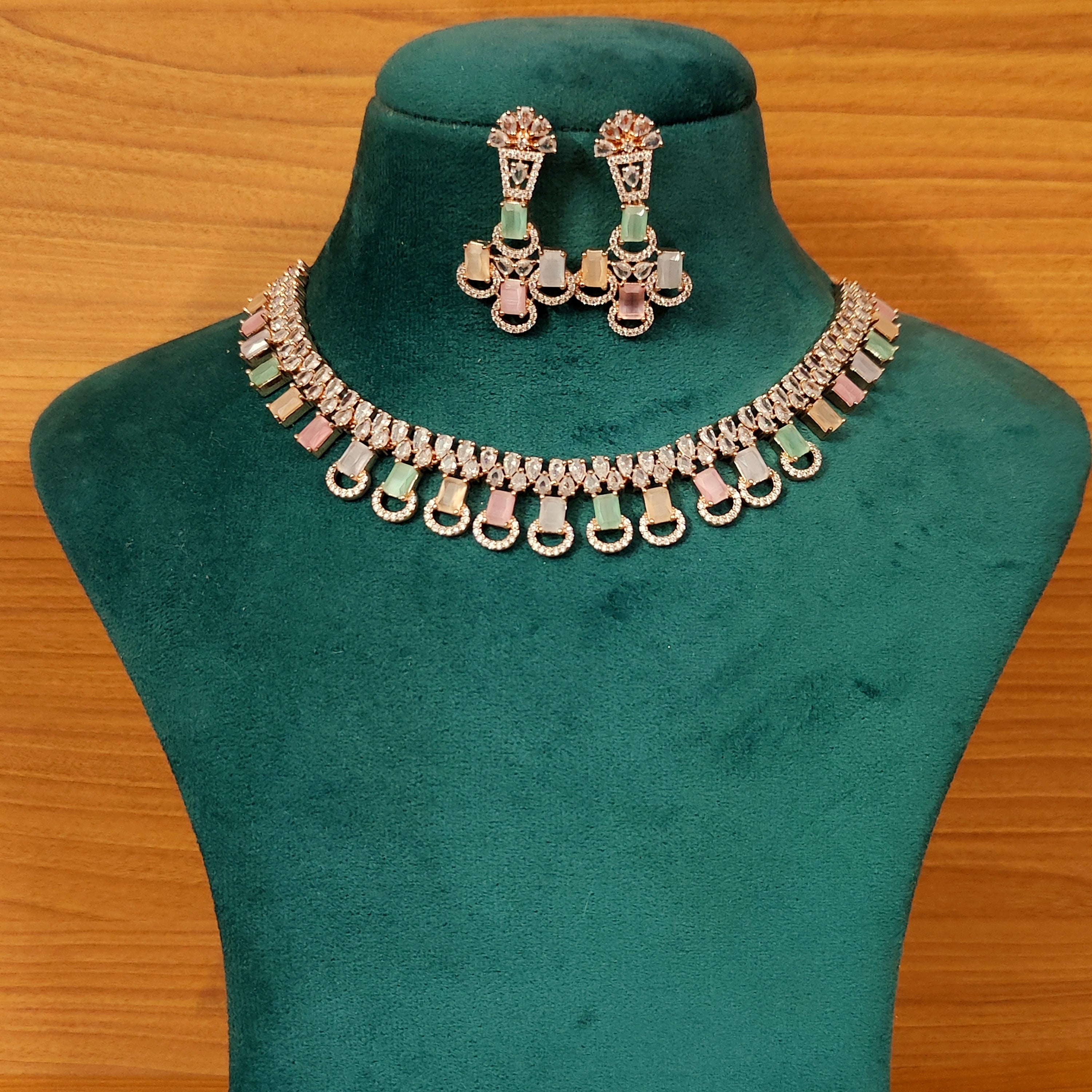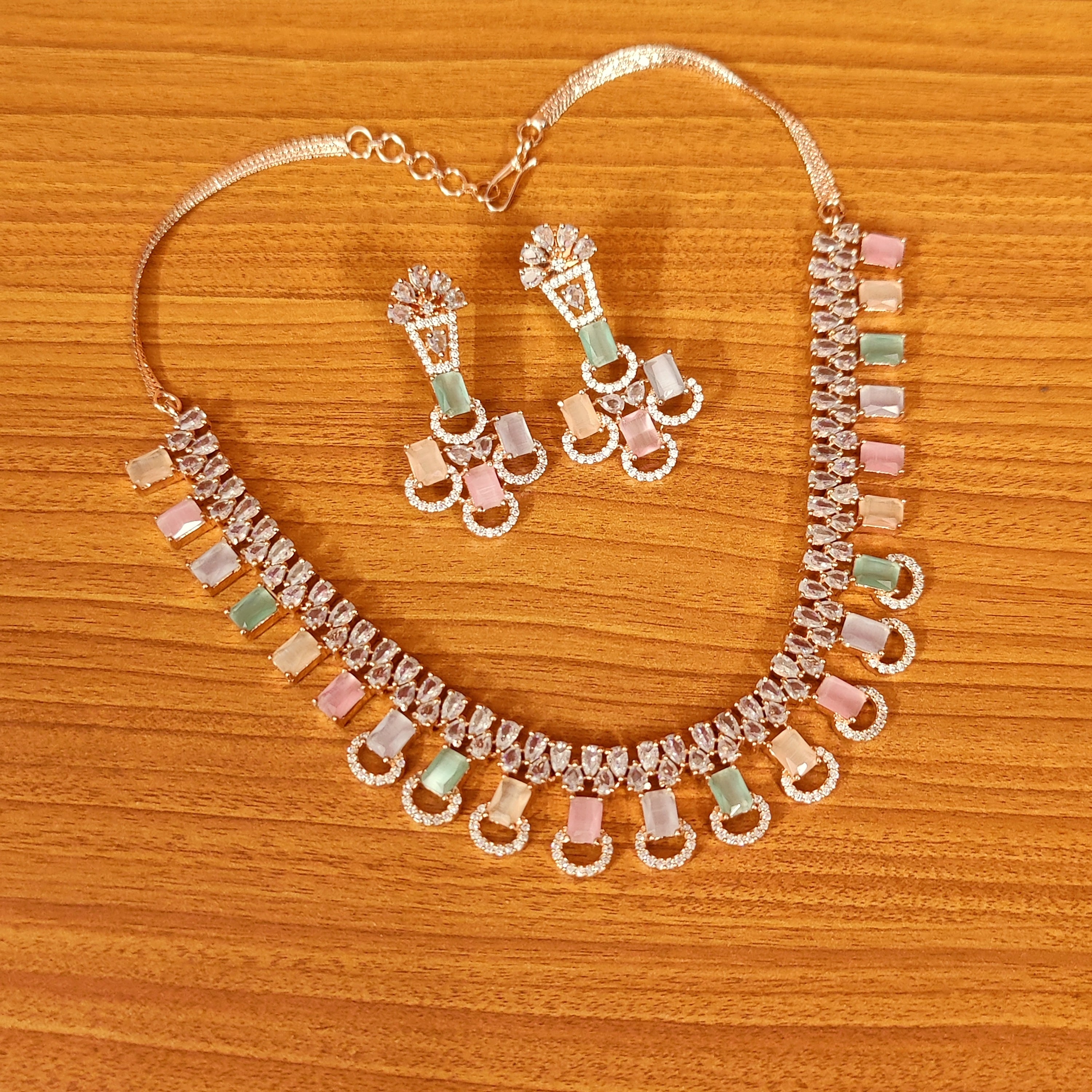 MULTICOLOUR CZ STUDDED LIGHT ROSE GOLD NECKLACE SET