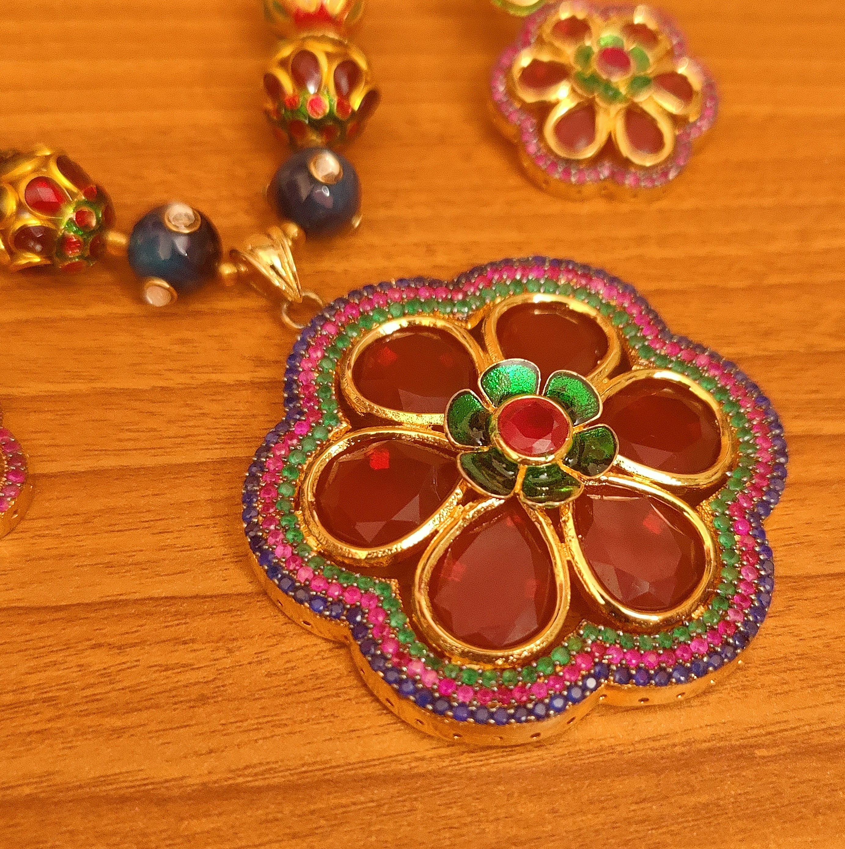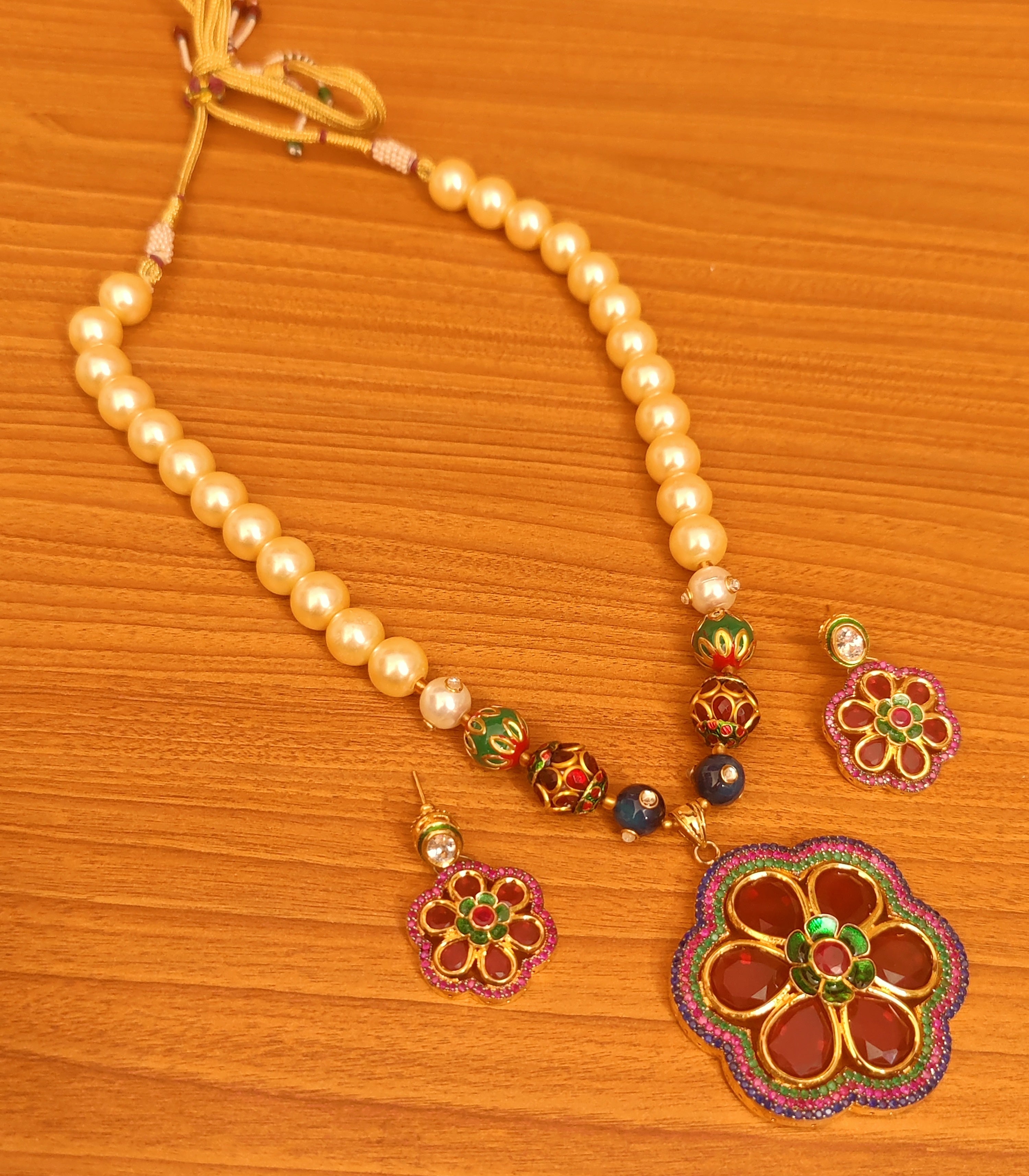 MULTICOLOUR FLOWER LOOK ETHNIC PEARL NECKLACE SET