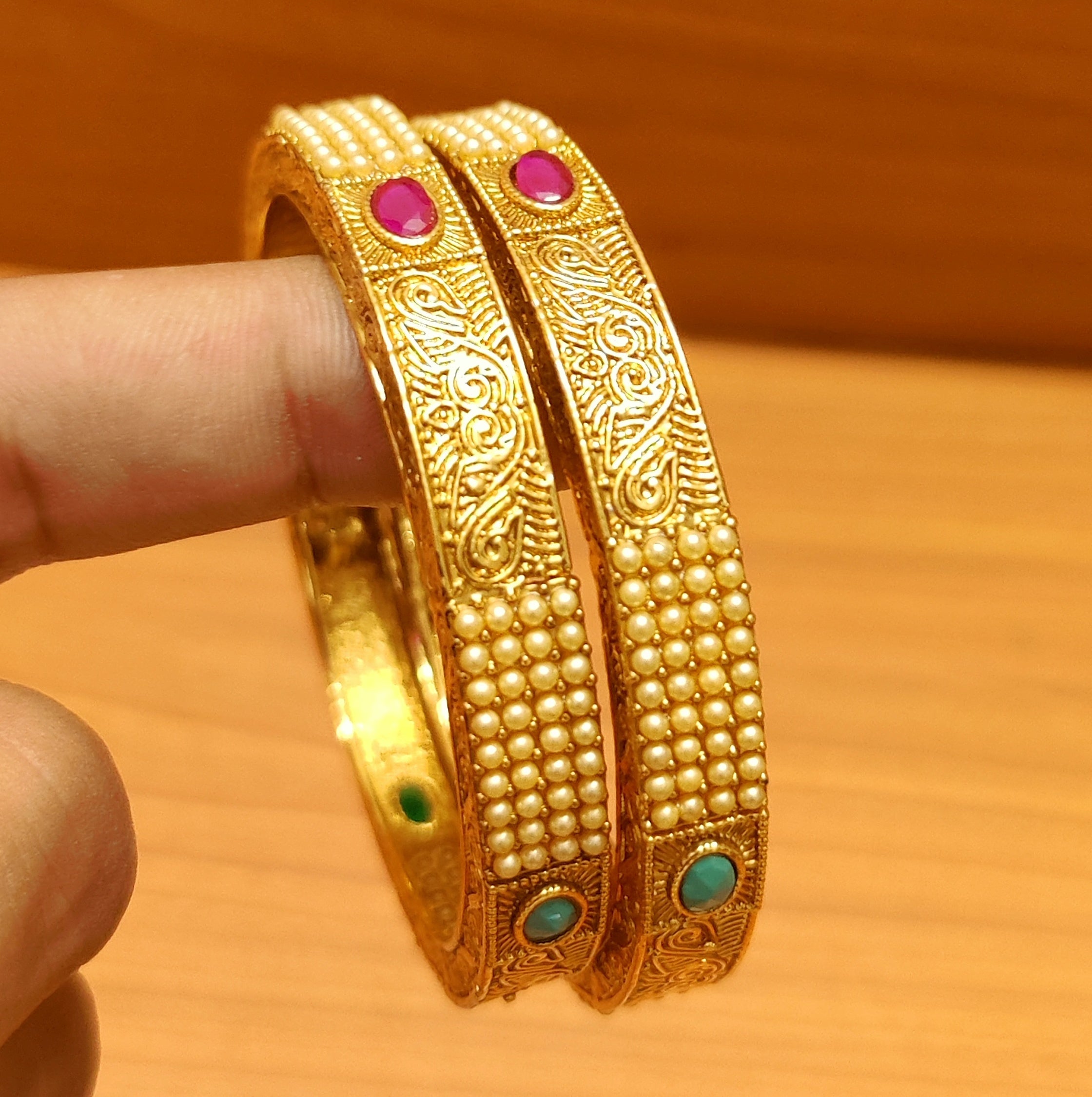 MULTICOLOUR GOLD LOOK ANTIQUE PEARL BANGLES