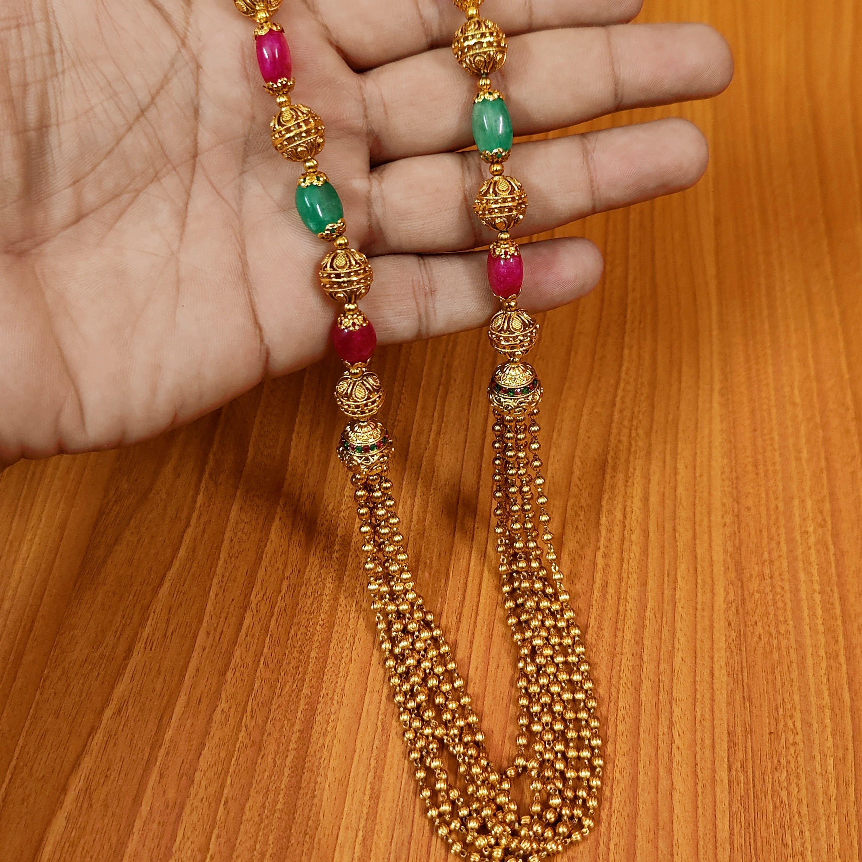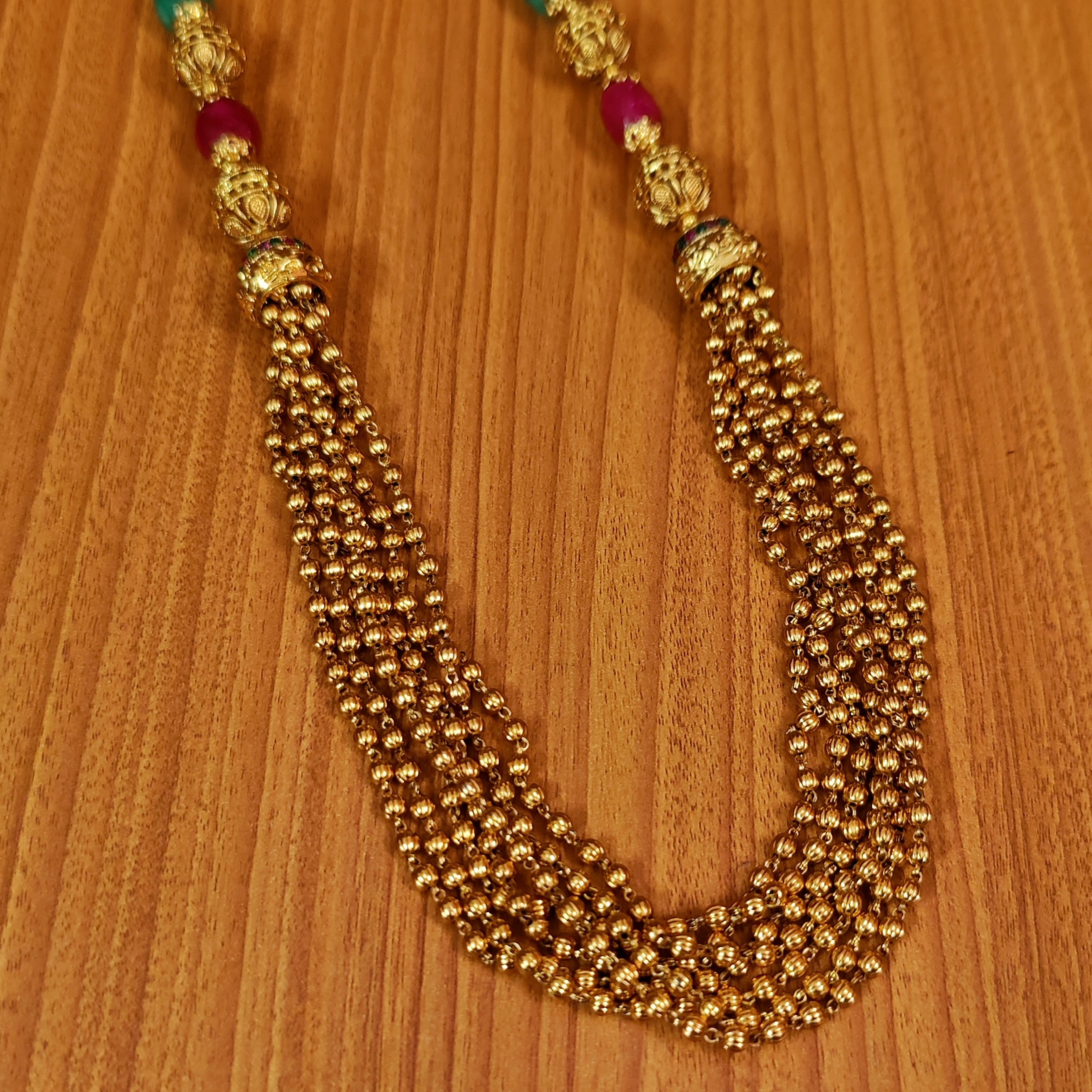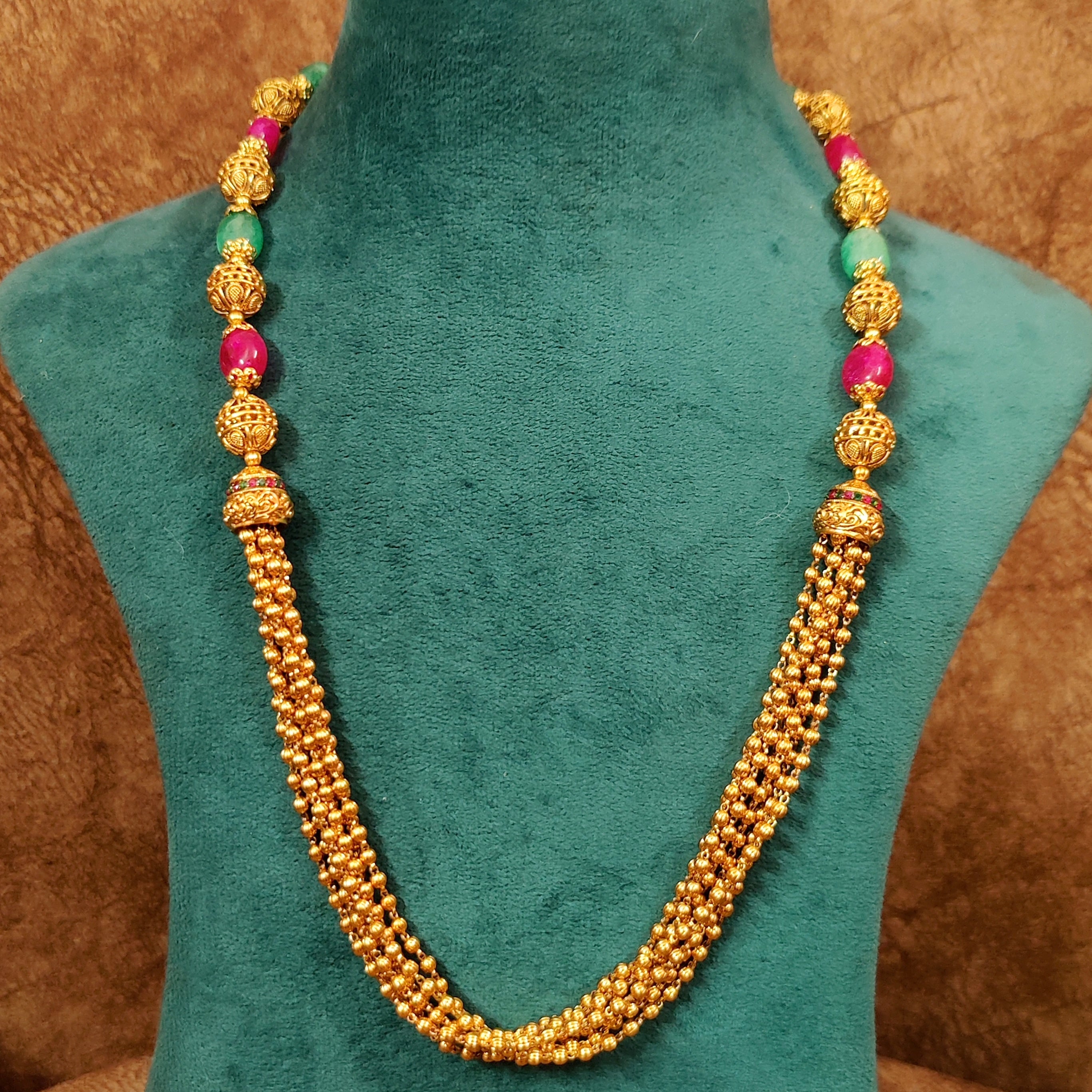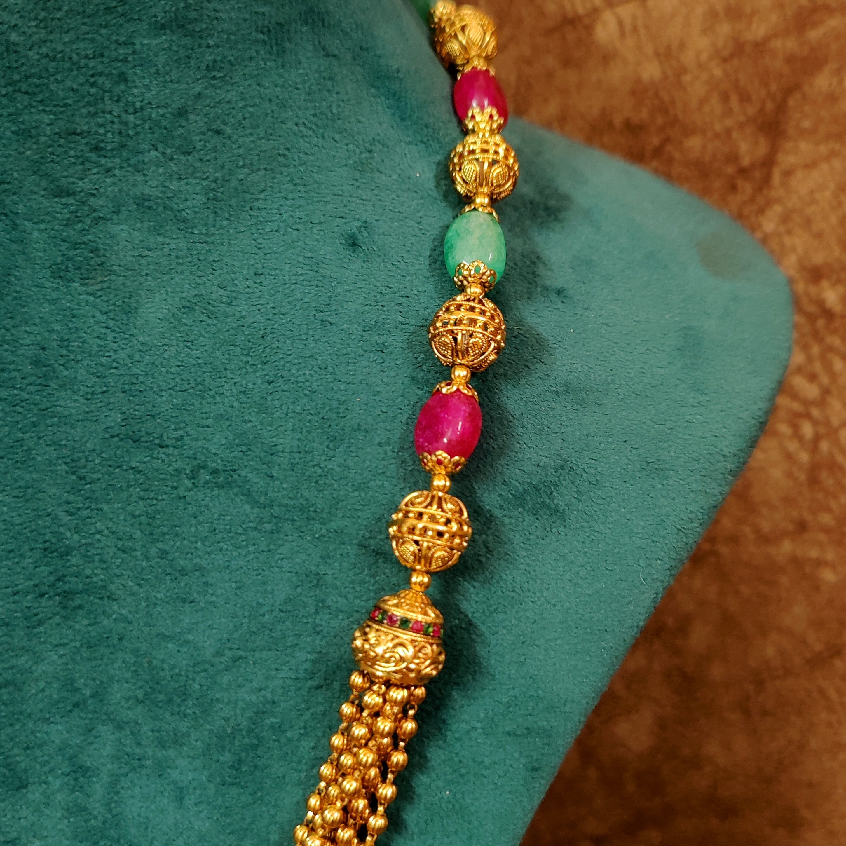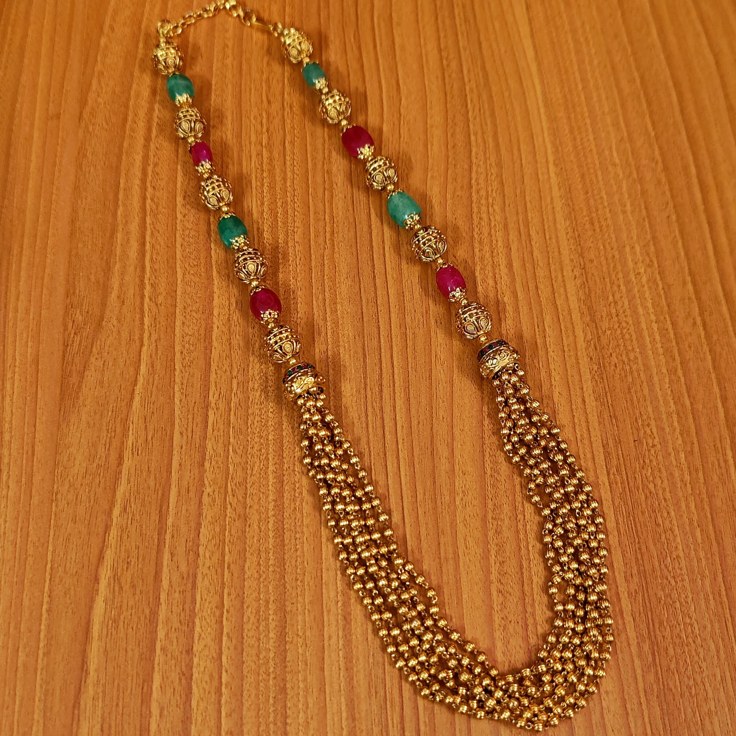 MULTICOLOUR GOLD PLATED FINE MATAR MALA NECKLACE