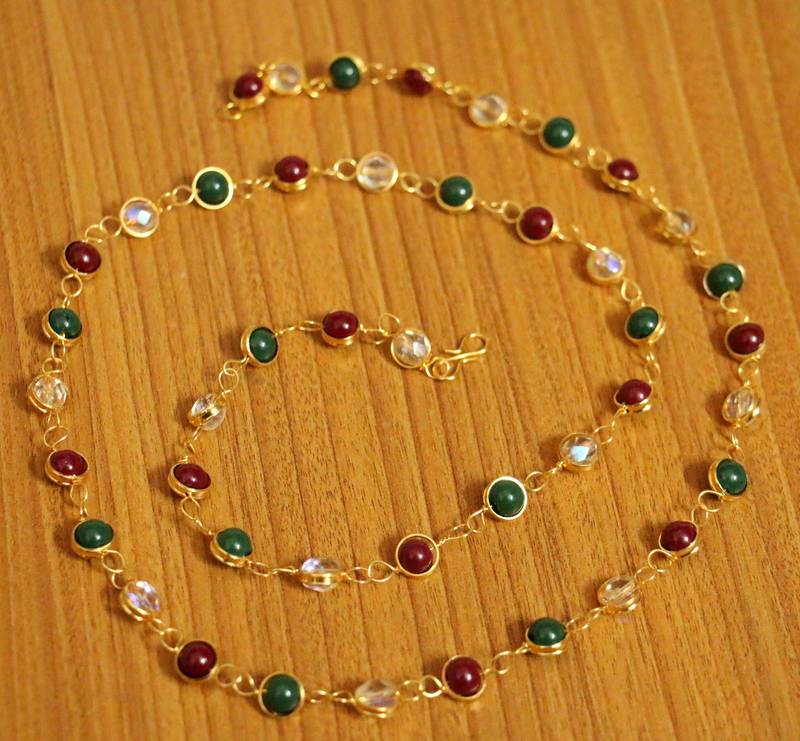This beautiful necklace is handcrafted in beaded alloy with imitation multy Swarovski crystal work of very fine quality . This necklace which give them a unique look . An absolutely stunning piece to own and are very light in weight.