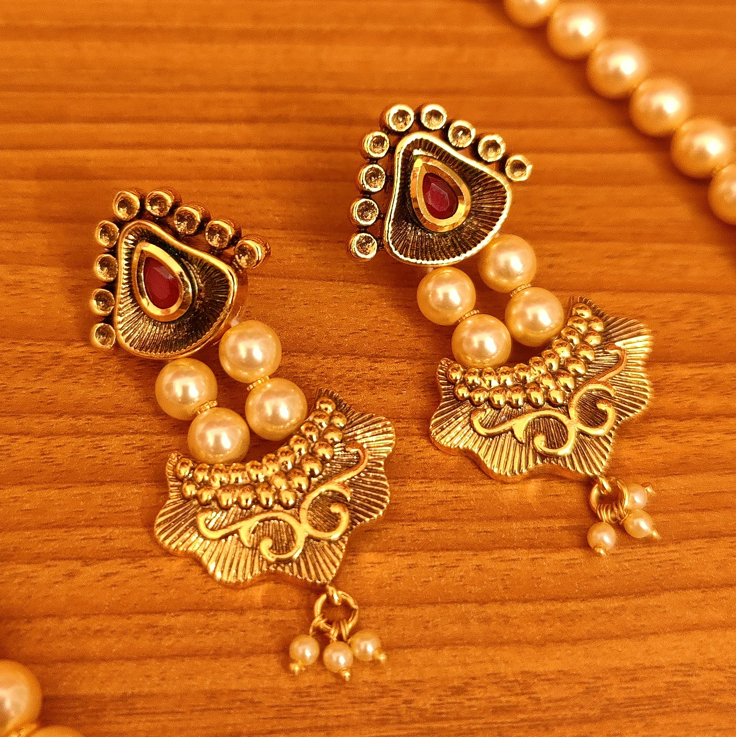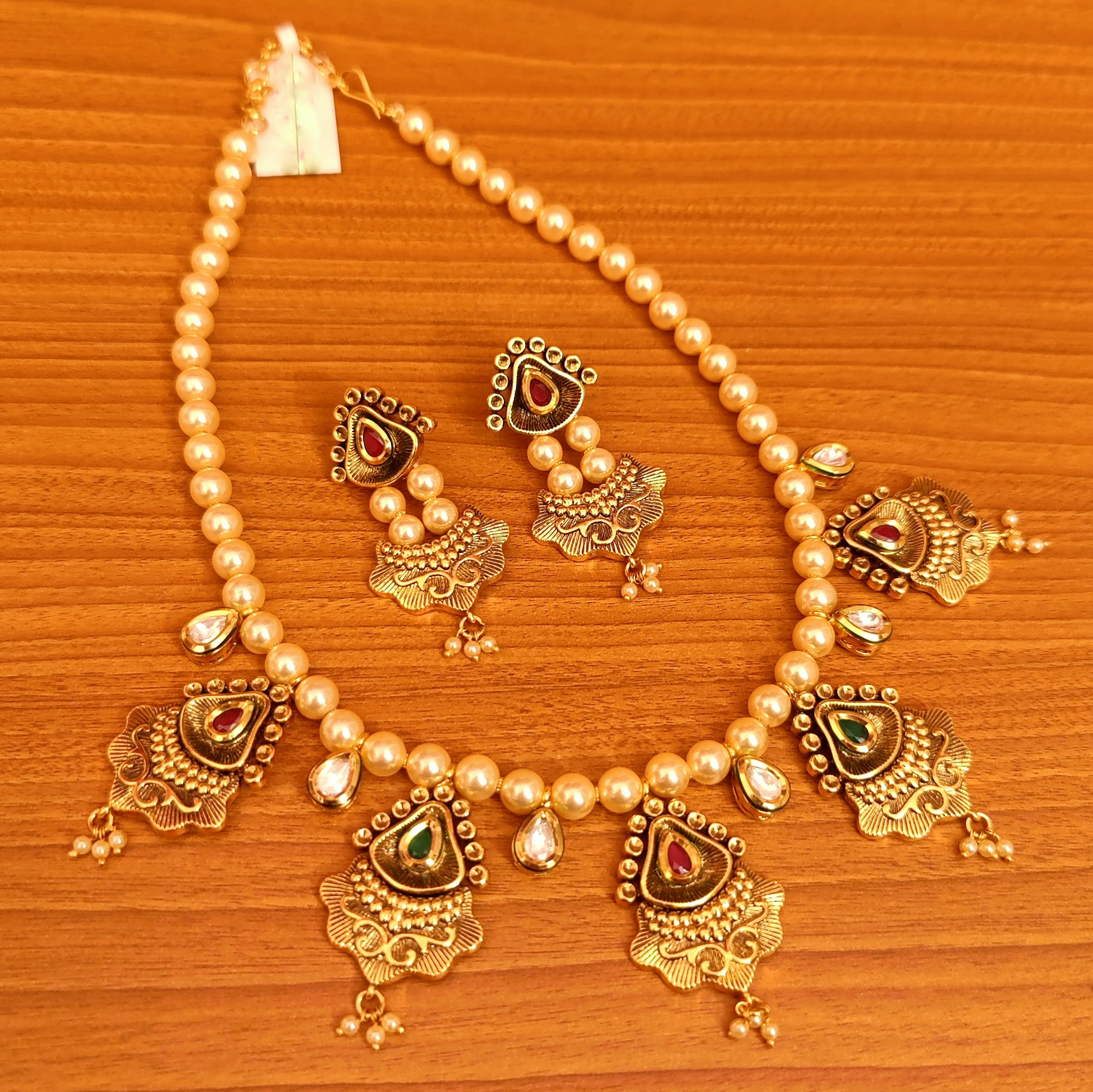 MULTICOLOUR ANTIQUE KUNDAN & PEARL ELEGANT NECKLACE SET