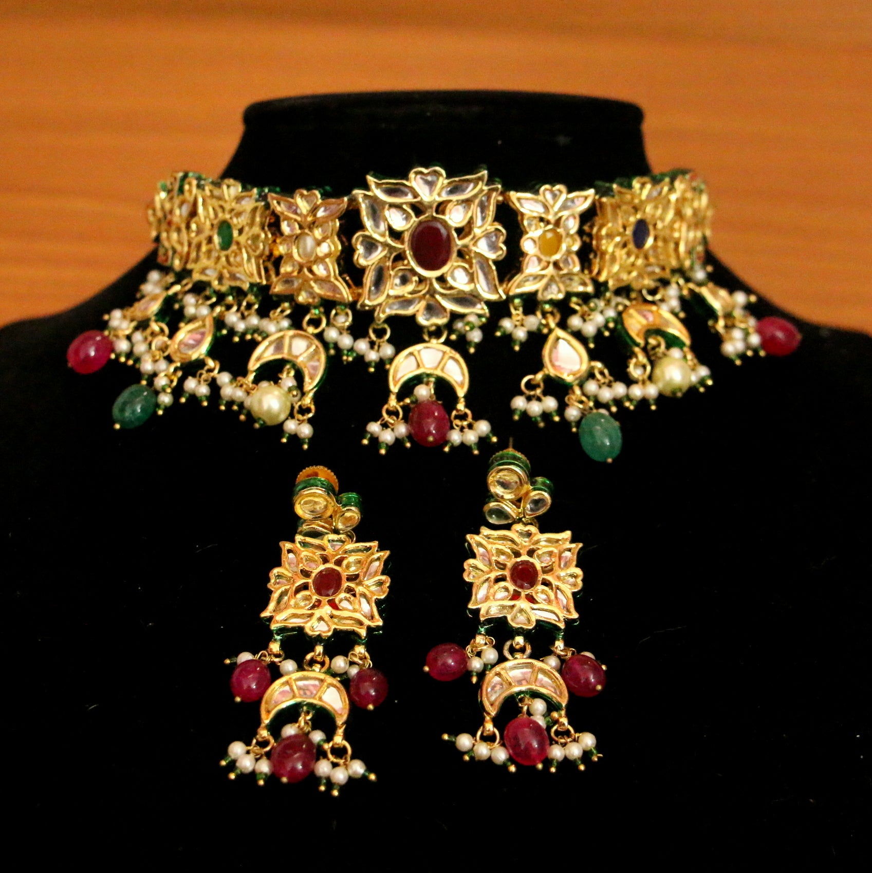 Multicolour Kundan Meenakari Polki Choker Necklace Set