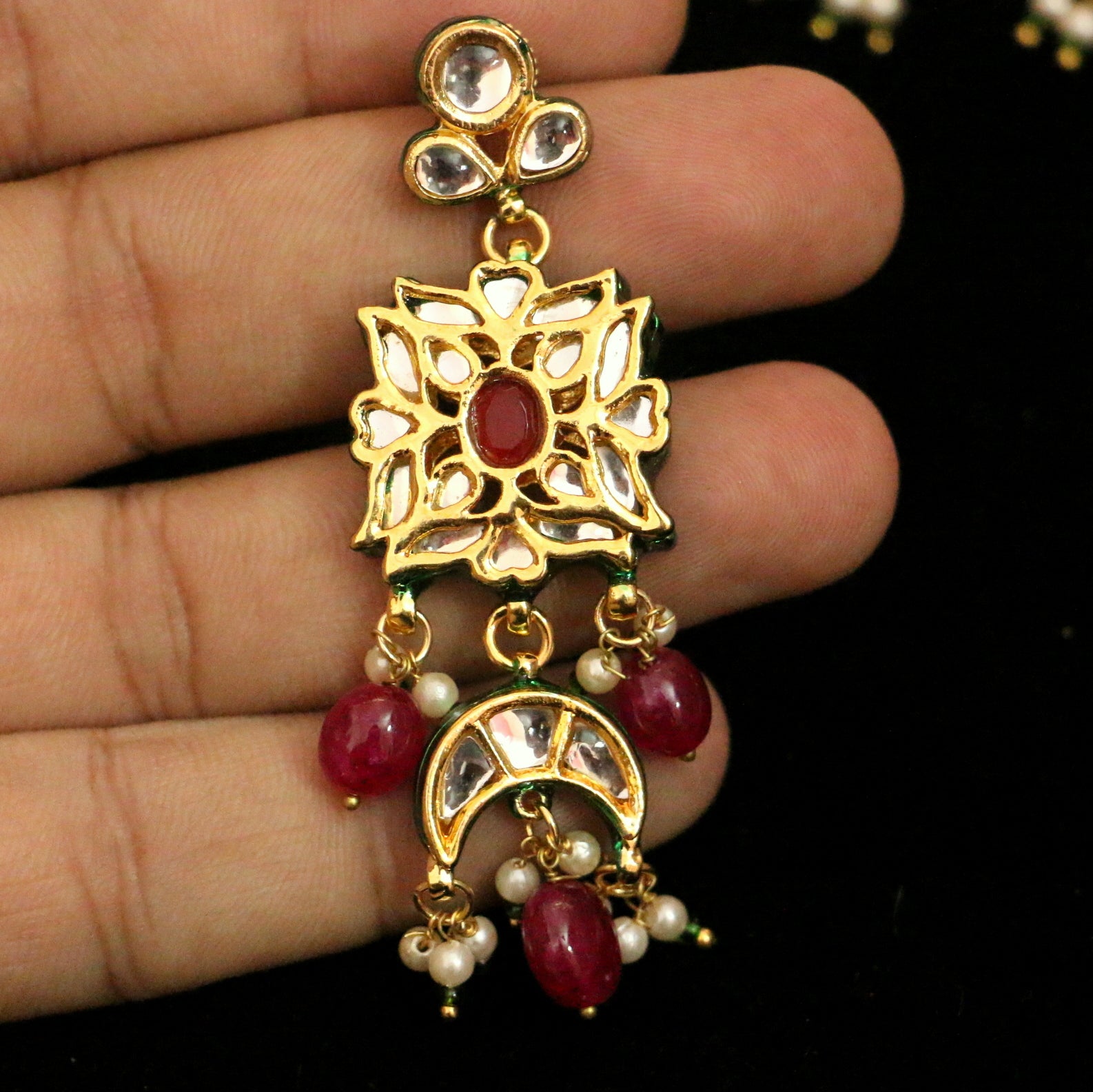 This multicolour kundan polki choker necklace set Is handcrafted in silver alloy with imitation navratan stone and semi precious pearl & onyx bead. the necklace set is coated with 18kt gold plating and nickle free plating to avoid allergy to the skin.