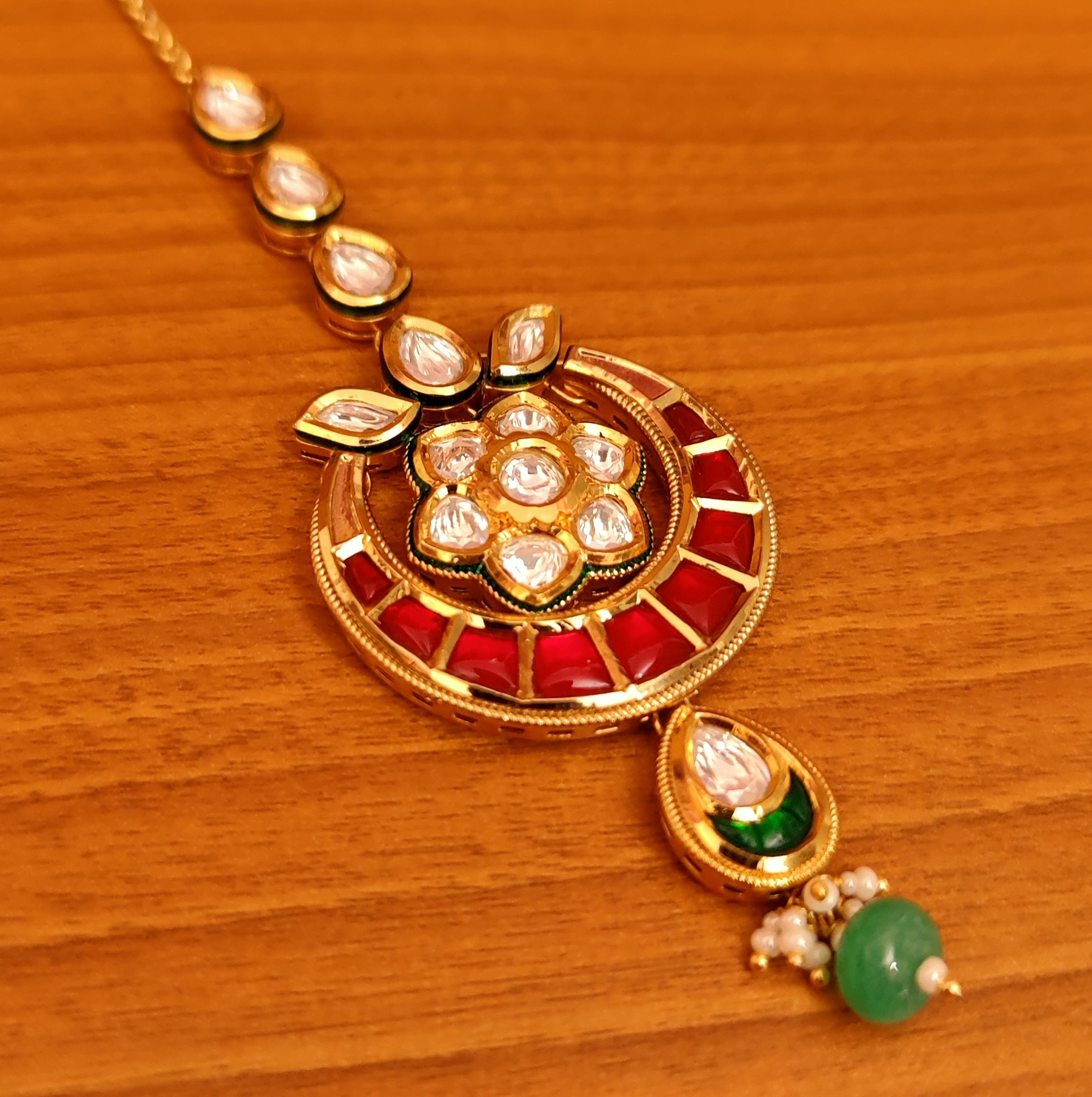 MULTICOLOUR KUNDAN POLKI HANDCRAFTED WEDDING MAANG TIKKA