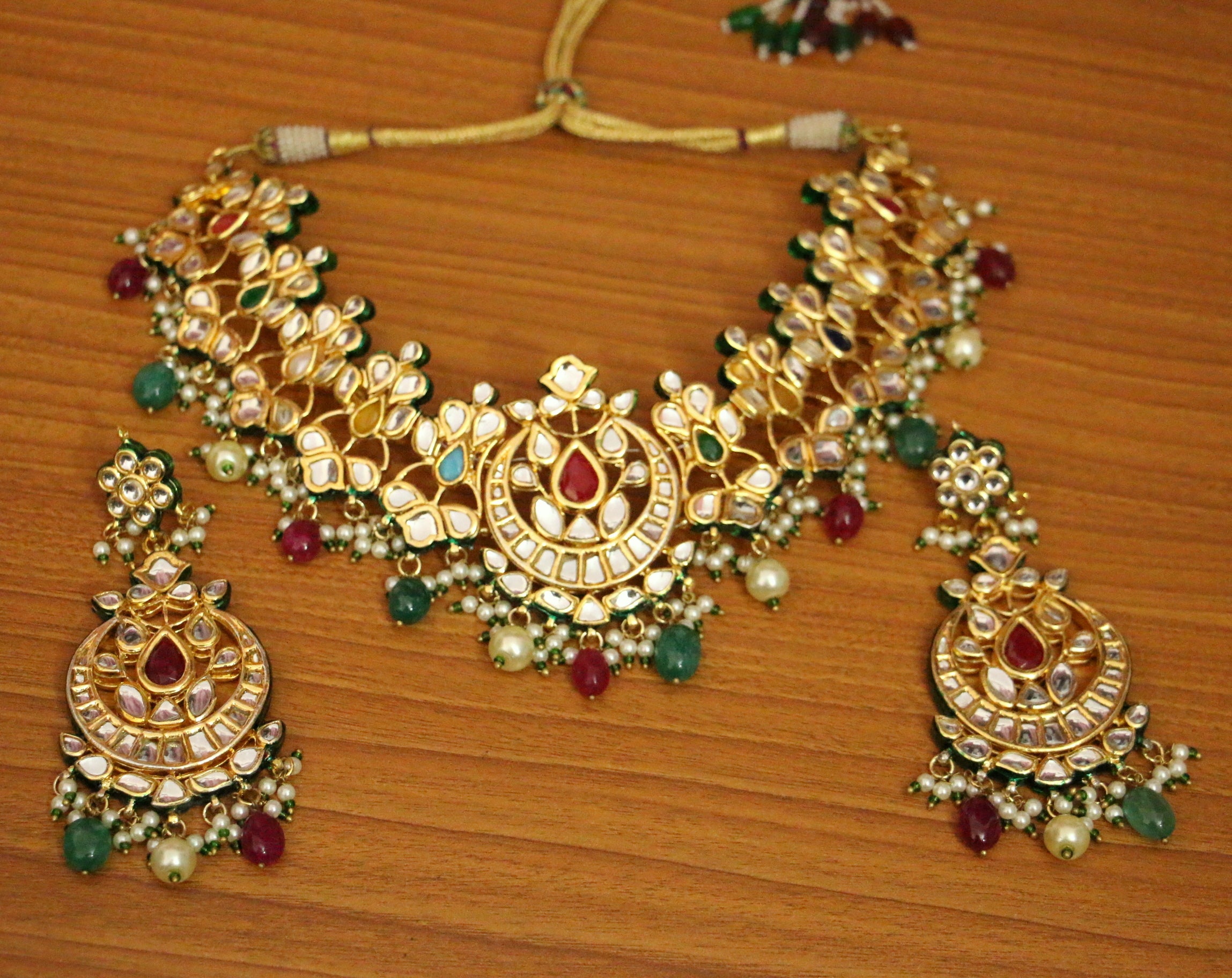 Multicolour Kundan Polki Handcrafted Necklace Set