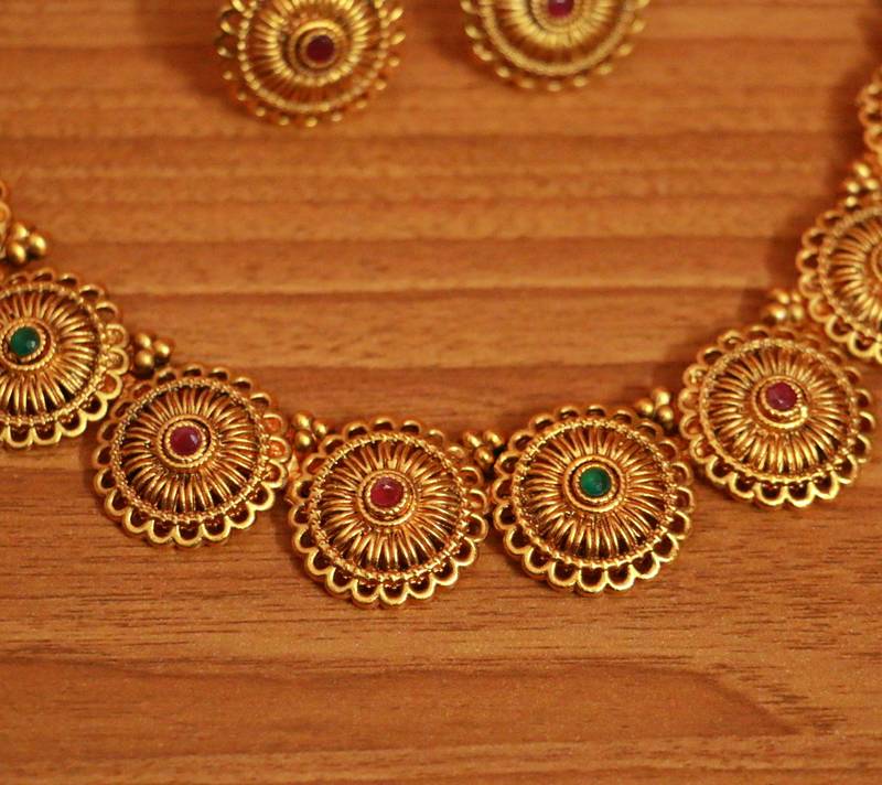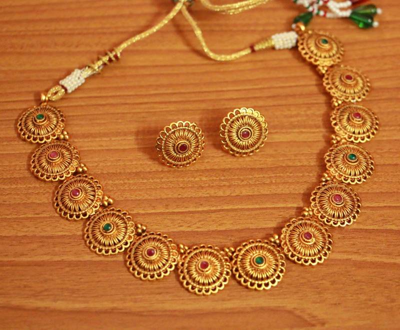 MULTICOLOUR MATT GOLD PLATED NECKLACE SET