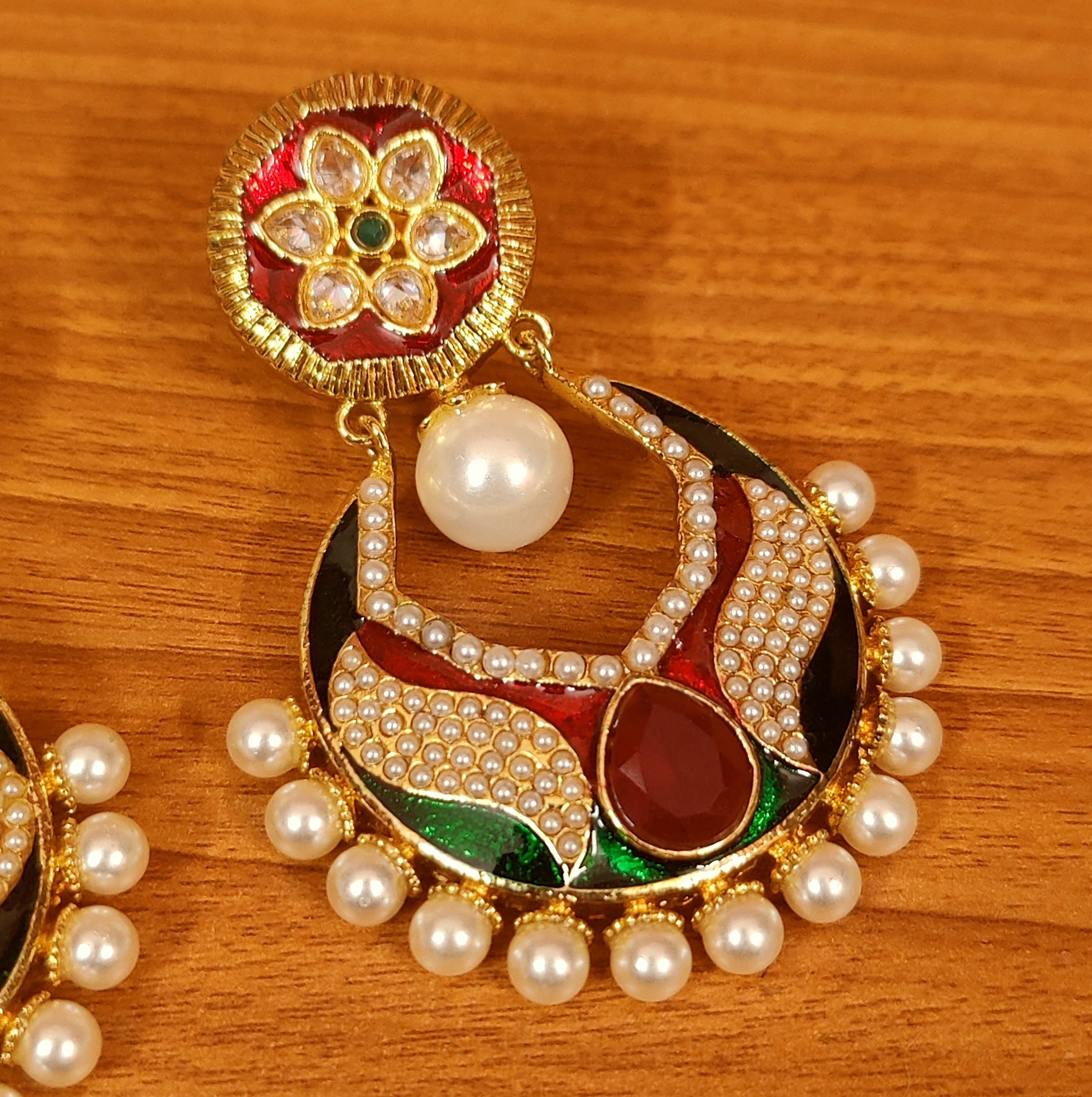MULTICOLOUR MEENAKARI PEARL CHANDBALI EARRINGS