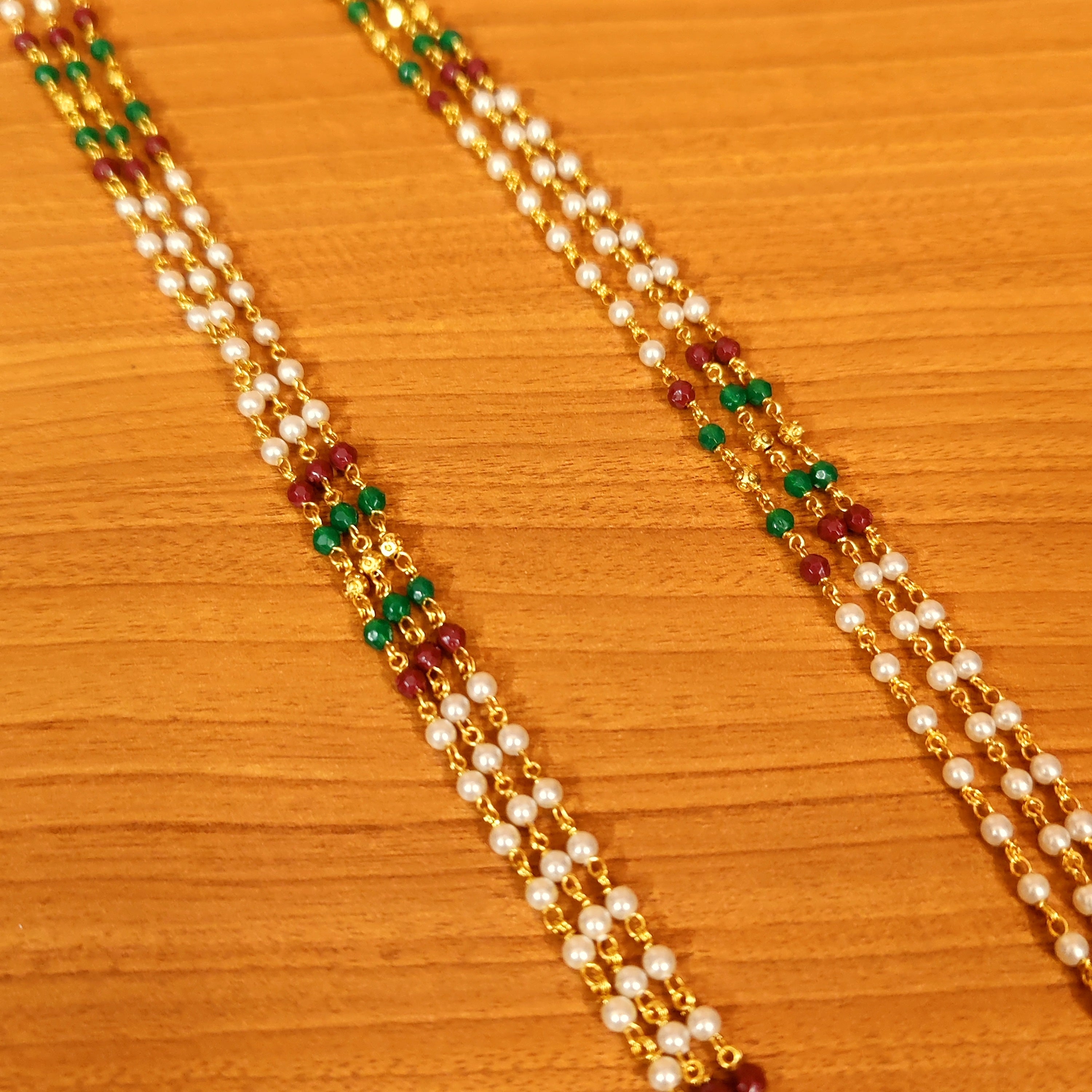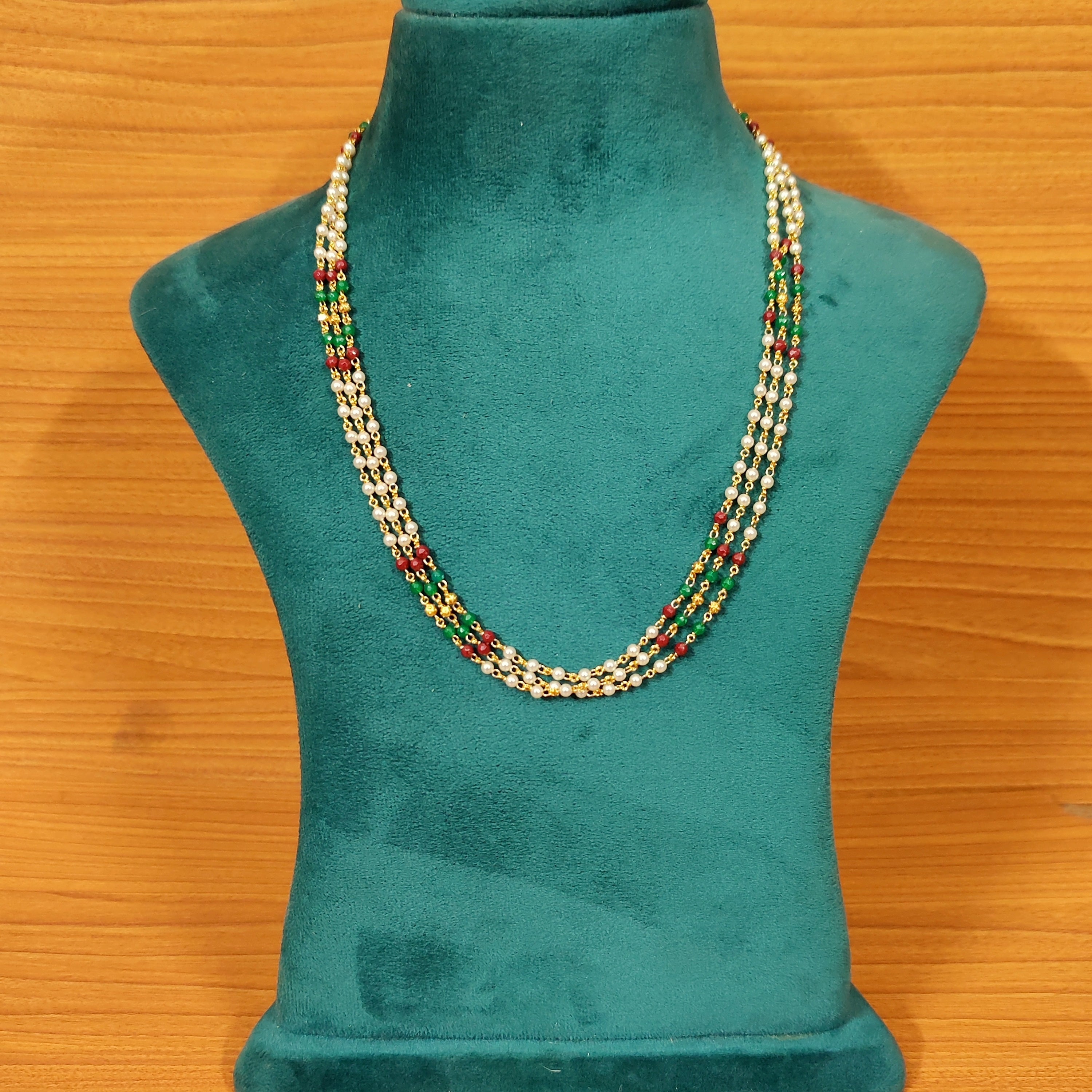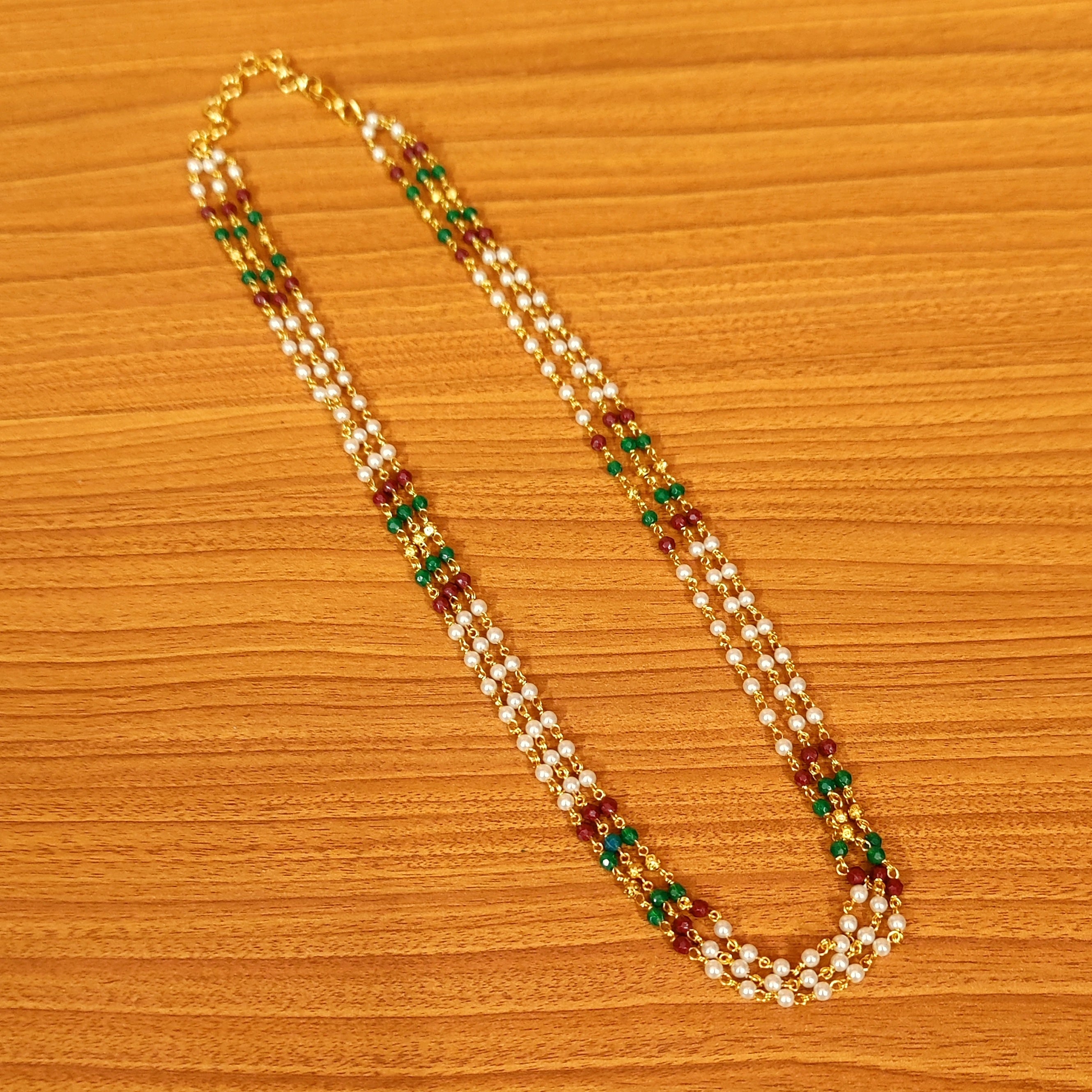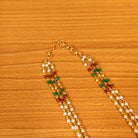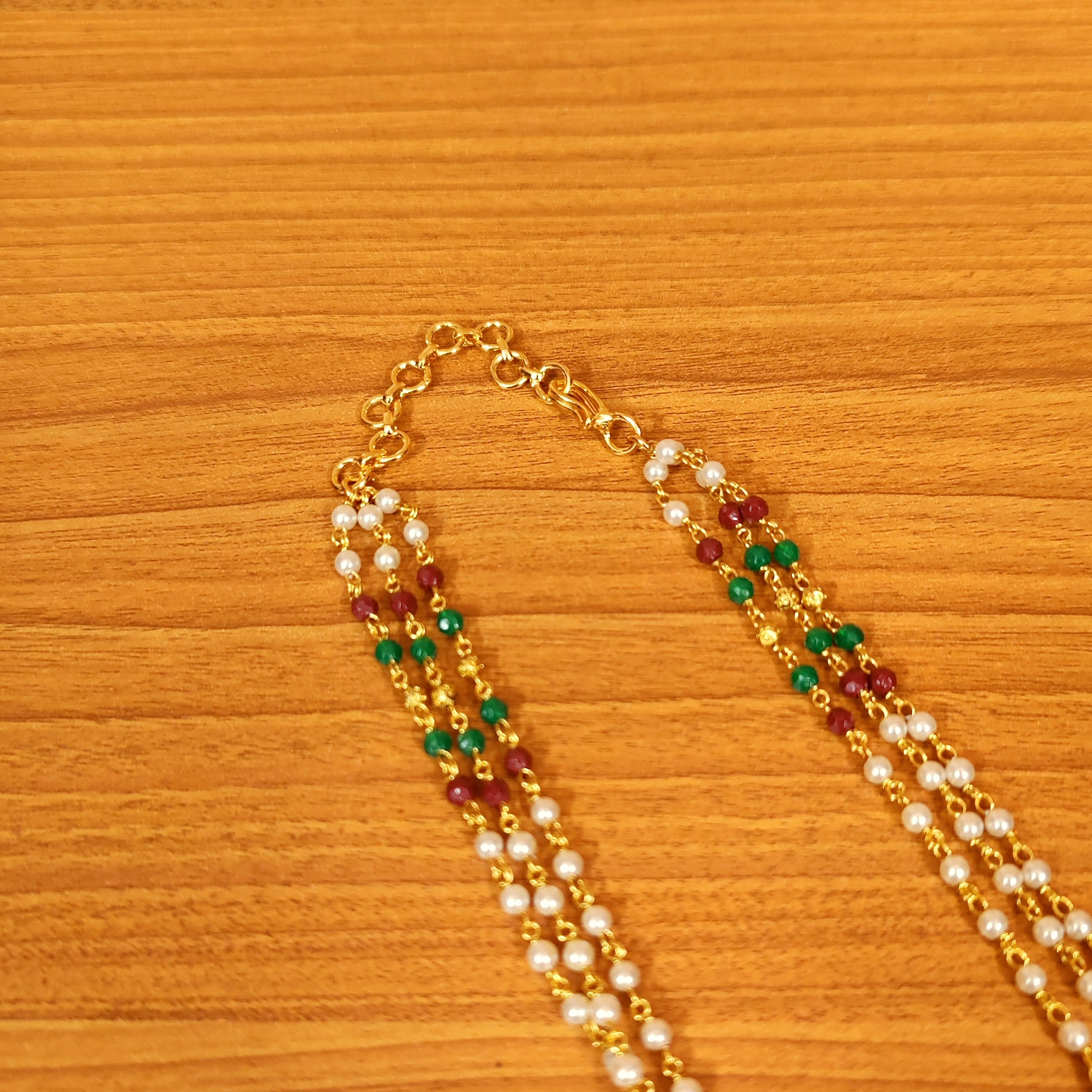 This beautiful necklace is handcrafted in copper alloy with imitation pearls,ruby & polki work of very fine quality . This necklace is coated with 18 kt gold polish which give them a unique look . An absolutely stunning piece to own and are very light in weight.