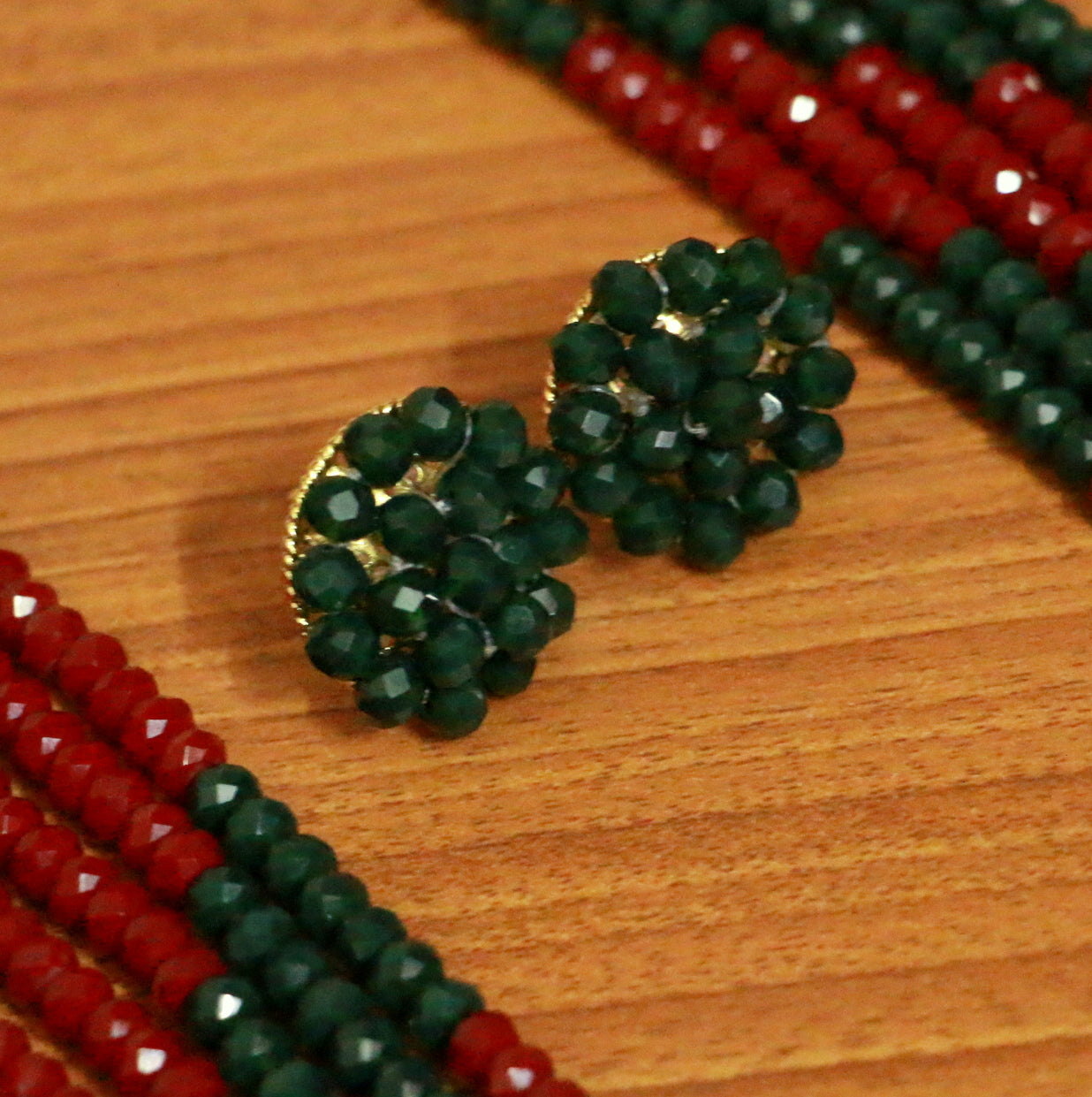 This necklace set is handcrafted with multicolour red and green crystals of very fine quality . This necklace is beaded very intricately , the necklace set is very light in weight and gives you an ethnic look.