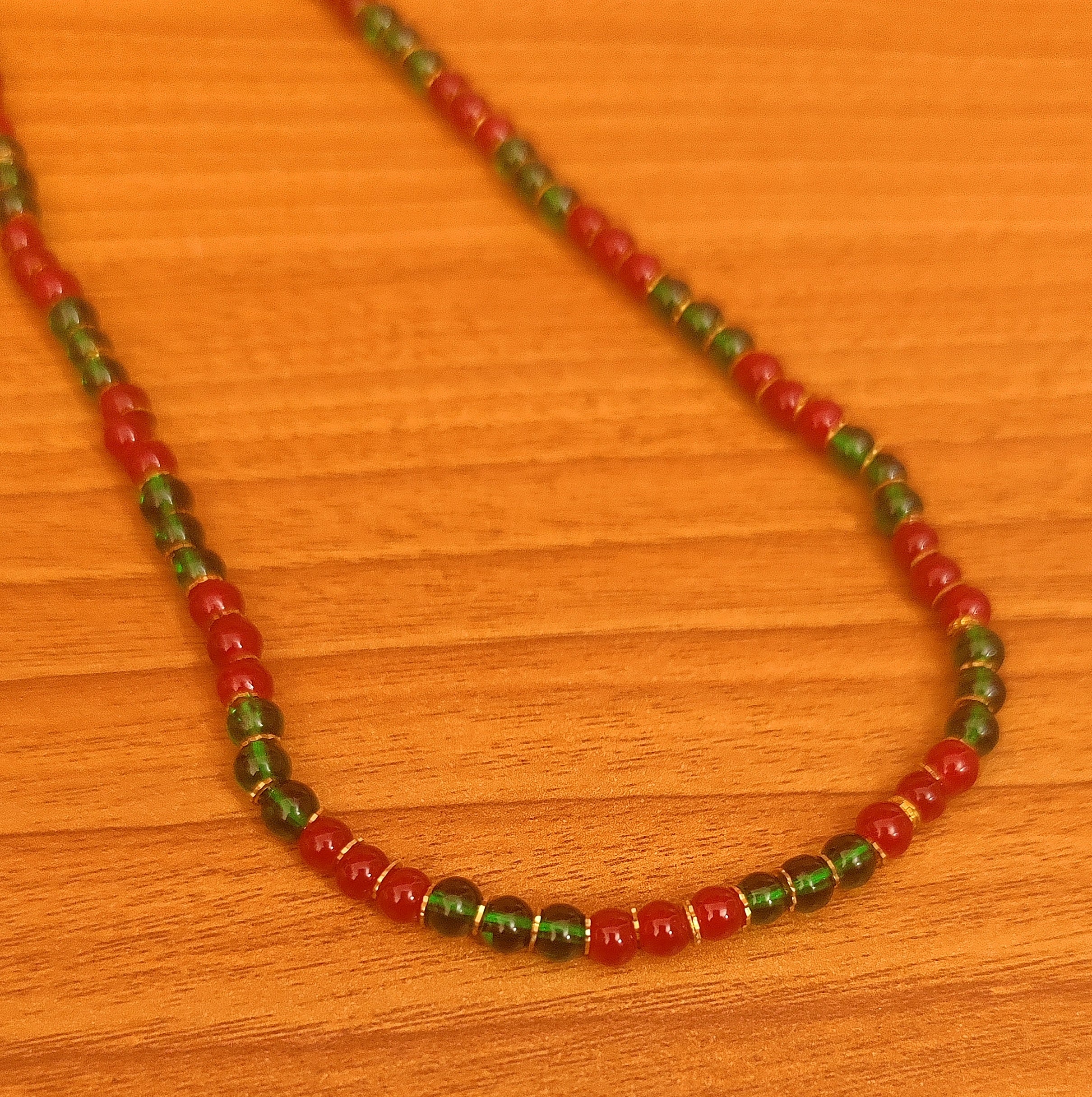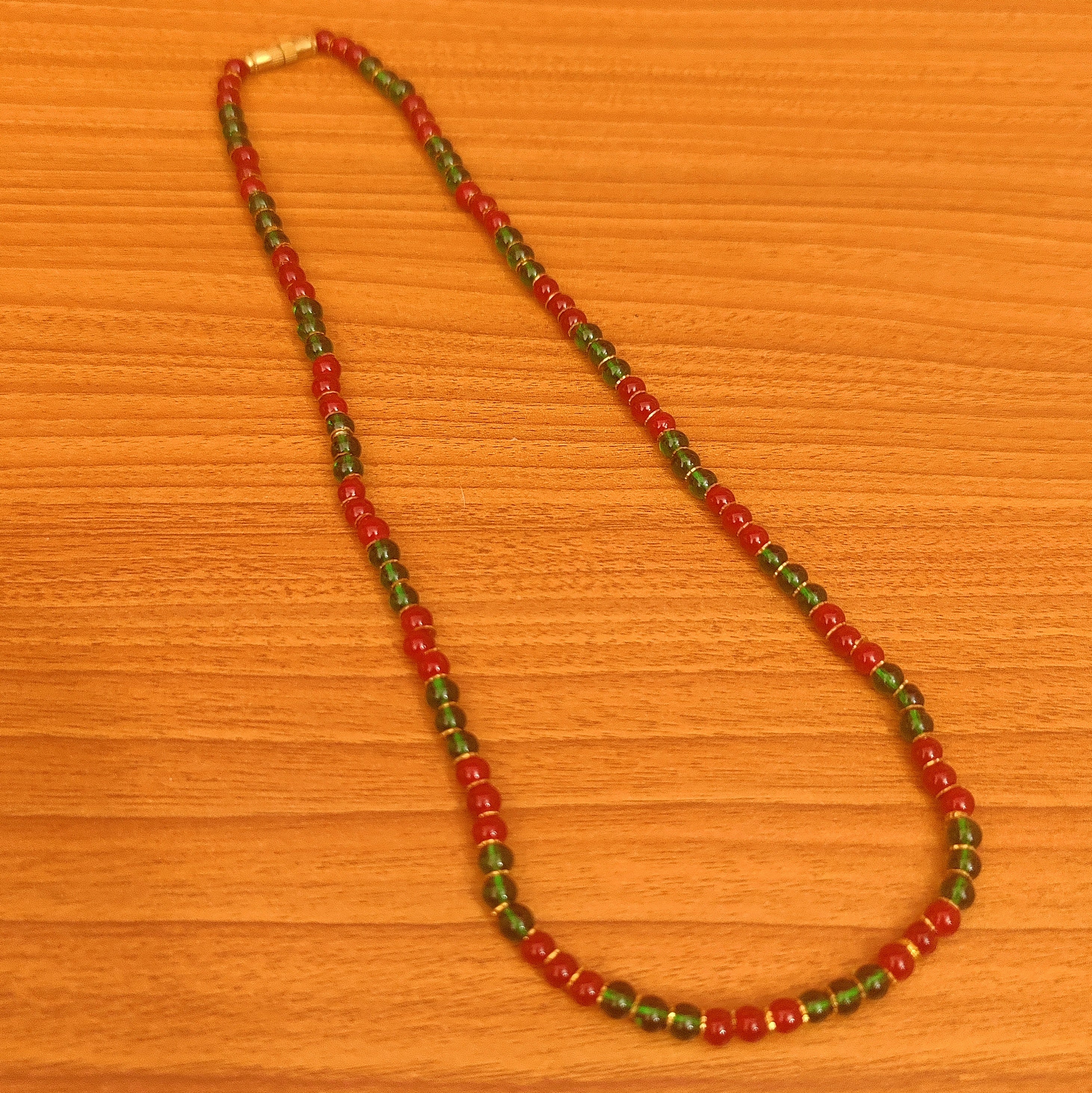 MULTICOLOUR RED & GREEN GLASS BEAD NECKLACE