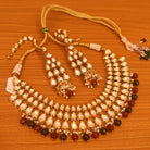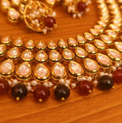 This Necklace Set Is Handcrafted In Brass Alloy With Fine Ruby, Green Onyx & Kundan With Meenakari Work Of Fine Quality , The Necklace Set Is Plated With 18kt Nickle Free Gold Plating Which Gives It A Real Look .