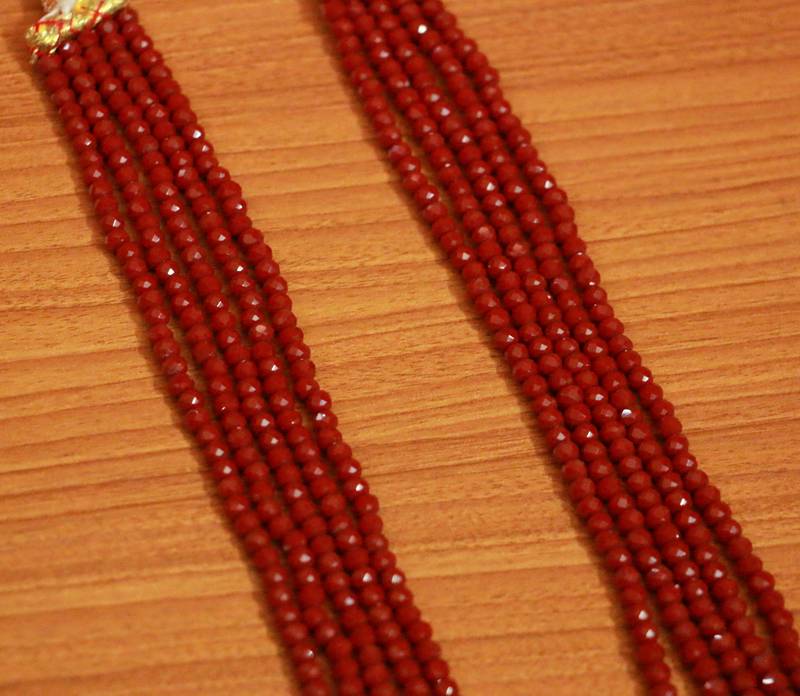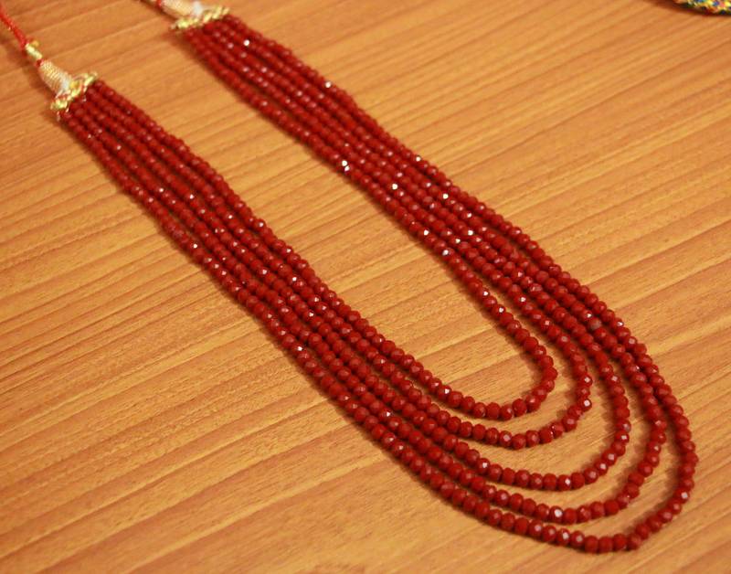 This Necklace is handcrafted in maroon swarowski crystal beads of fine quality , this multi layered necklace is very light in weight And Looks Beautiful When Worn In Occasions.