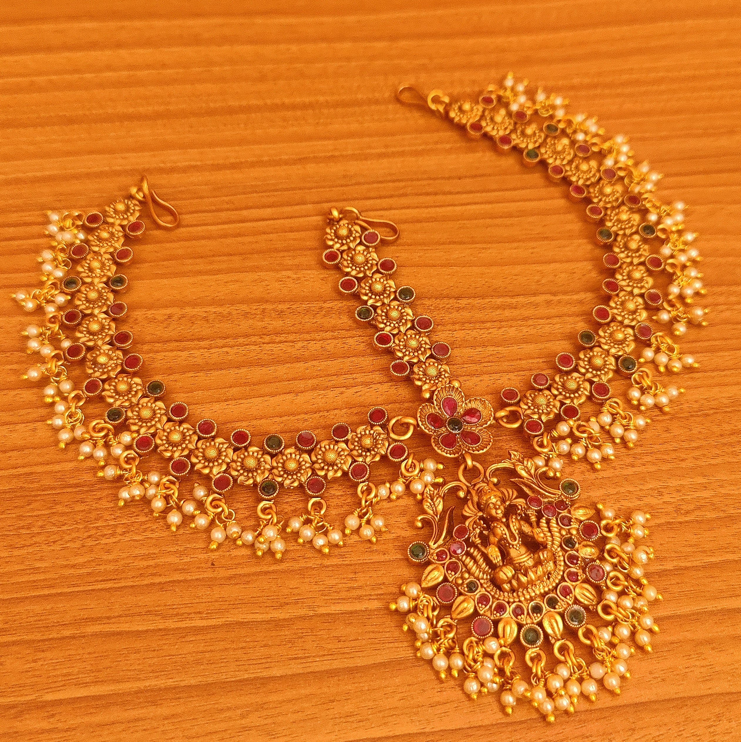 MULTICOLOUR TEMPLE JEWELLERY MATT FINISH MAANG TIKKA