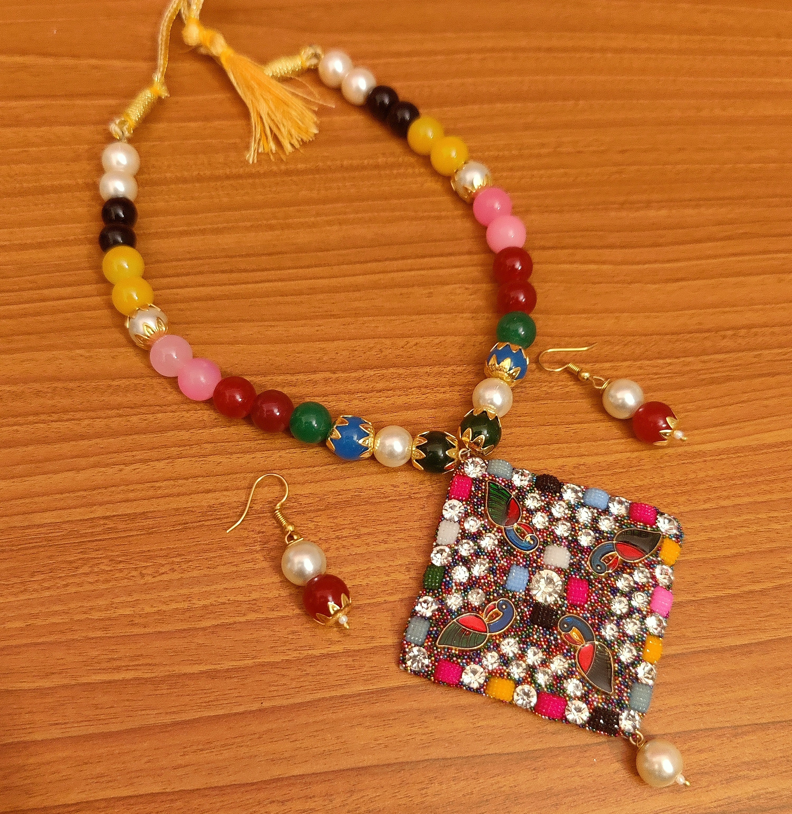 This imitation necklace set is handcrafted in copper alloy with imitation multicolour beads of very fine quality . This necklace set is plated with gold plating and is light in weight.