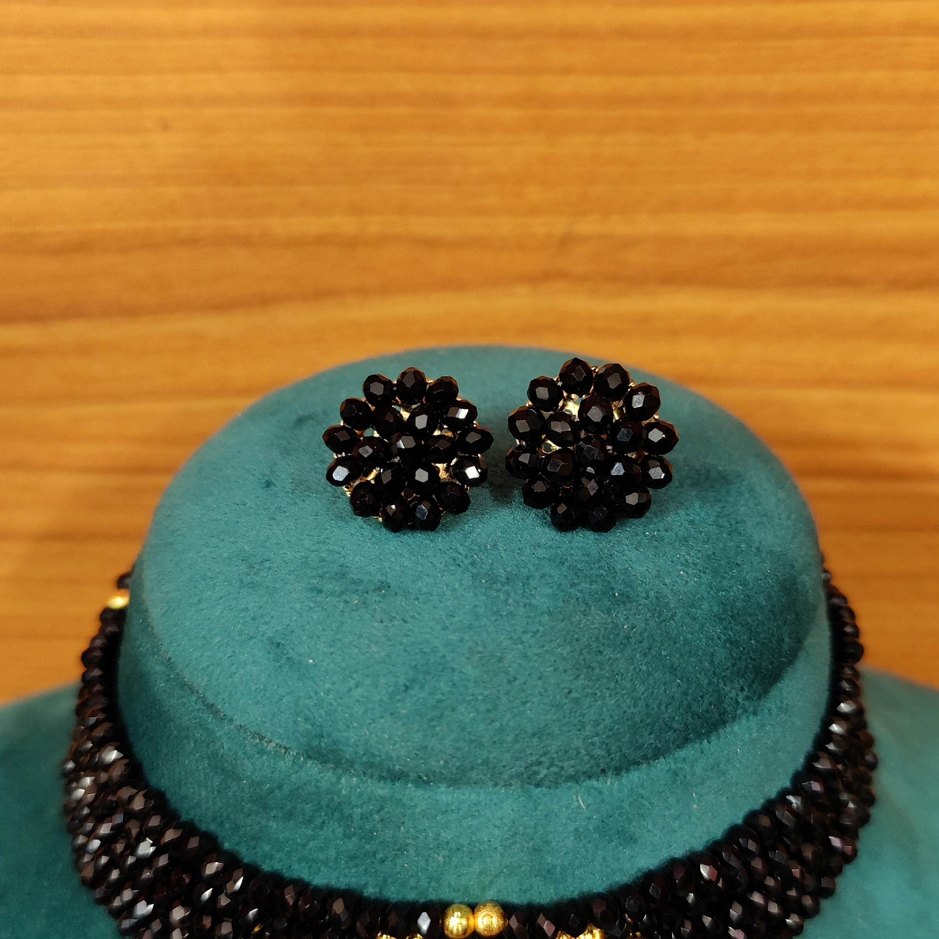 MULTILAYERED BLACK CRYSTAL BEADS CHOKER NECKLACE SET